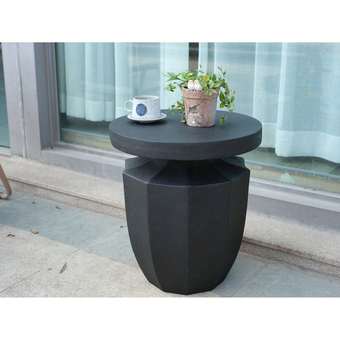 This modern decorative garden end table features a sleek hourglass silhouette and a premium imitation terrazzo finish, making it a stylish addition to any indoor or outdoor space. Whether used as a side table for drinks or as a stand for plants and decor, it offers both functionality and aesthetic appeal. The sturdy construction ensures long-lasting use, while its lightweight design allows for easy relocation. Enjoy the convenience of a no-assembly required product that is ready to enhance your home or garden right out of the box.