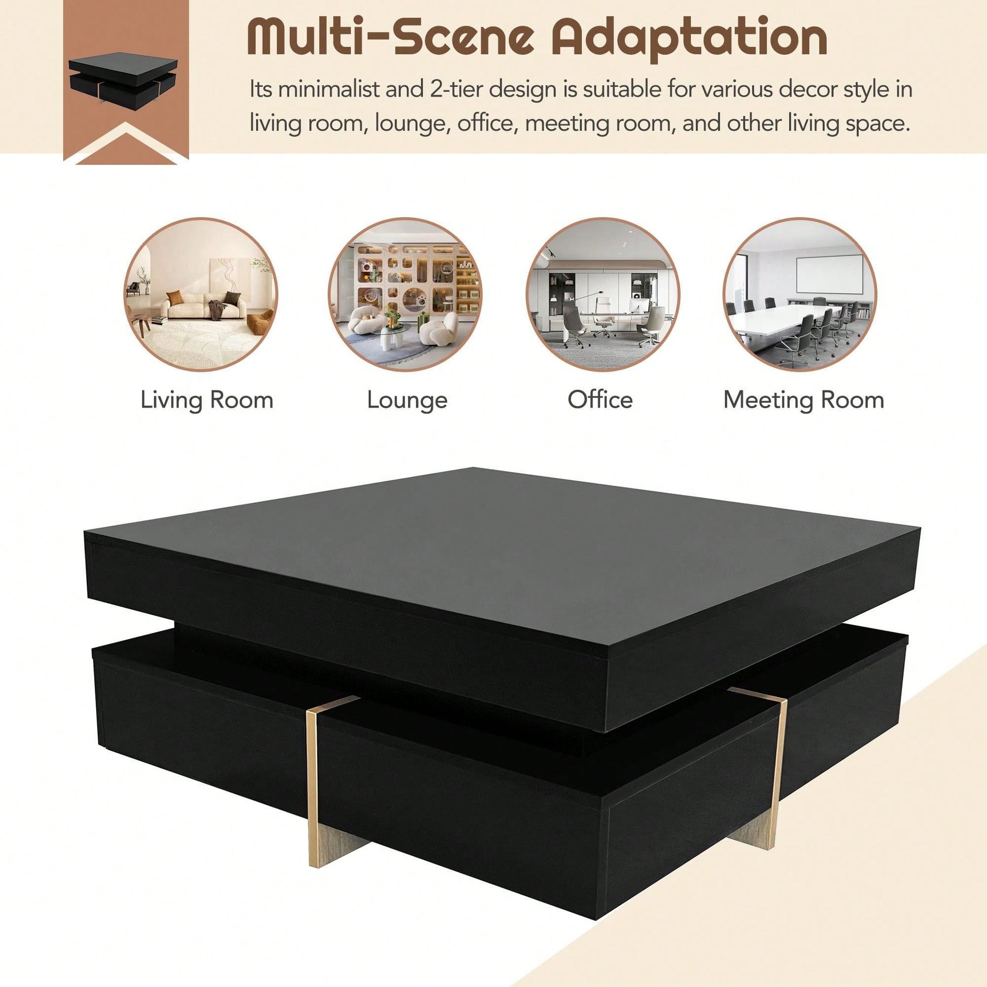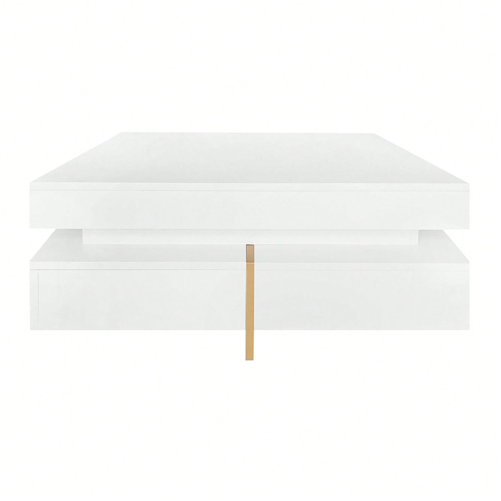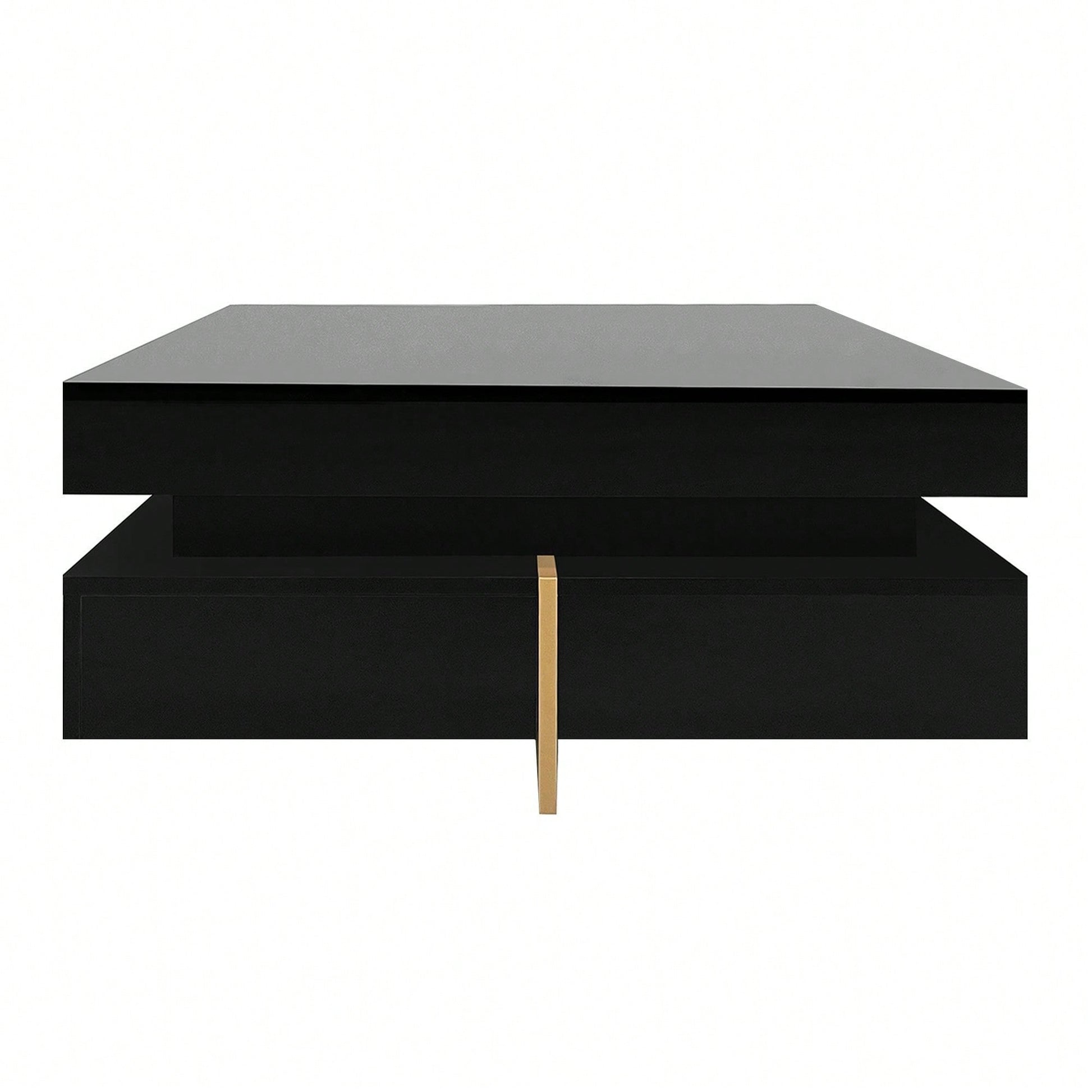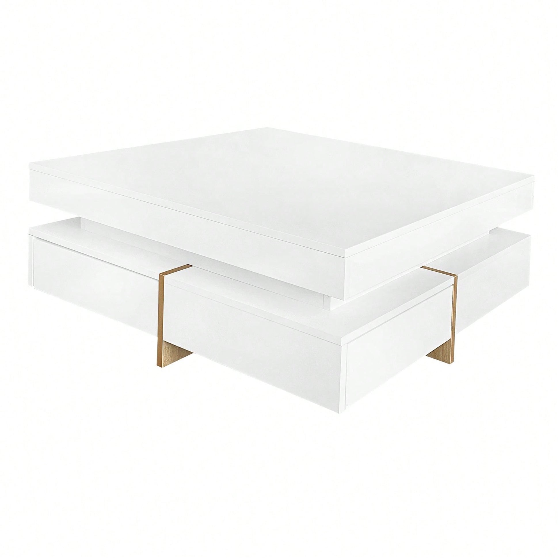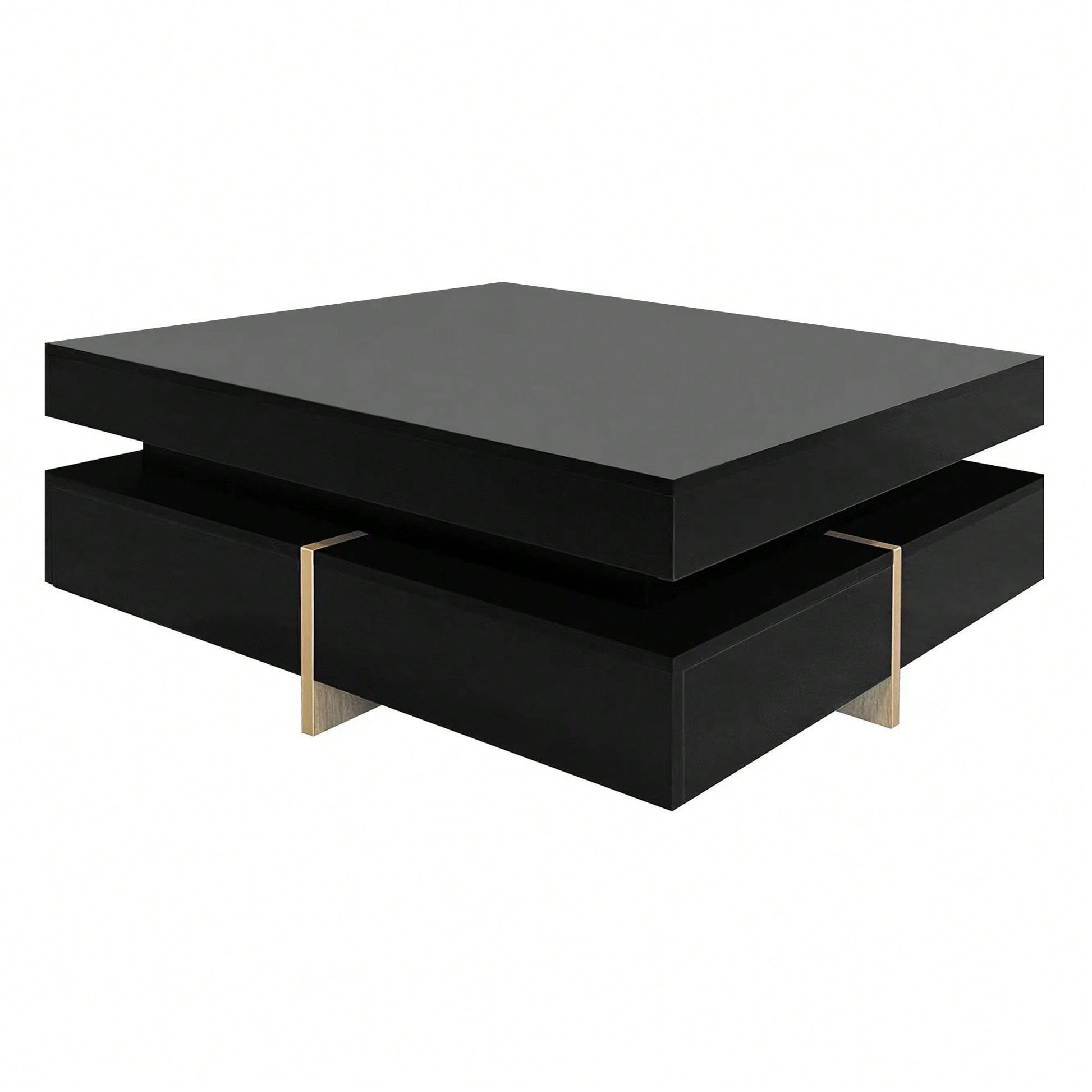 Modern High Gloss Coffee Table With 4 Drawers, Multi-Storage Square Cocktail Tea Table With Wood Grain Legs, Center Table For Living Room