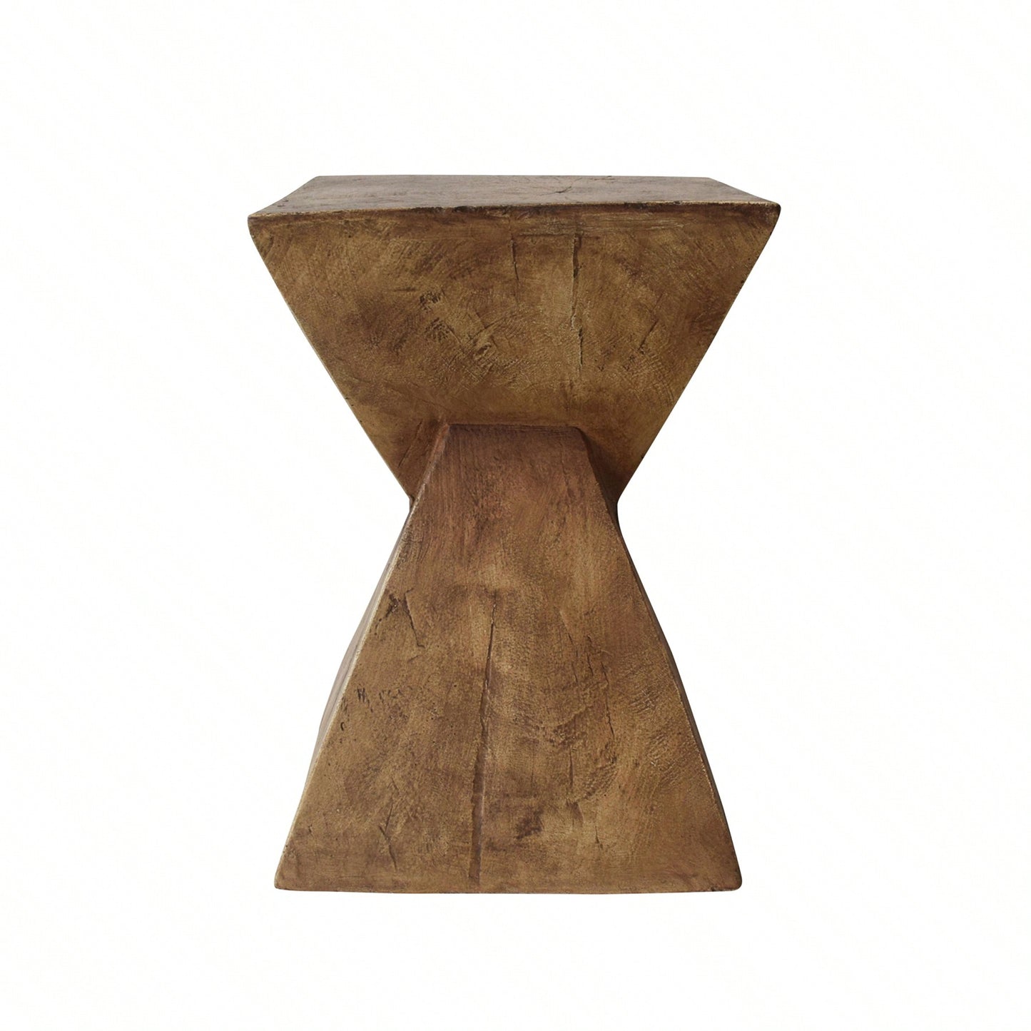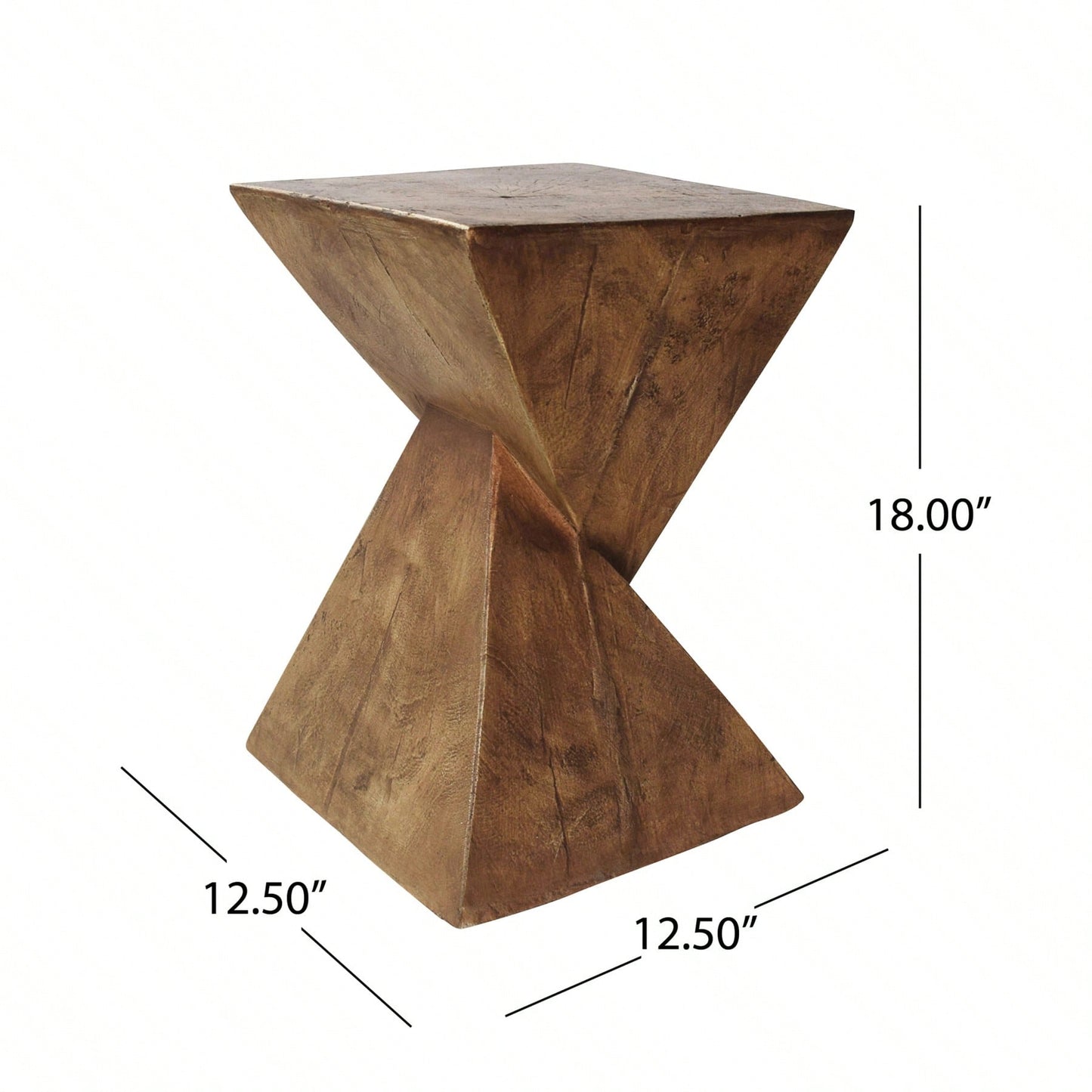 Bring both your outdoor and indoor space to life with this end table that features a twisted hourglass structure and a wood-like finish. The charming aesthetics of this side table will enliven any space, making it a perfect addition to your decor. Hand painted for a natural look, each piece is unique, with dark spots that ensure your purchase is truly one-of-a-kind. The understated design offers the look and feel of a chic modern piece, emphasizing functionality with its minimalistic yet refined structure. Constructed with lightweight concrete, this side table provides a smooth appearance and a highly durable structure that can hold a substantial amount of weight.