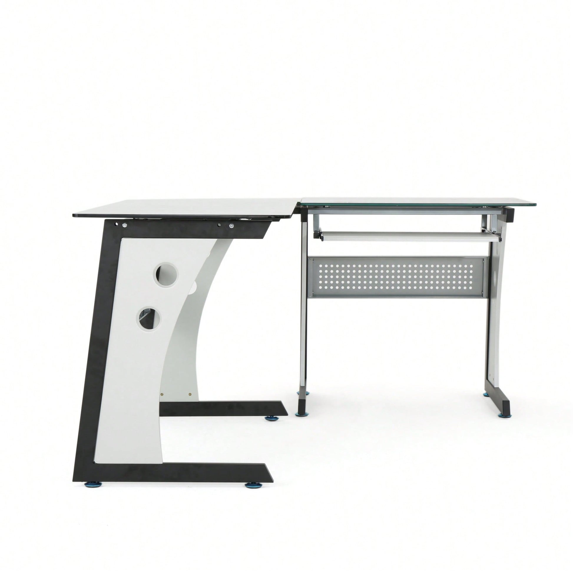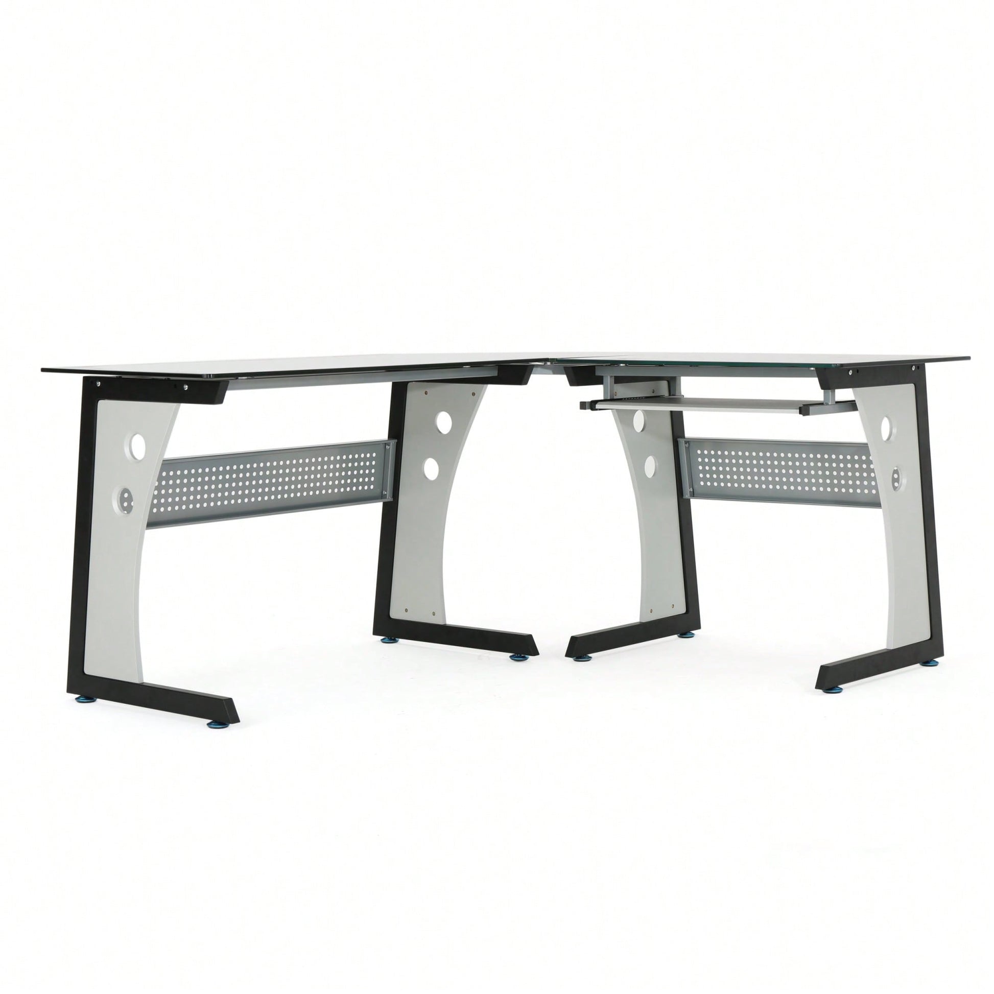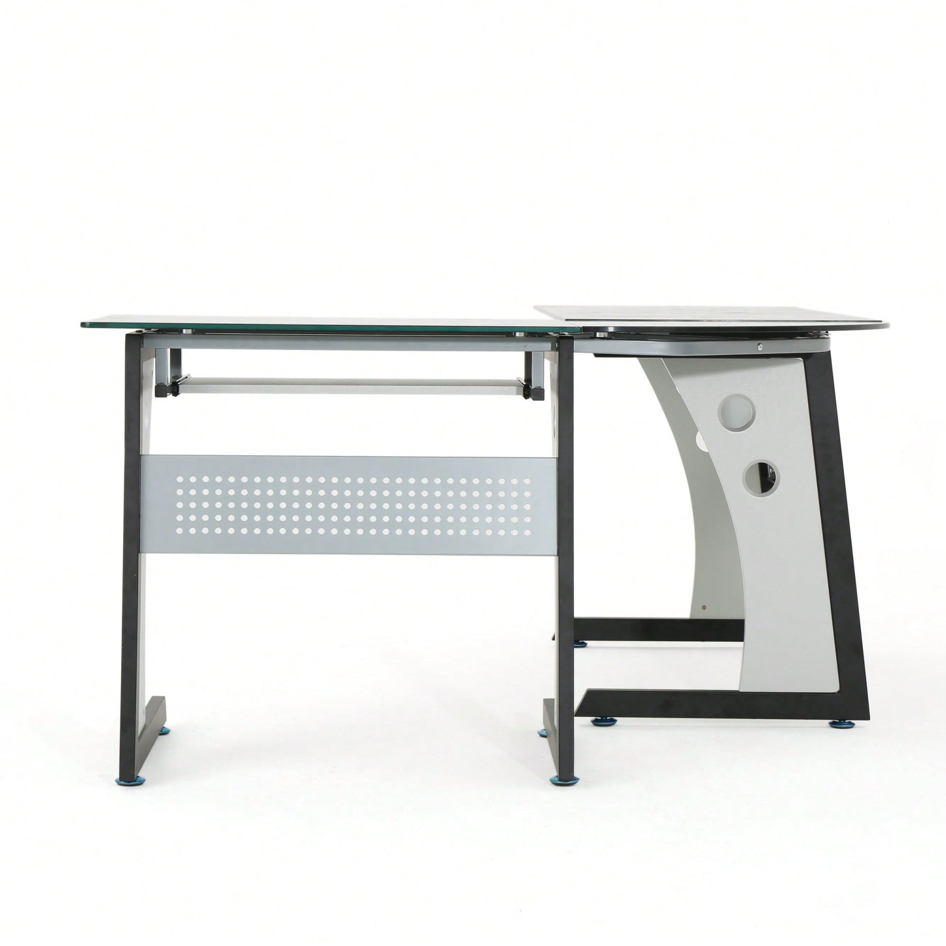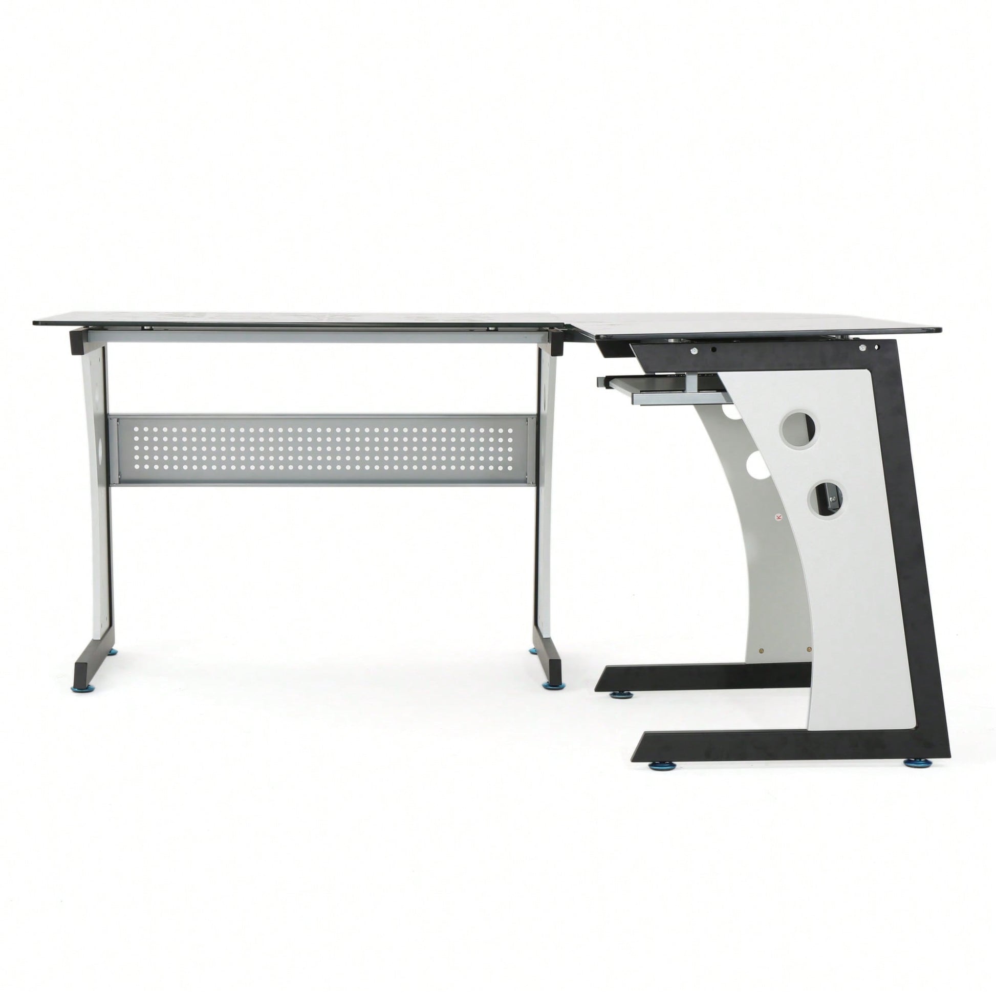 Modern L-Shaped Glass Office Desk For Stylish Workspace Organization