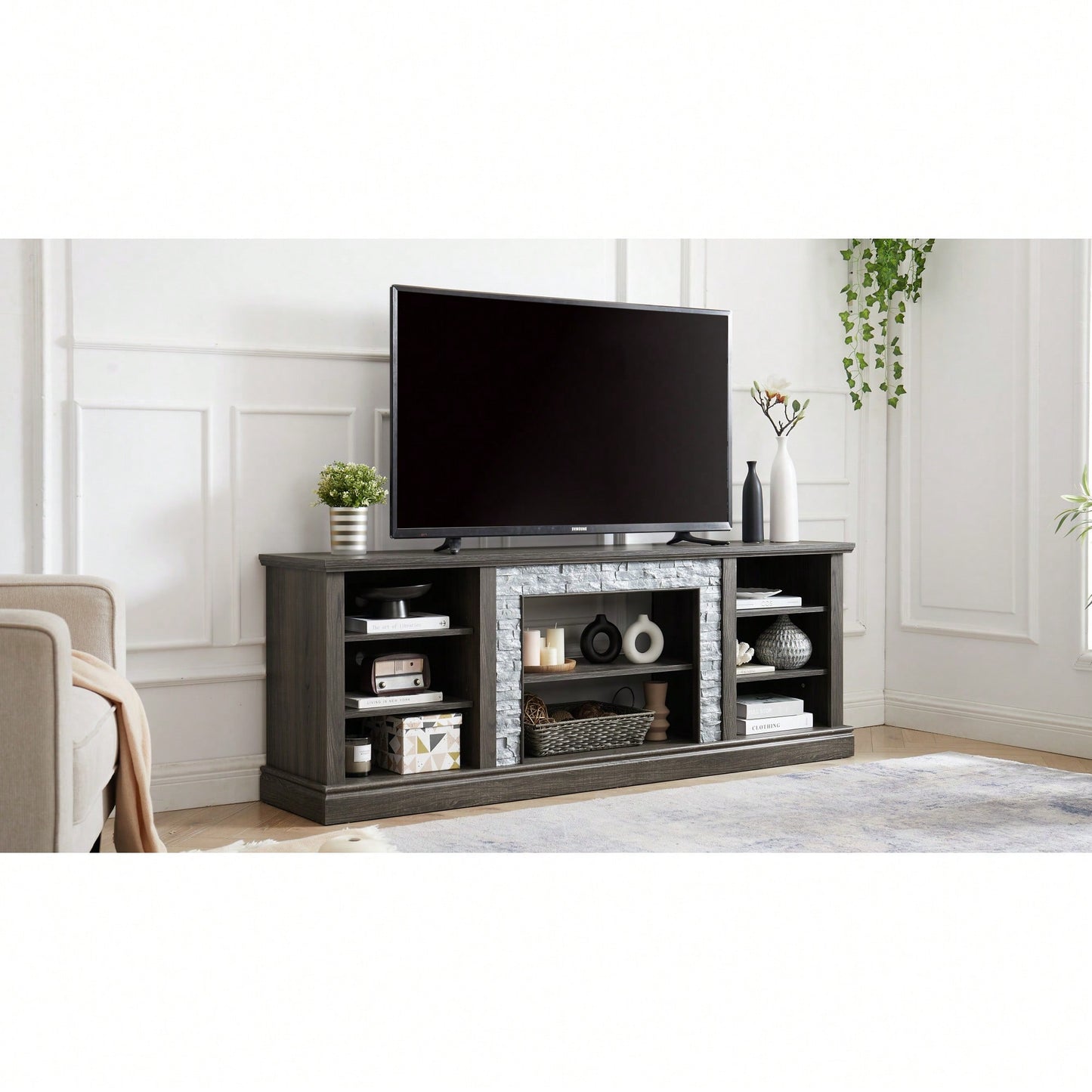 Modern Large TV Stand With Faux Stacked Stone Design And Ample Storage Space, 70.12" Wide Entertainment Center In Grey