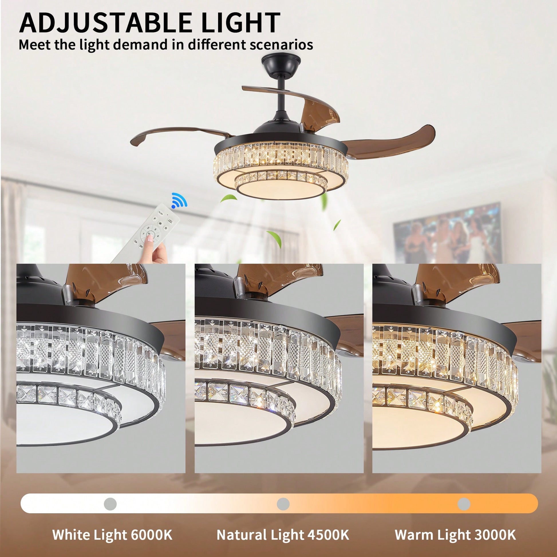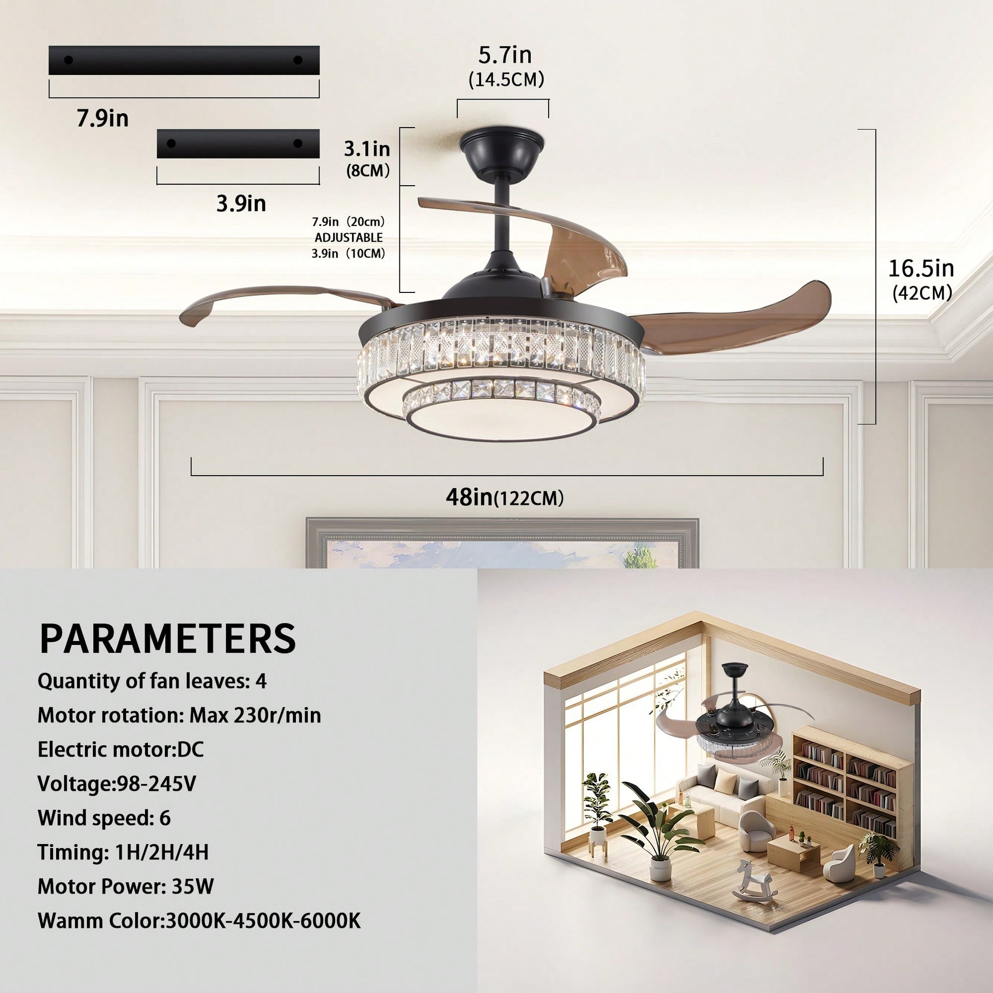 Modern LED Retractable Ceiling Fan With Remote Control - Quiet, Reversible Motor & 4 Blades For Kitchen, Bedroom, Dining Room, And Patio Use