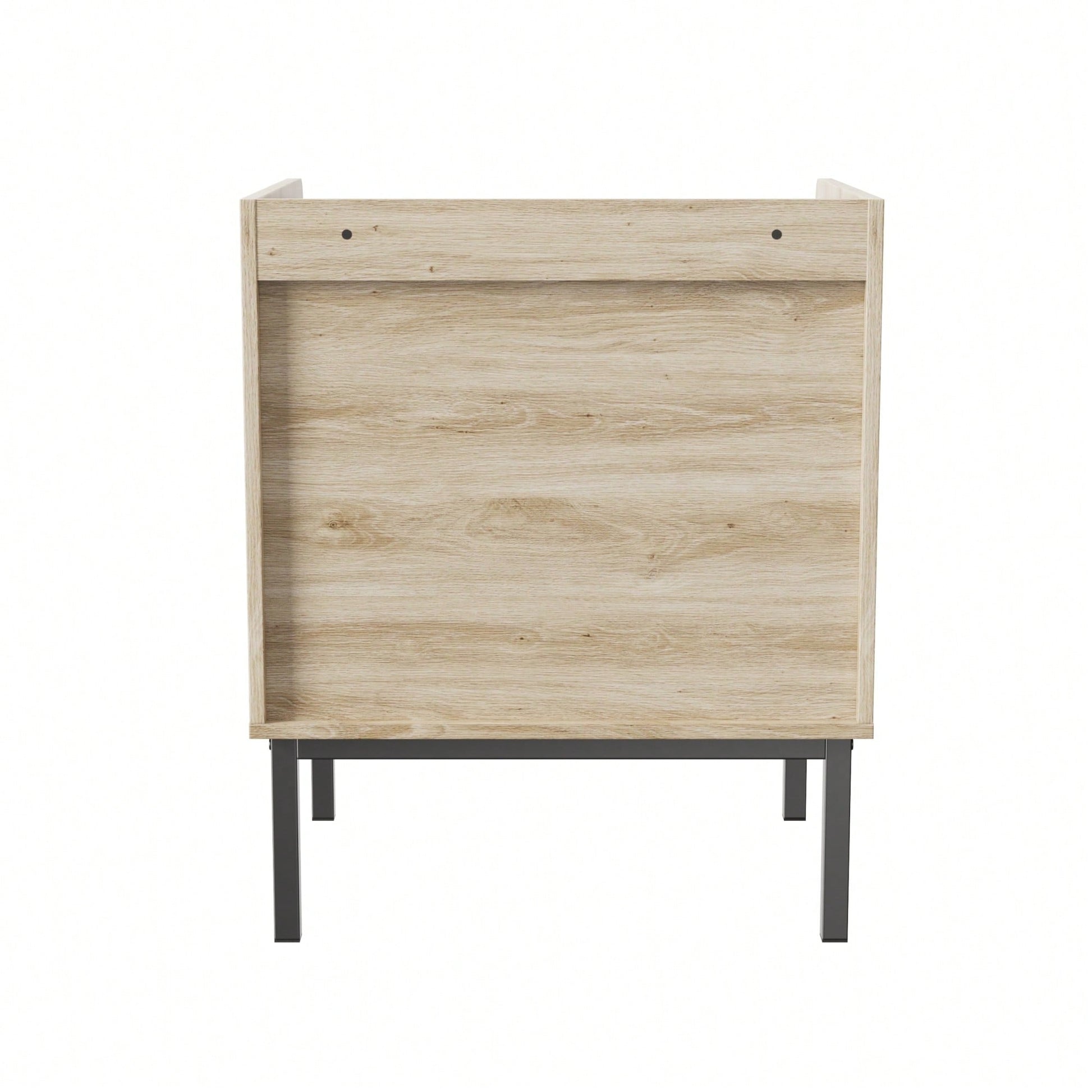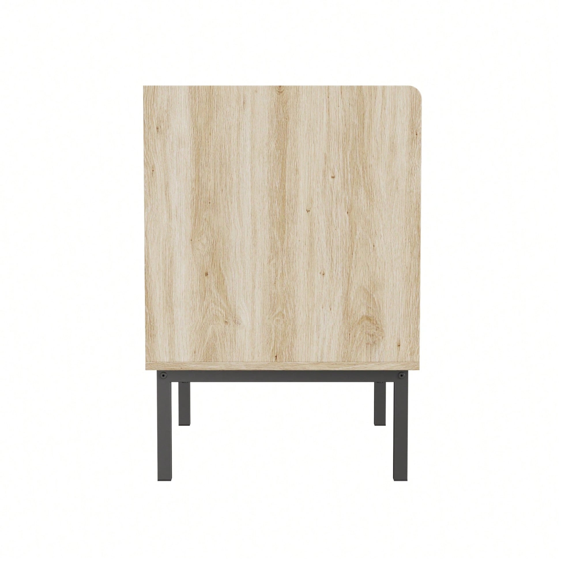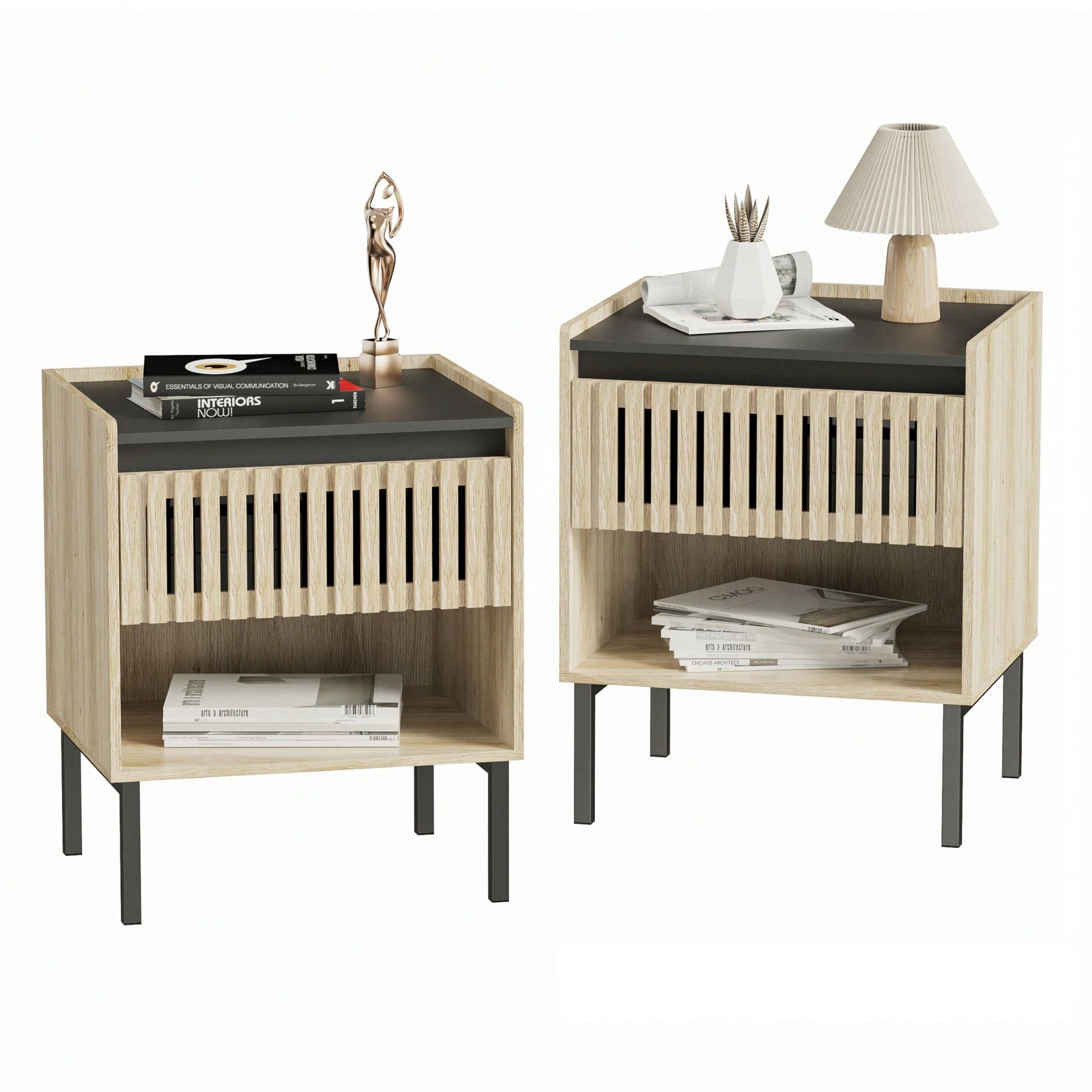 Modern Minimalist Bedside Cabinet Set With Quick Assembly Vertical Stripe Design And Iron Legs For Contemporary Homes