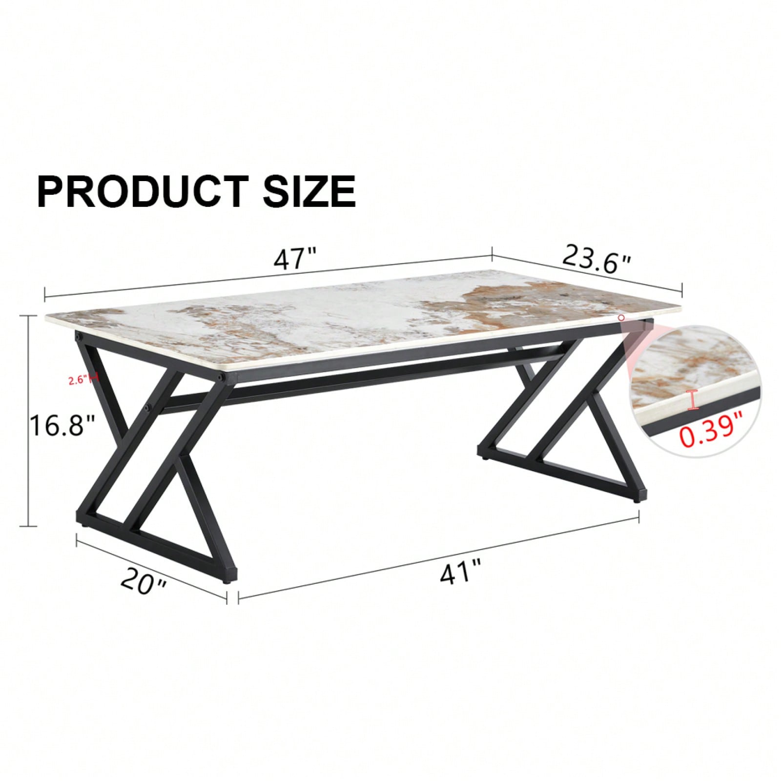 Modern Minimalist Marble Coffee Table with Metal Legs - Versatile Design for Home Use Easy Assembly for Gatherings