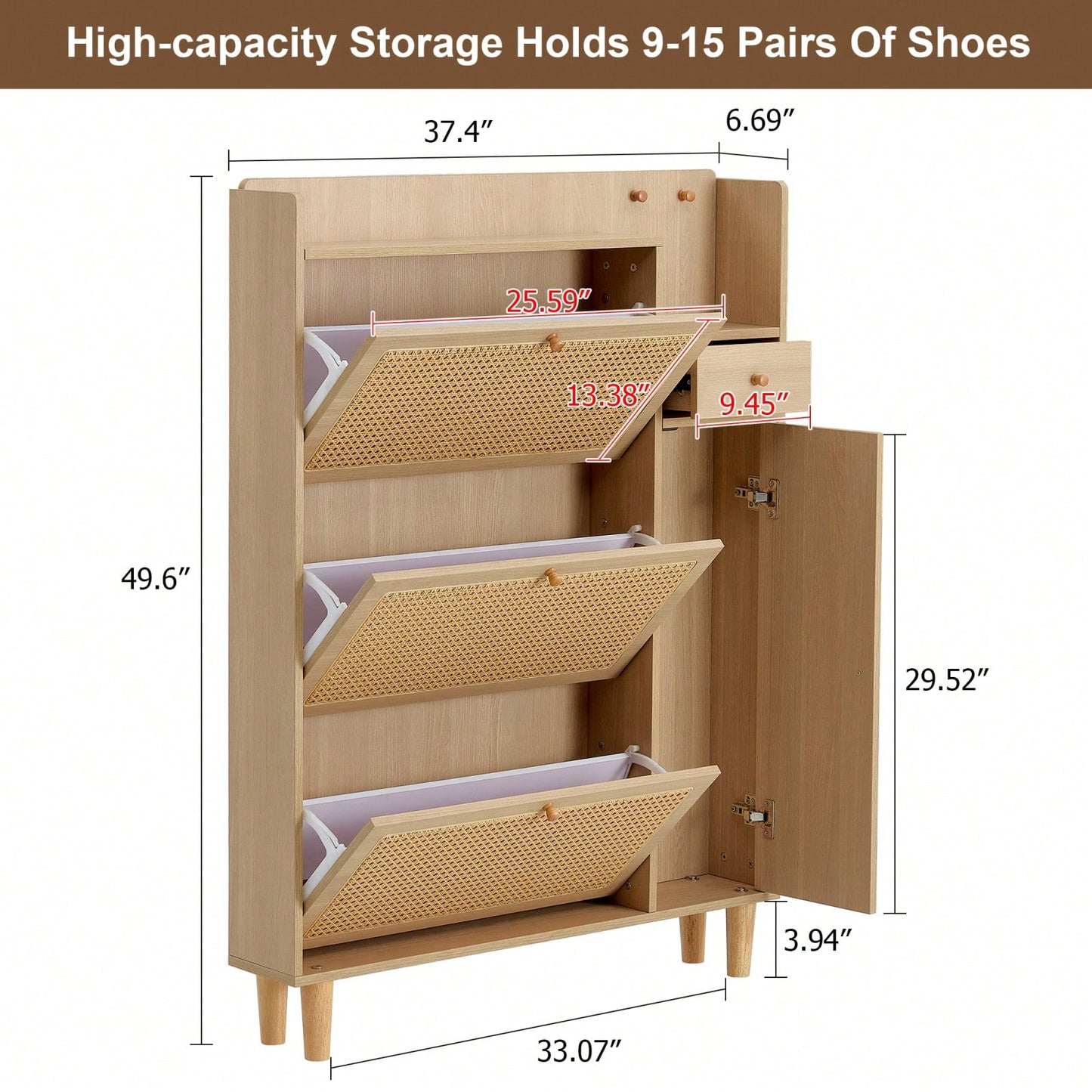 Elegant Minimalist Rattan Shoe Cabinet for Hallway and Living Room Stylish MDF Light Wood Storage Solution