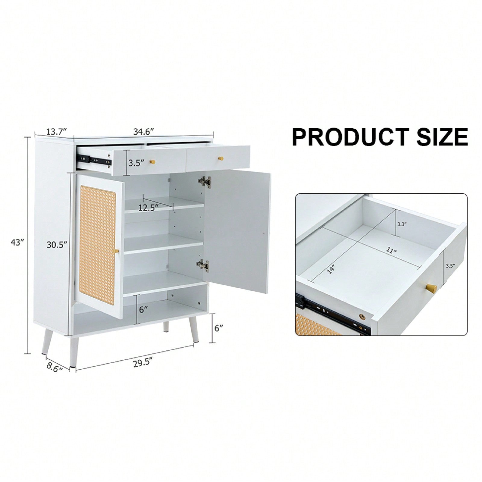 Modern Minimalist Storage Cabinet With Rattan Doors - Stylish Entryway Shoe Organizer Or Bedroom Nightstand - Easy 5-10 Minute Assembly
