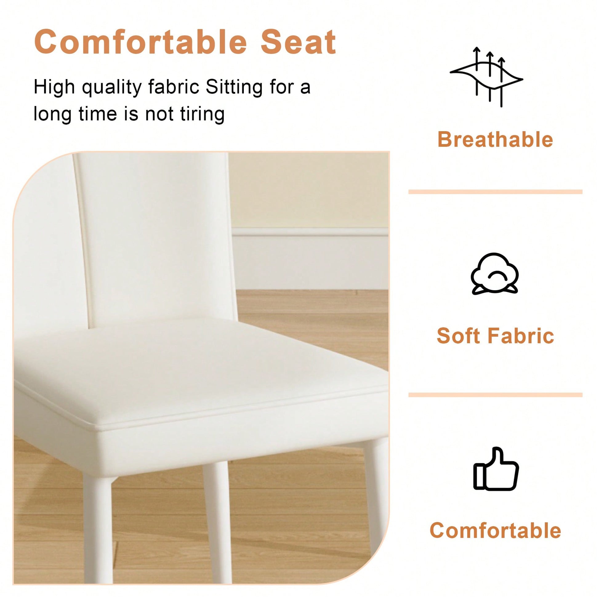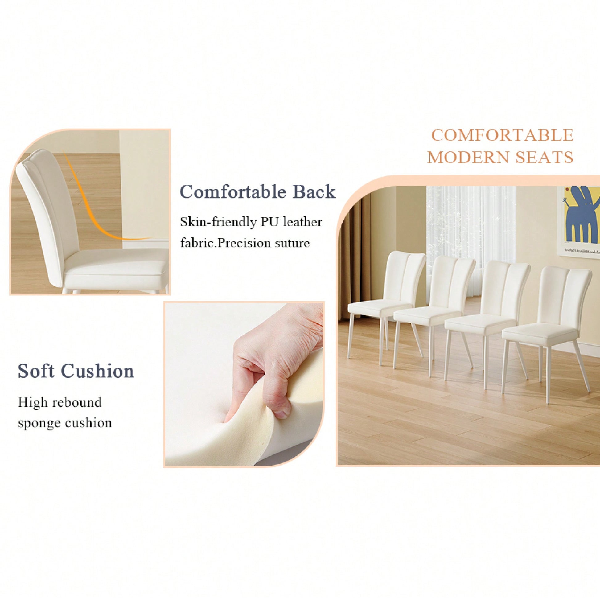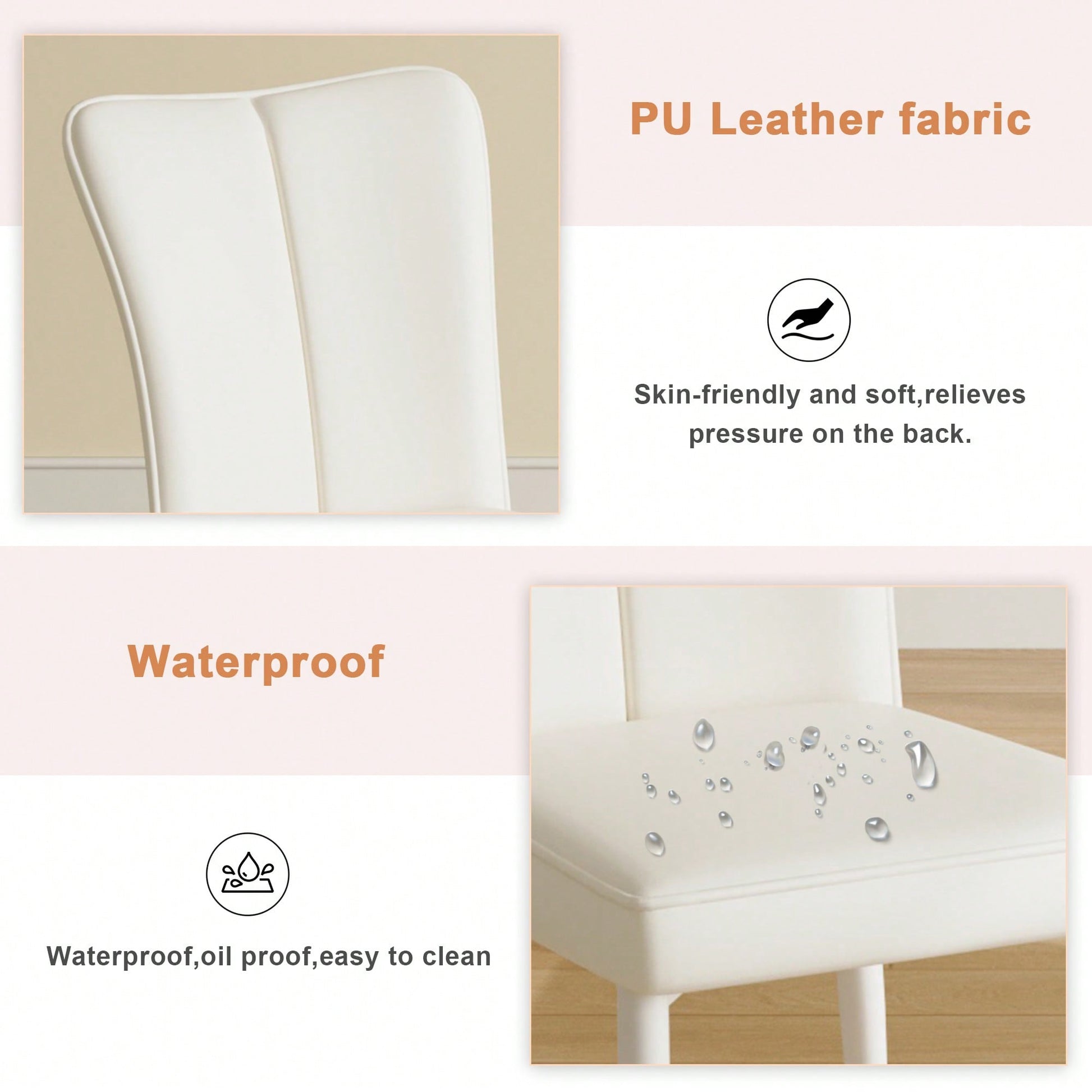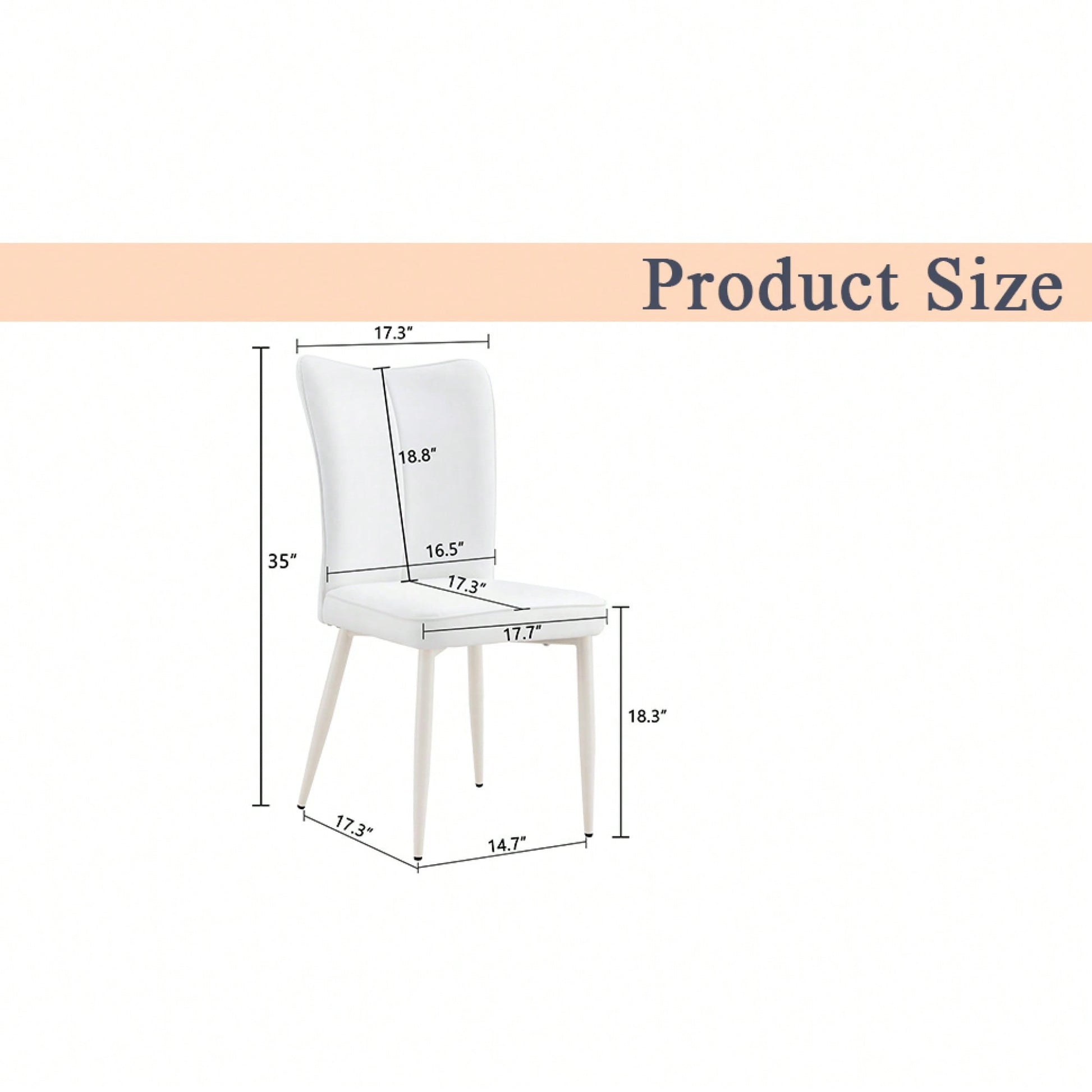 Modern Minimalist White PU Leather Dining Chairs Set Of 2 With Curved Back And Metal Legs For Dining Room Bedroom Living Room
