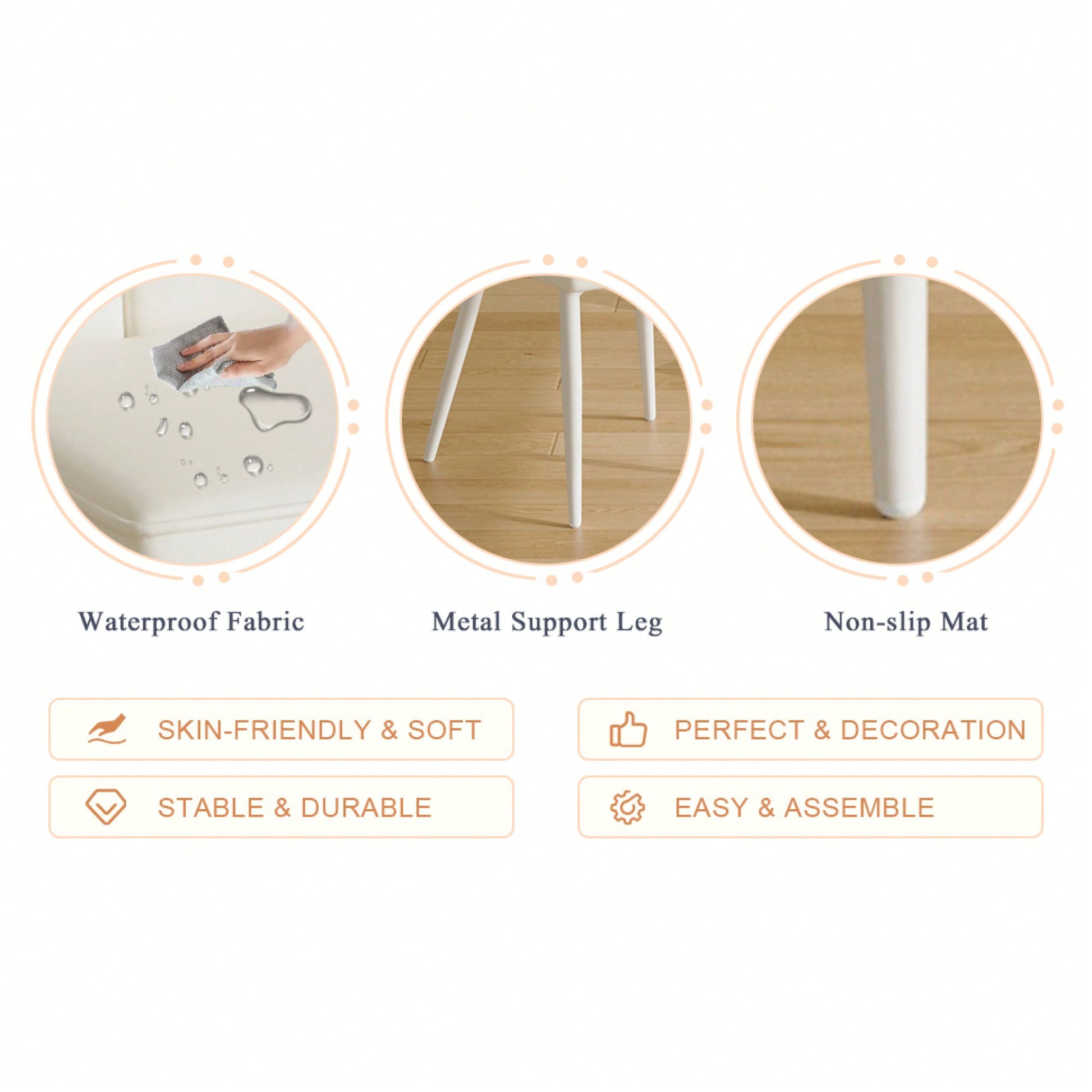 This set of 2 modern minimalist dining chairs features a sleek design that combines style and comfort. The curved back and cushioned seat are upholstered in high-quality white PU leather, providing a chic look while ensuring ergonomic support. The sturdy white metal legs offer durability and a contemporary touch, making these chairs perfect for any dining room, bedroom, or living room setting.