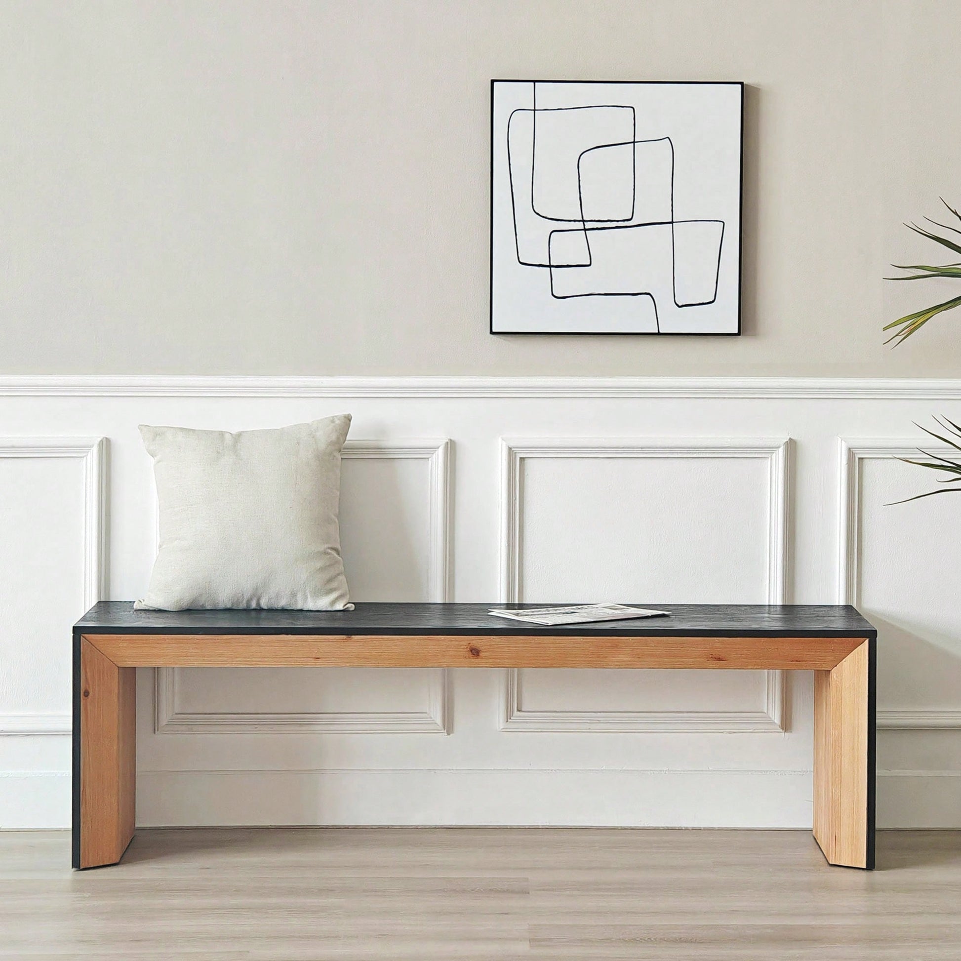 This versatile bench combines modern design with practicality, making it suitable for various settings. The sturdy construction, featuring a painted wood veneer finish, ensures durability and a sleek look. Its smooth surface and wide support design provide a comfortable seating experience. Whether used in a dining room, bedroom, or hallway, this bench adds a touch of sophistication and functionality.