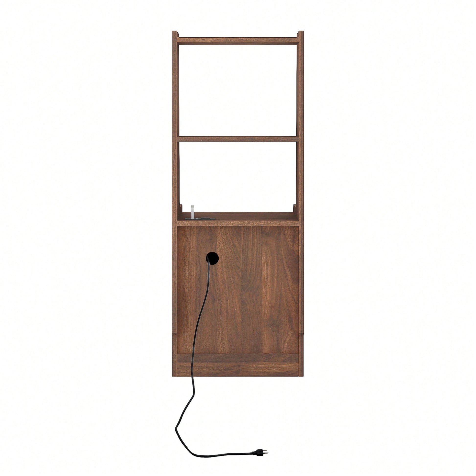 Modern Nightstand With Charging Station And Night Light, Stylish Bedside Table With Bookshelf And Storage Cabinet For Bedroom, Wooden Design