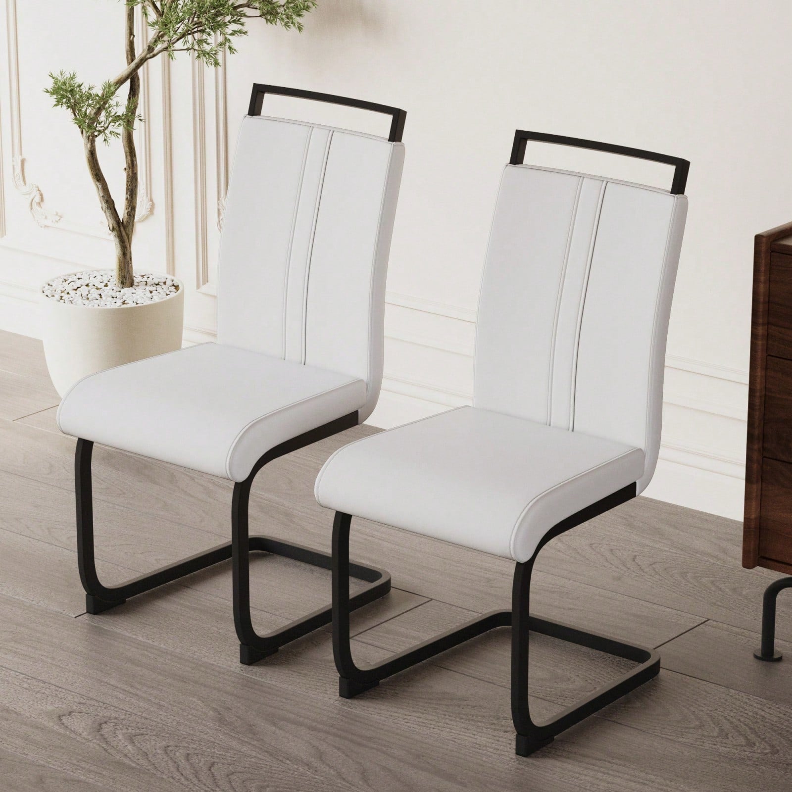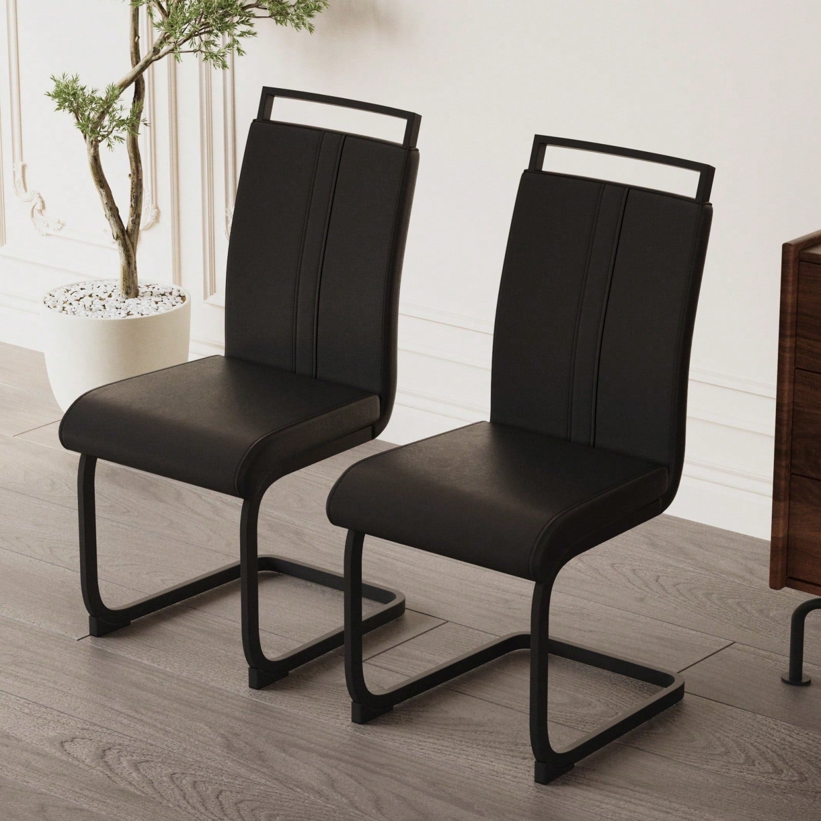 Set of 2 Modern PU Faux Leather High Back Dining Chairs with Black Metal Legs for Kitchen Office and Dining Room