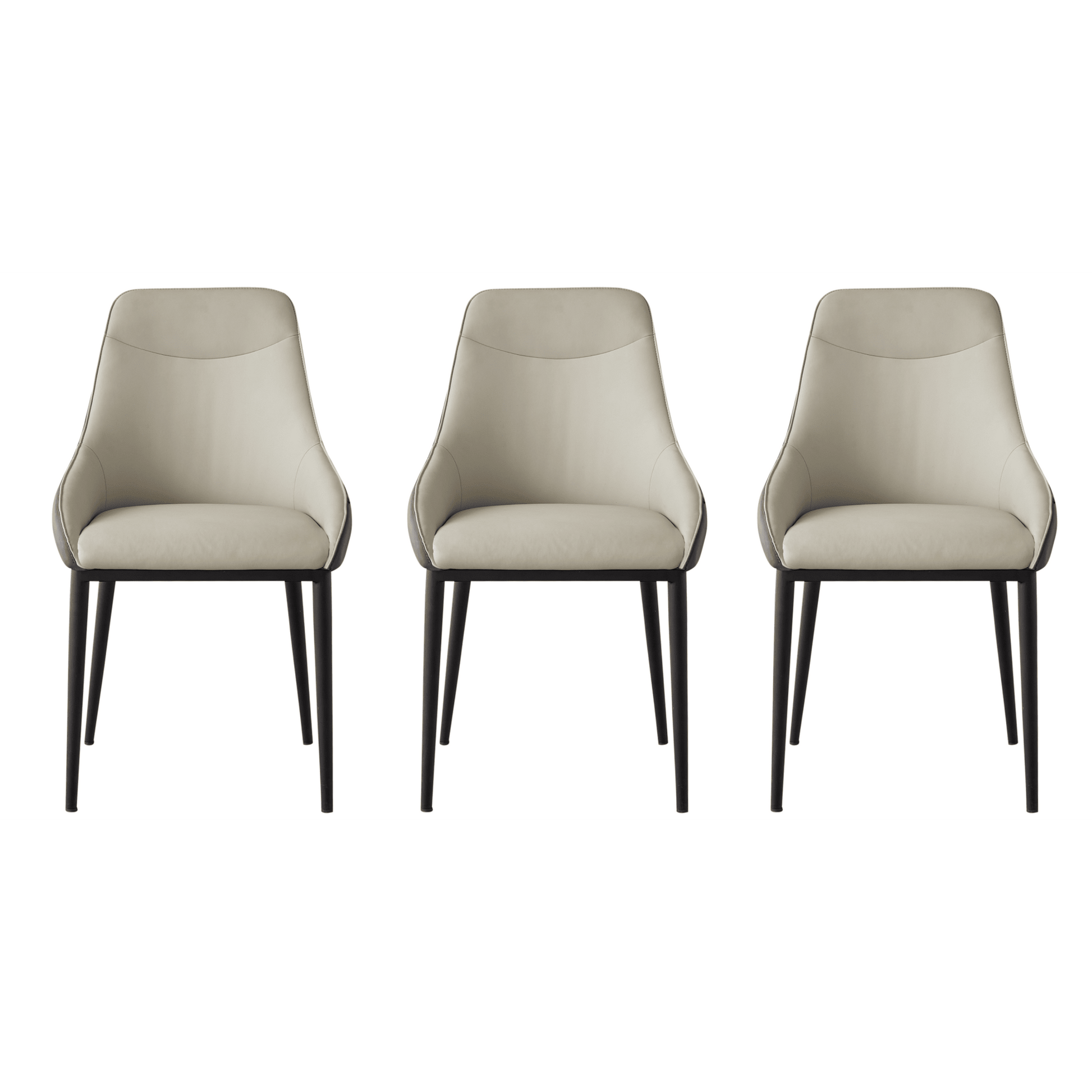 This modern dining chair set combines style and comfort, featuring luxurious PU leather upholstery that enhances your dining experience. The sleek metal legs, finished with a sophisticated black print, add a contemporary touch to any space. Designed with a spacious wide seat, these chairs provide ample room for relaxation during meals or conversations. Crafted with high-quality materials, they ensure stability and durability for everyday use. Whether placed in your dining room, kitchen, or home office, these chairs elevate the aesthetic appeal while offering both comfort and elegance.