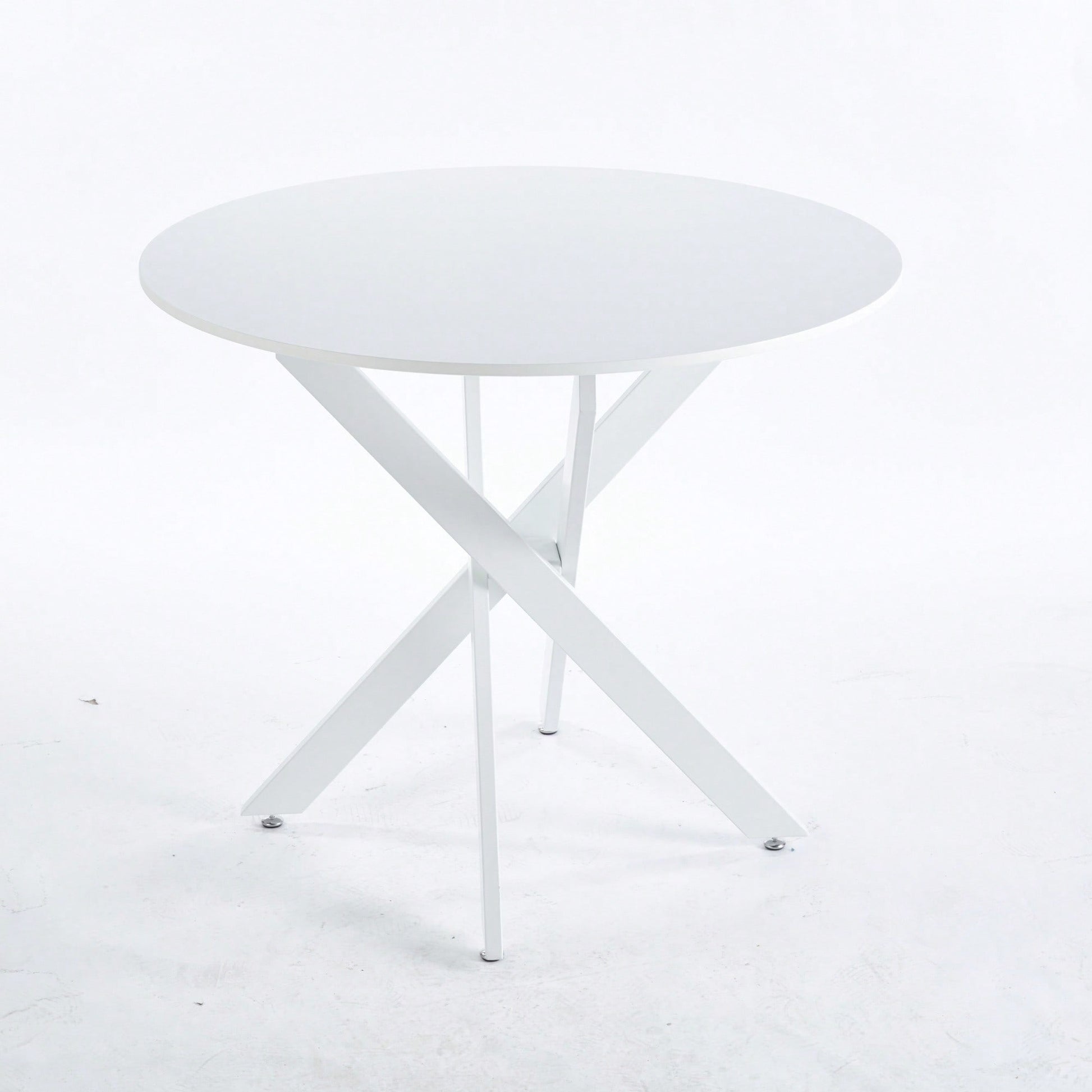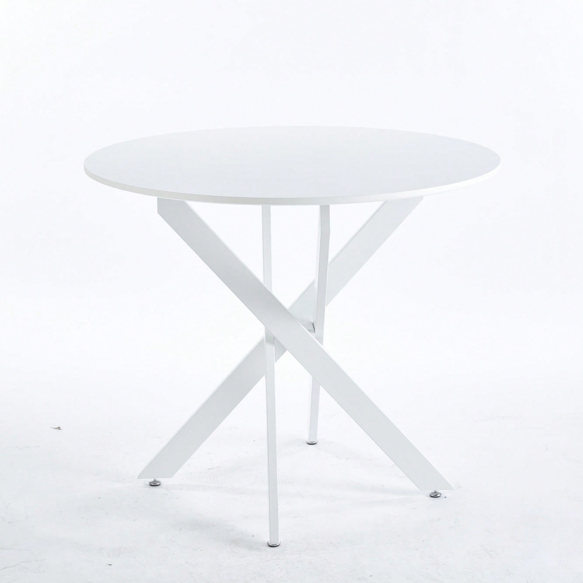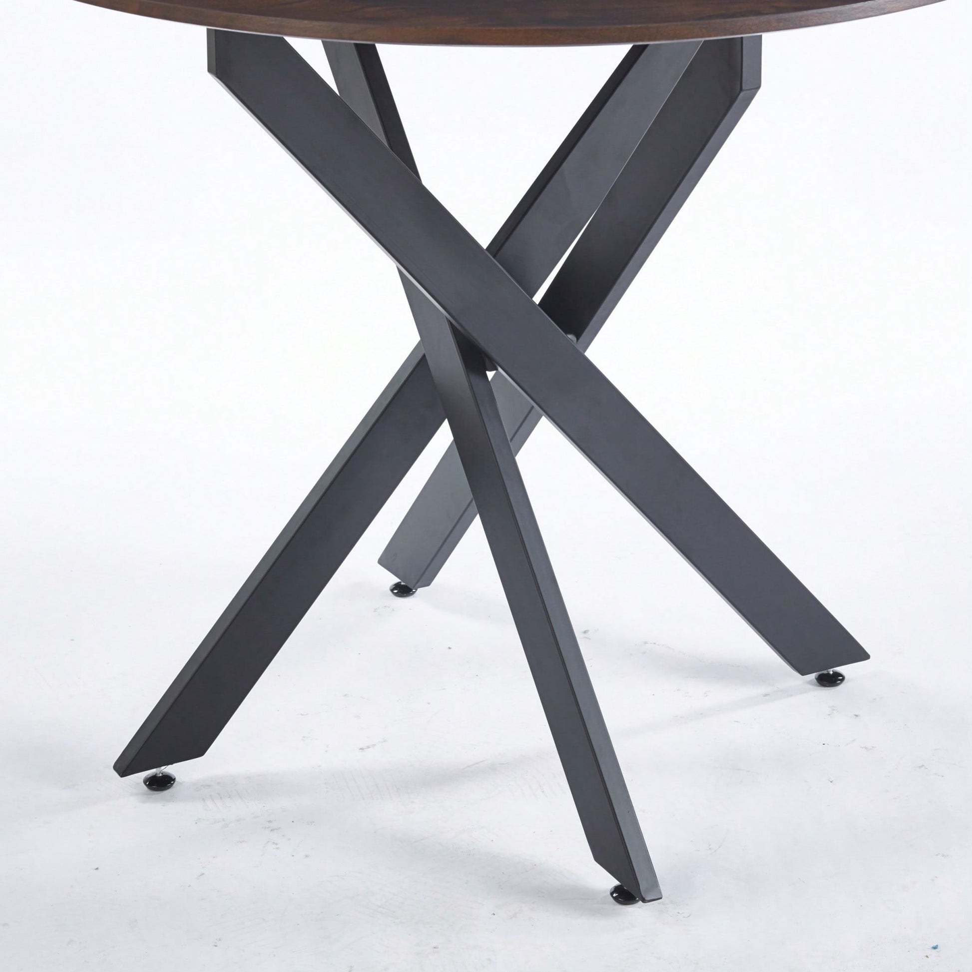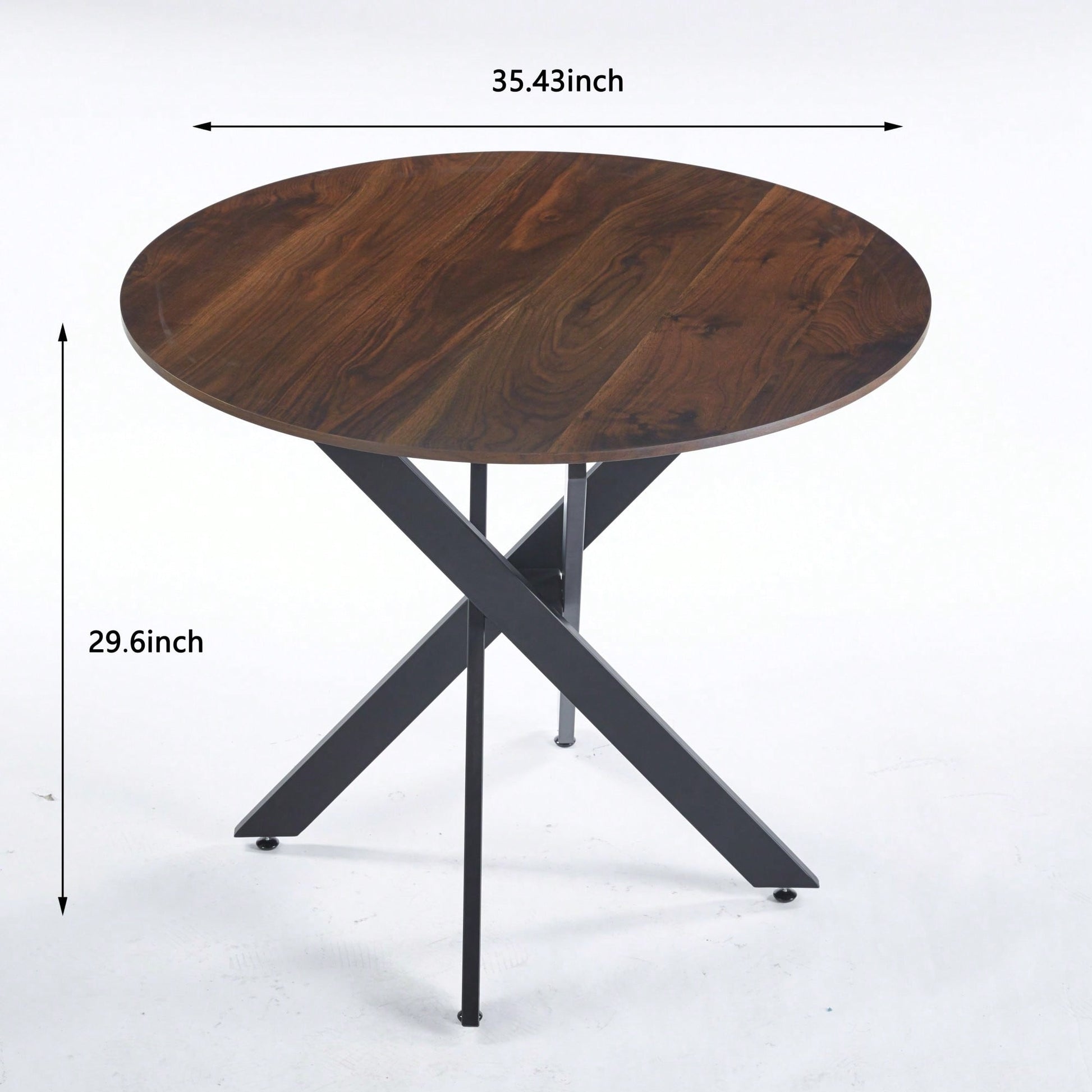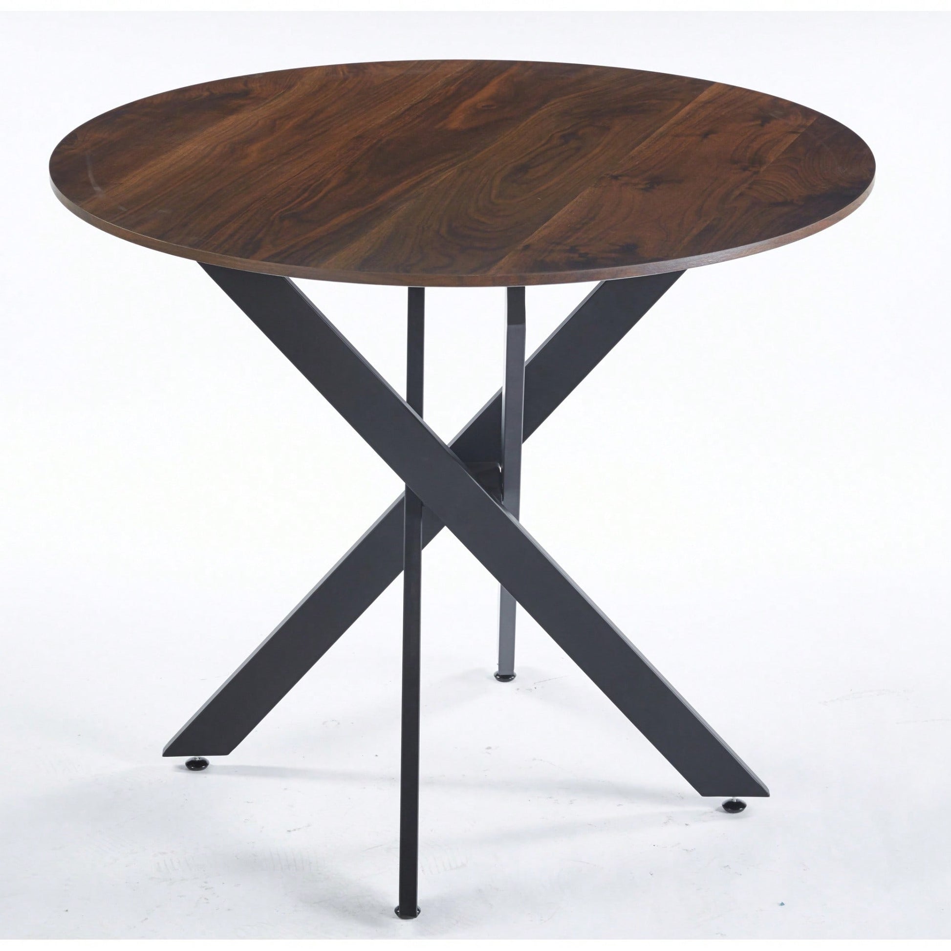 Modern Round Dining Table With Cross Metal Legs And Oak MDF Top Space Saving Design 90x90x75cm For Living Room And Kitchen