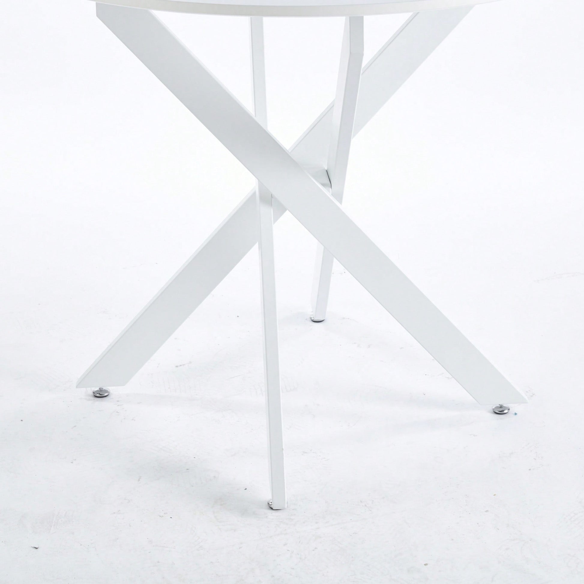 - Modern design with cross metal legs and an MDF top