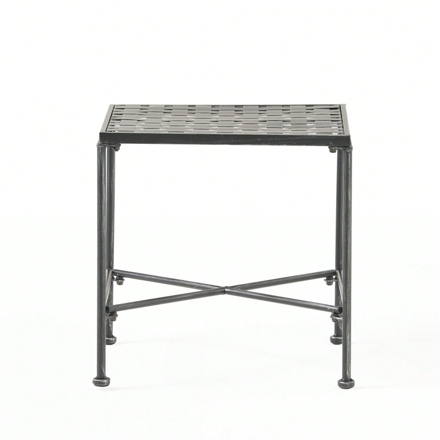 This end table is a versatile addition to your outdoor space, designed to pair seamlessly with a variety of chairs, loveseats, and coffee tables. Crafted from durable powder-coated iron, it ensures longevity and resilience against the elements. The elegant black brush silver finish enhances its aesthetic appeal, making it a stylish choice for any patio setting. Whether used as a side table during family BBQs or as a decorative accent, this table is sure to elevate your outdoor experience.