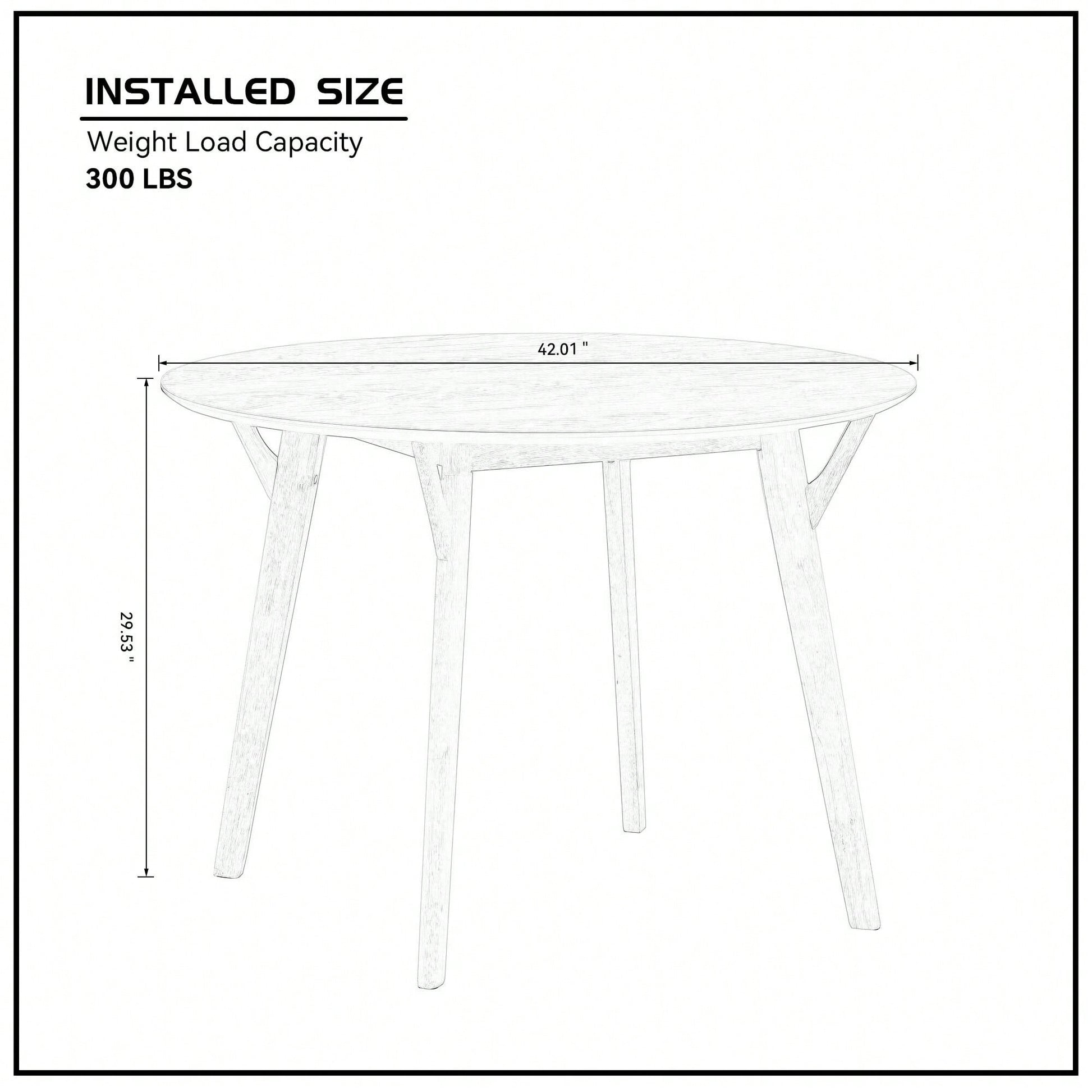 This modern round dining table is perfect for small spaces, measuring 42.01 inches in both length and width, and standing 29.53 inches tall. The elegant design features a stylish MDF table top with a beautiful wood veneer, complemented by solid wood legs that ensure stability and durability. Ideal for living rooms, apartments, or restaurants, this table combines functionality with contemporary aesthetics, making it a great addition to any dining area.