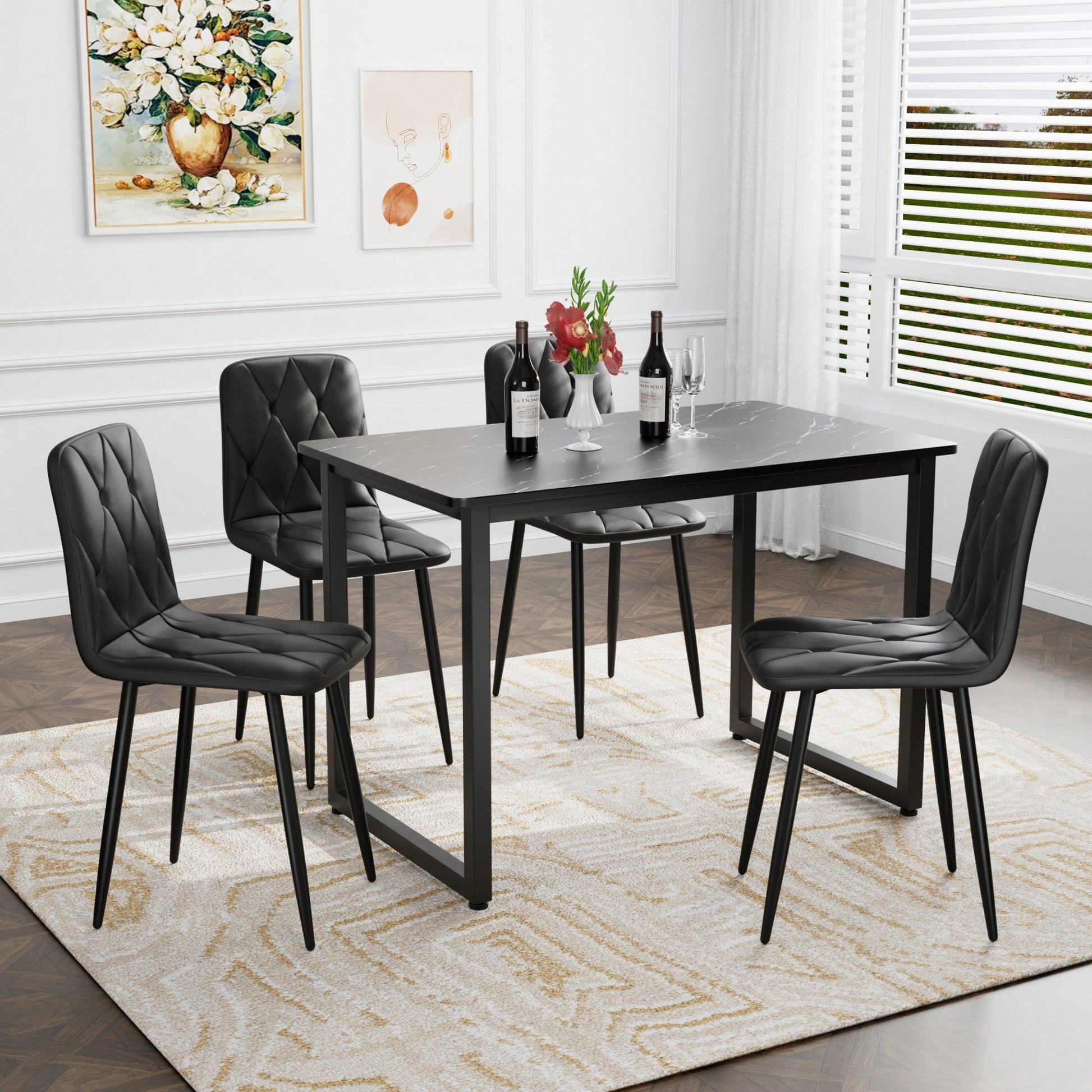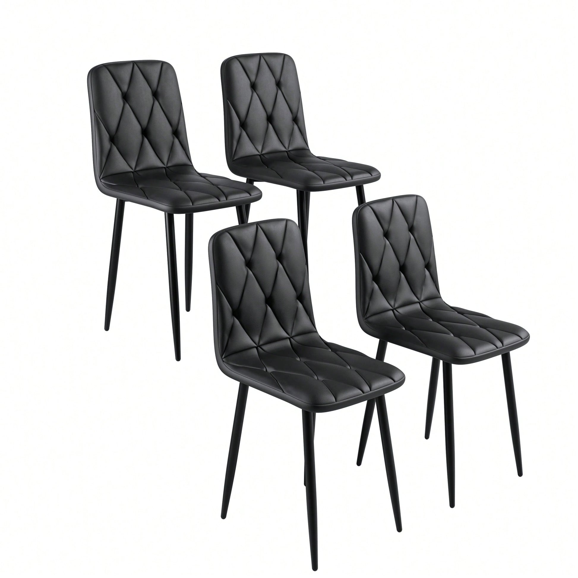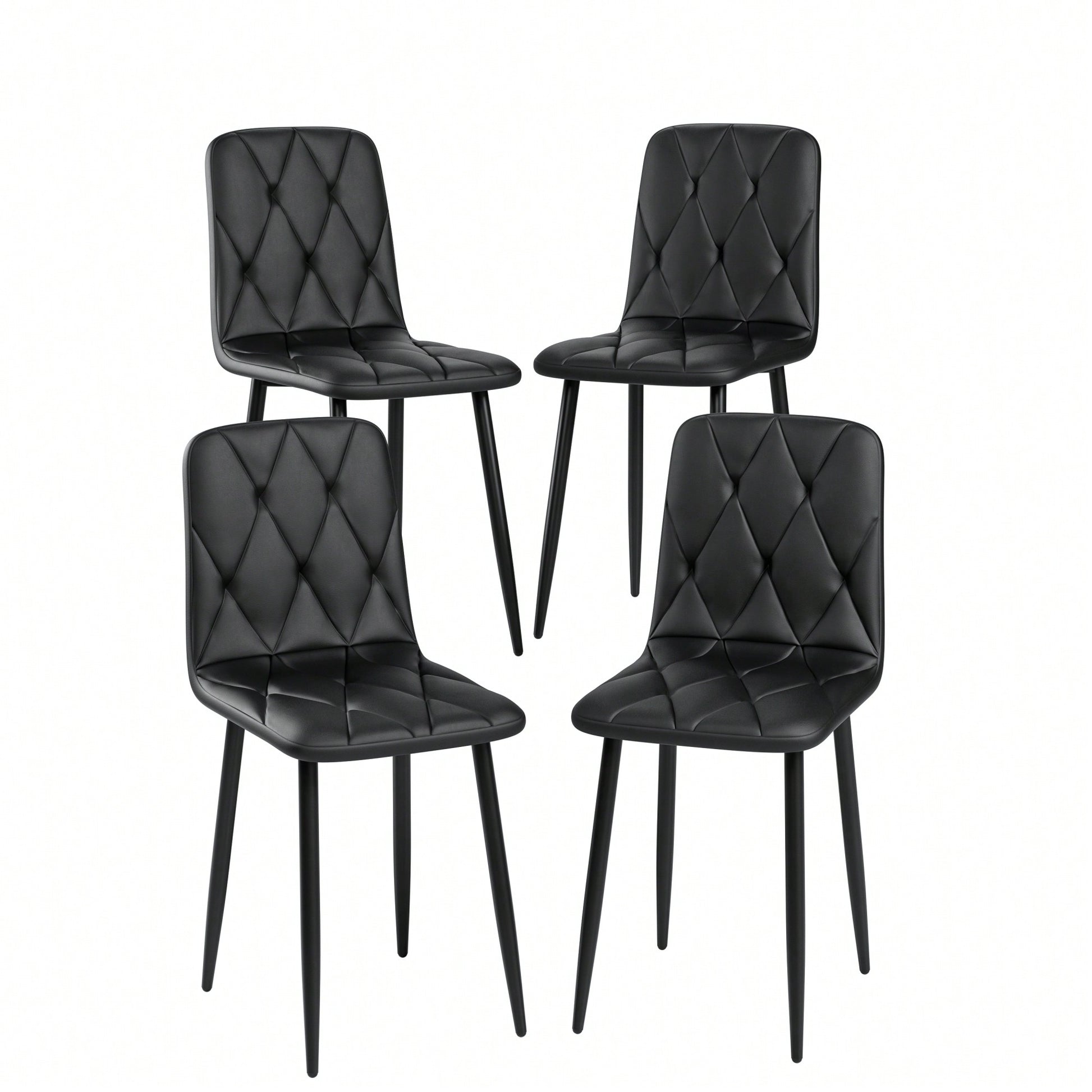 Modern Set Of 4 Upholstered Kitchen Dining Chairs With Durable Metal Legs And Comfortable PU Cushion Seat