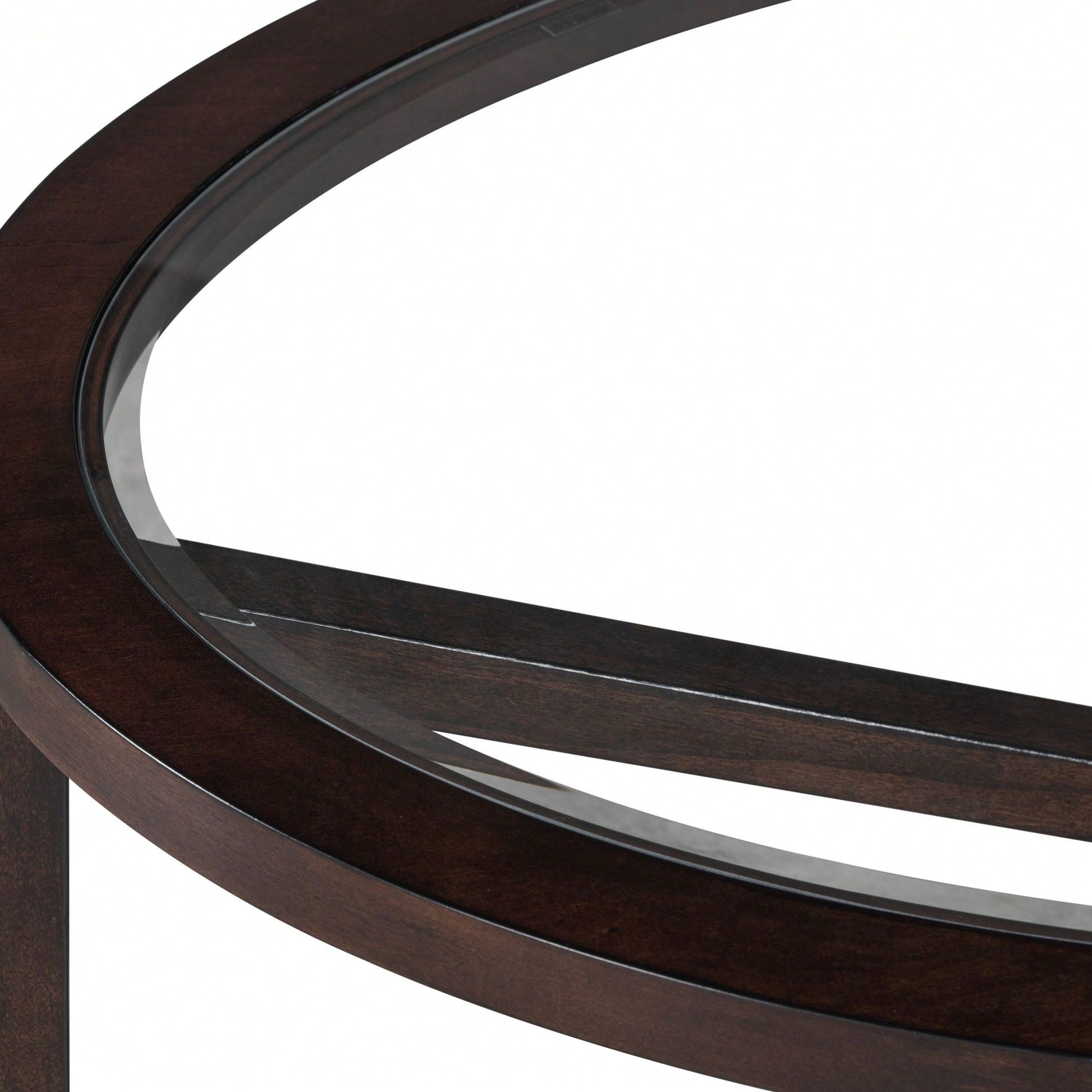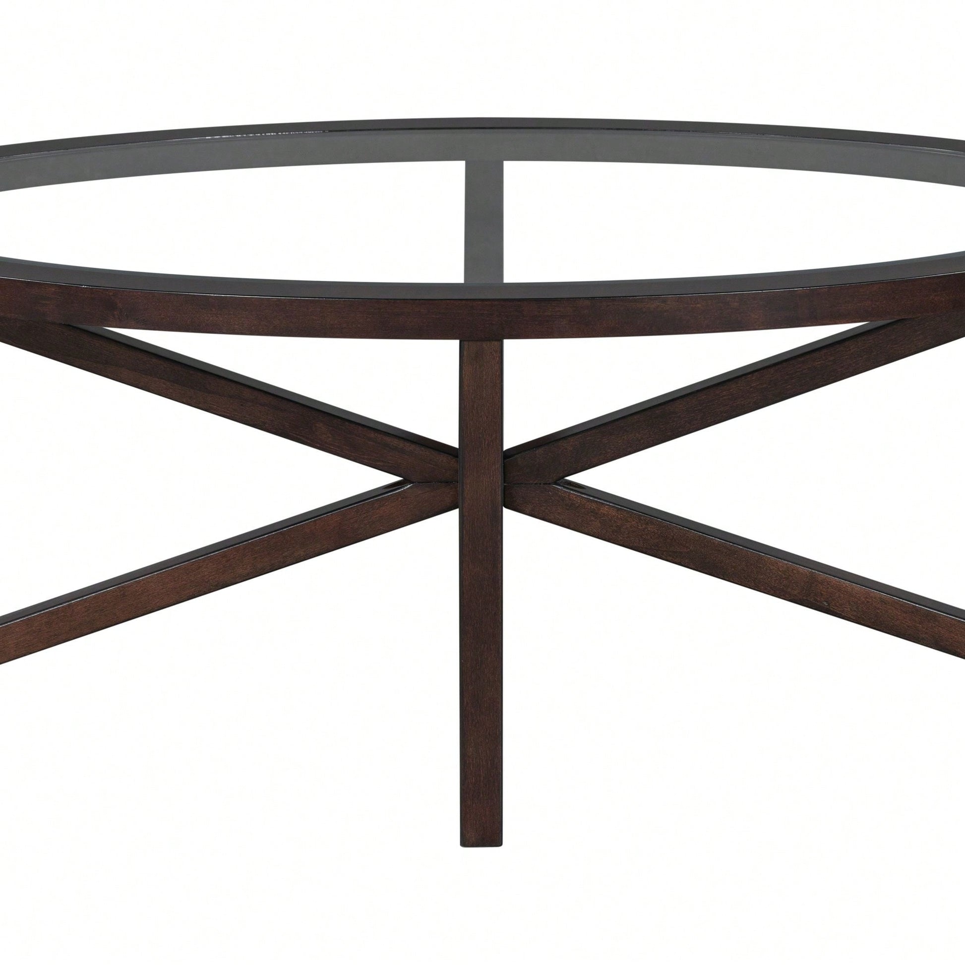Modern Round Glass Coffee Table with Solid Wood Base for Living Room and Study