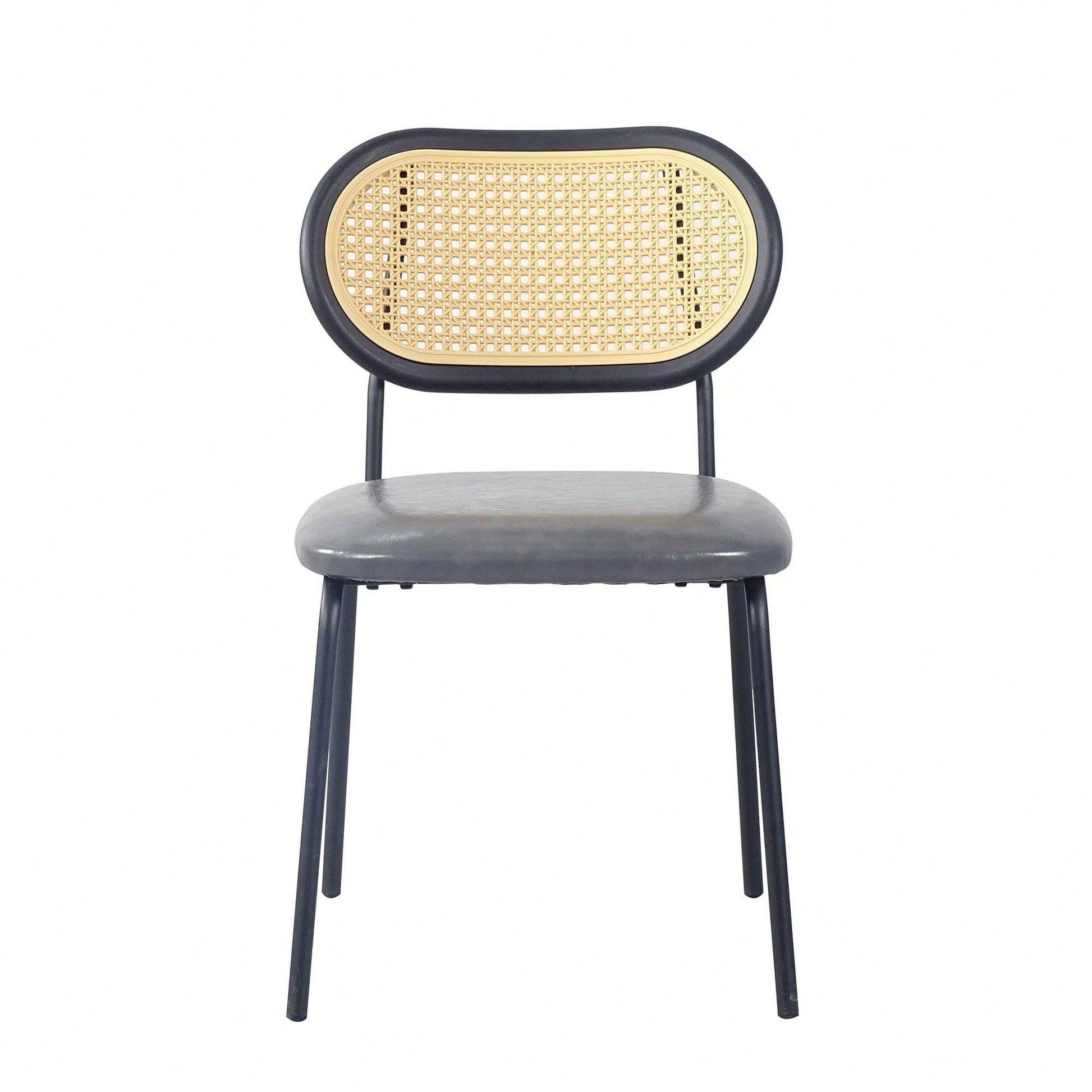Modern Simple Style Dining Chair PU Leather Black Metal Pipe PP Back Dining Room Furniture Chair Set Of 2