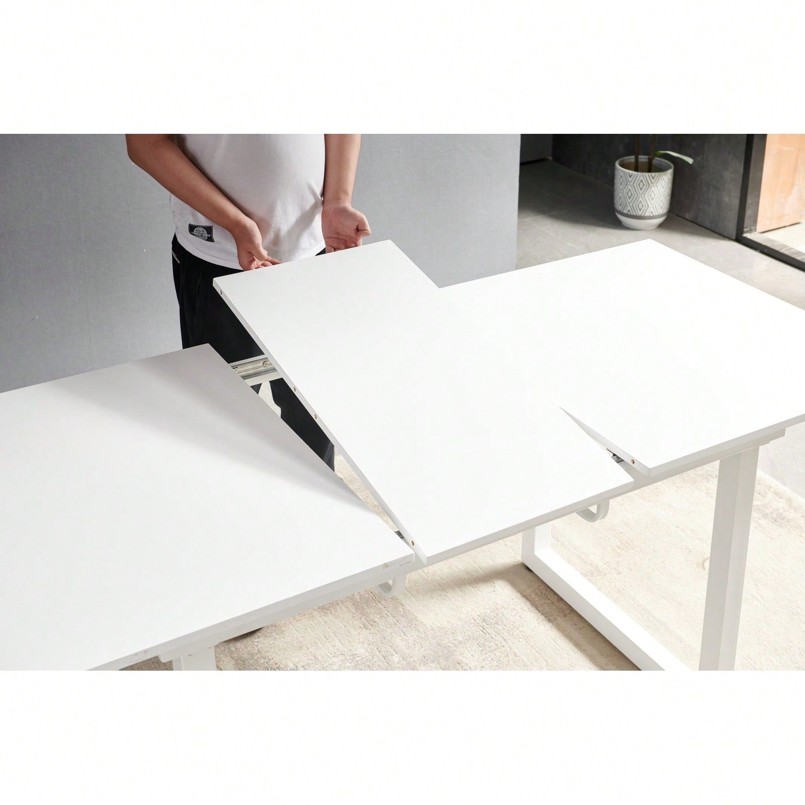 Modern Space Saving Kitchen Table For Living Room, Extendable Dining Table With Metal Leg