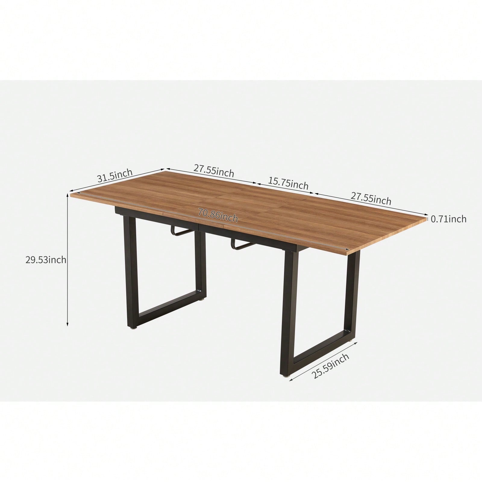 Square extendable dining table with metal legs, perfect for modern spaces in need of a space-saving kitchen table. The MDF top and metal legs provide stability and prevent shaking. The smooth surface is easy to clean, saving time and effort. The table length is adjustable to accommodate different scenarios. Actual product color may vary slightly from the image due to lighting or display.