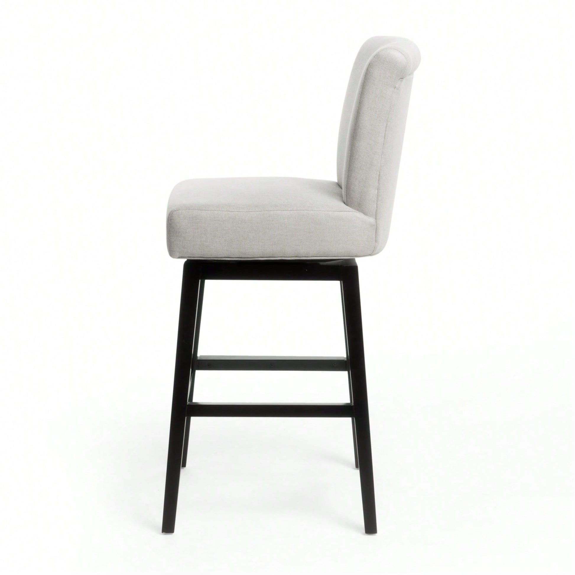 This swivel counter stool features a soothing beige fabric that seamlessly blends with various interior styles, creating a welcoming atmosphere. The soft upholstery ensures a comfortable seating experience, perfect for long periods of use whether you're reading, working, or taking a break. The swivel function allows for effortless movement, making it easy to engage with others or reach for items around you. Crafted with durable wooden legs, this stool not only offers stability but also adds a timeless charm to your space. Its versatile design makes it an excellent choice for different areas in your home, serving as a stylish accent piece or a functional desk chair.