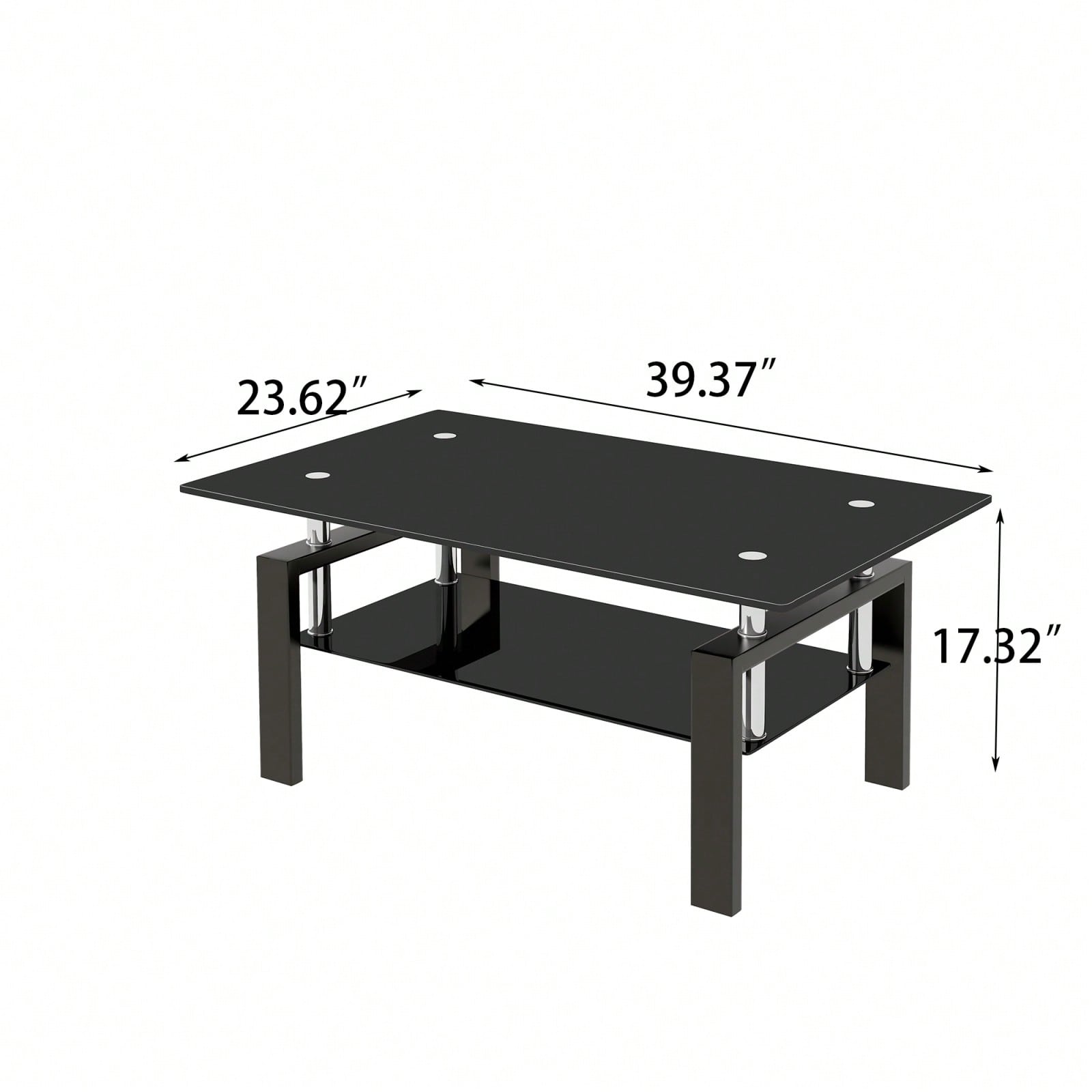 1. Modern and sleek design with tempered black glass top and two layers for added storage or display options.