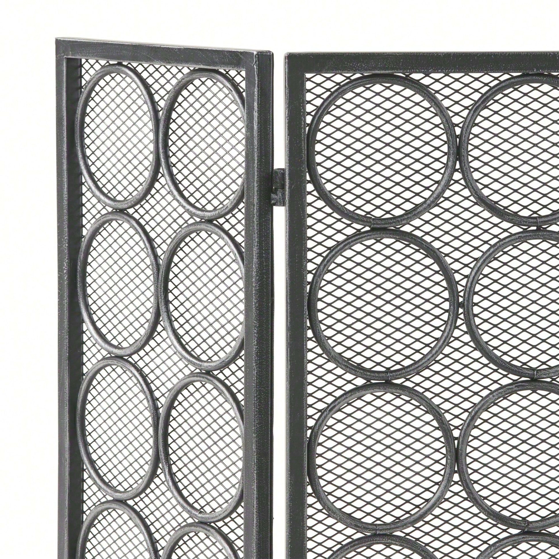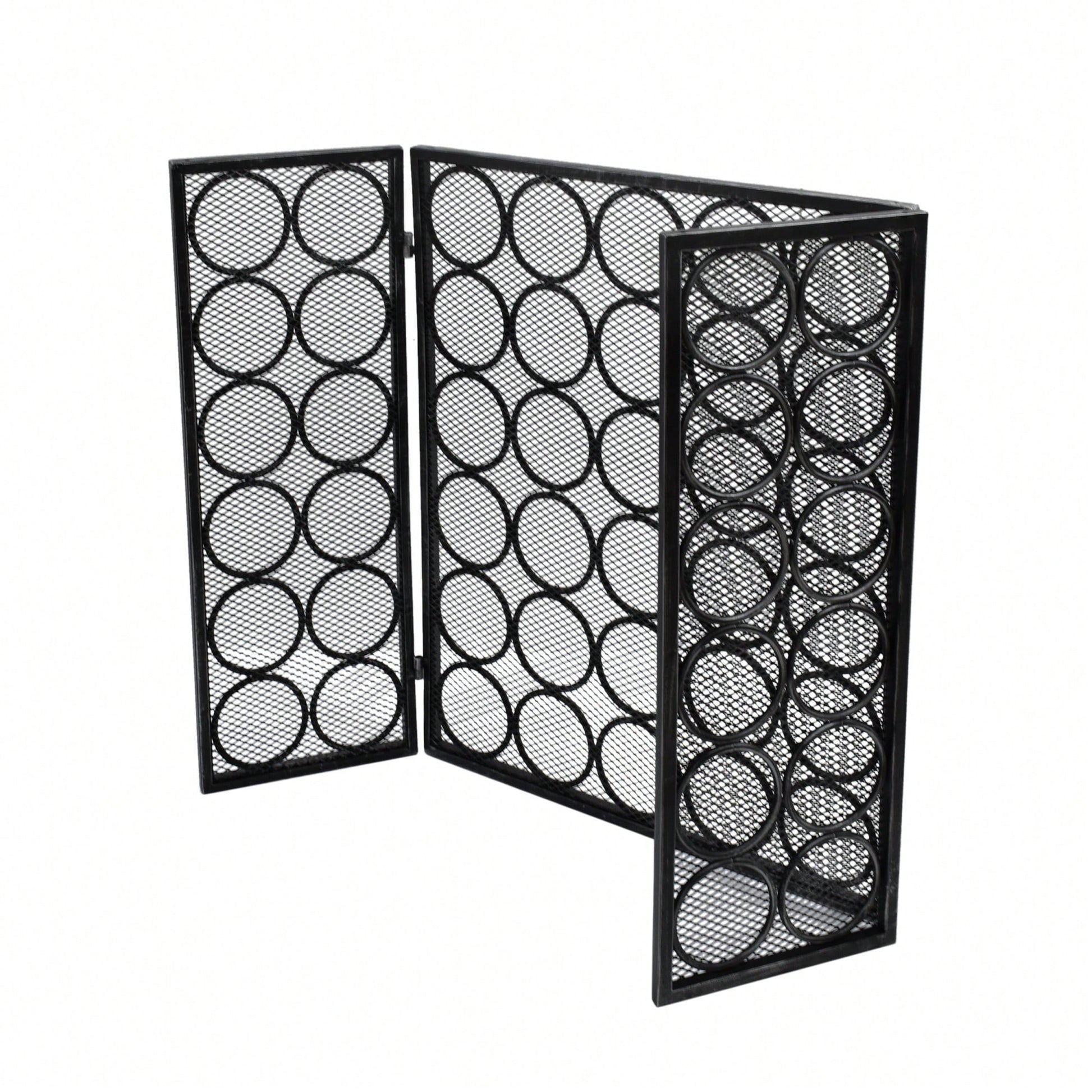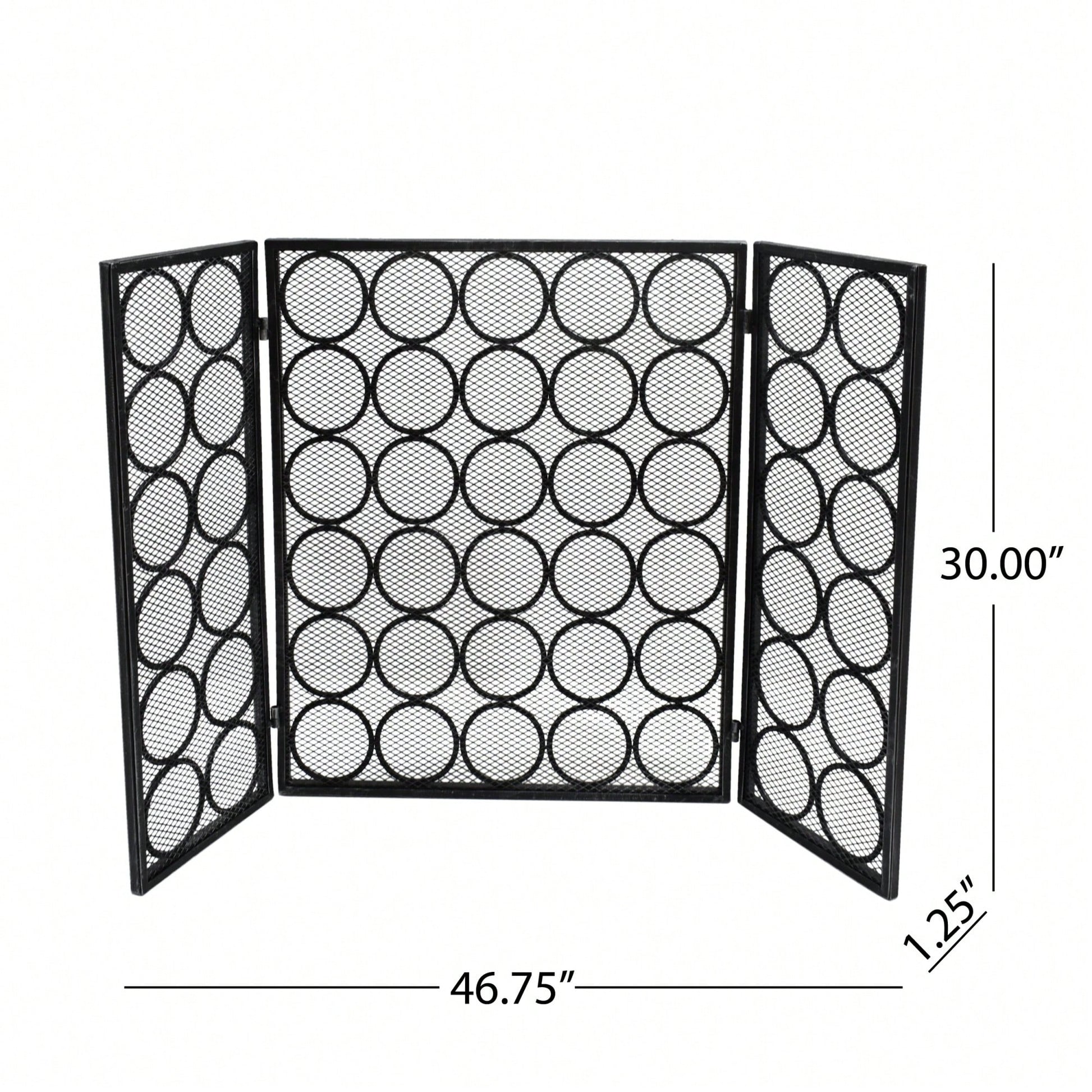 Cozy up next to your fireplace in the company of a loved one with this delightful fireplace screen. Offering a sleek accent to your living room or bedroom, it provides protection from hot embers or flying sparks with its fine mesh screen. The three-panel design is foldable for convenience and features an upbeat circular pattern across all panels, highlighting both functionality and style.