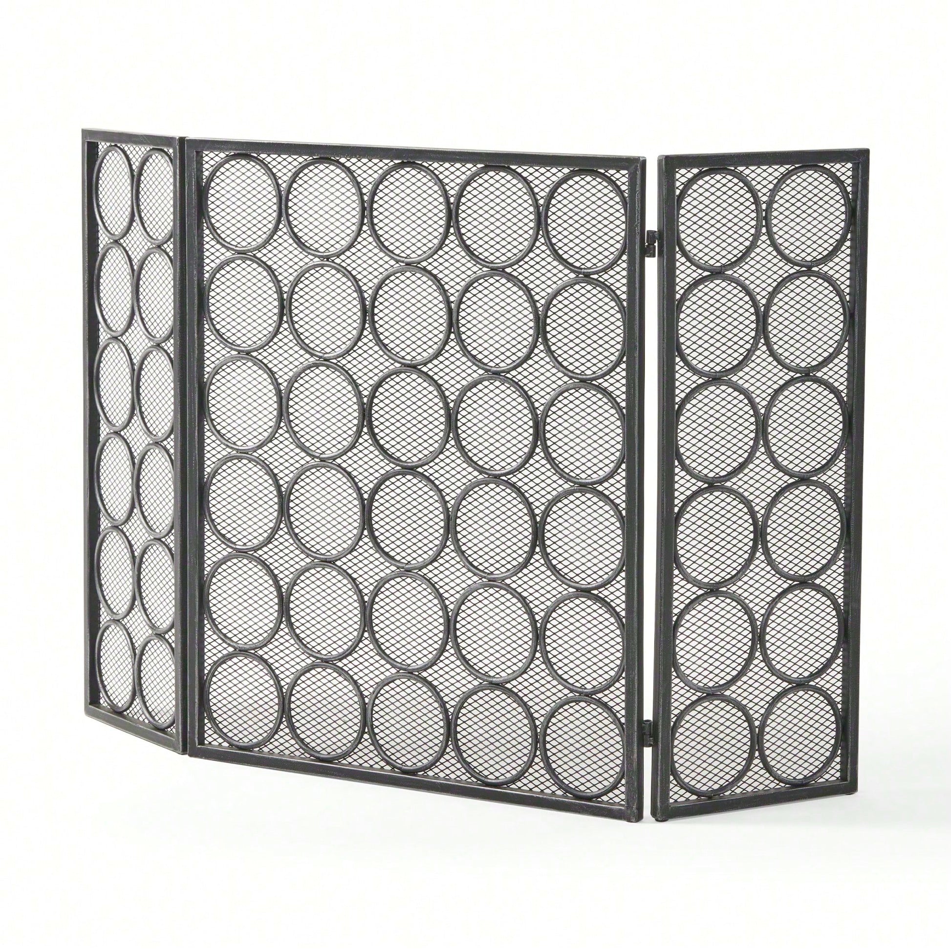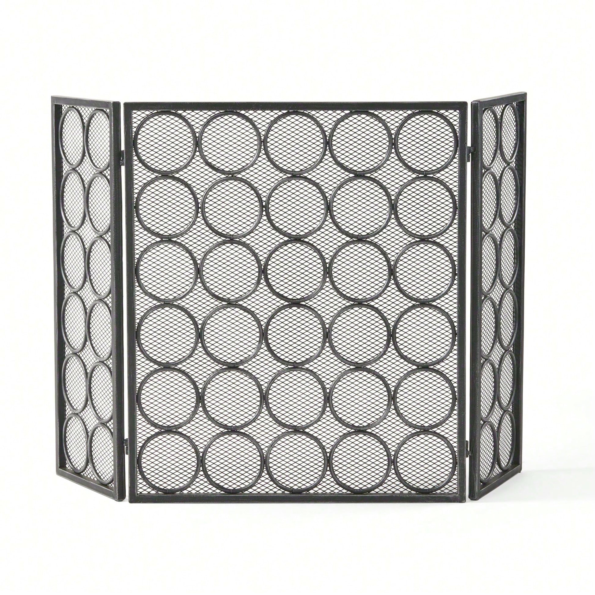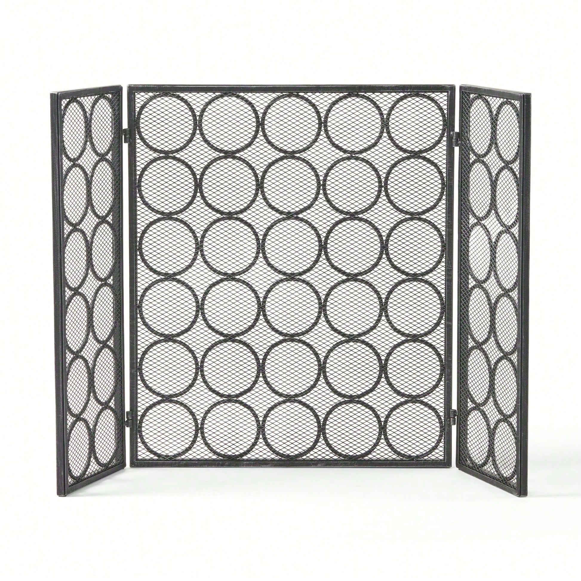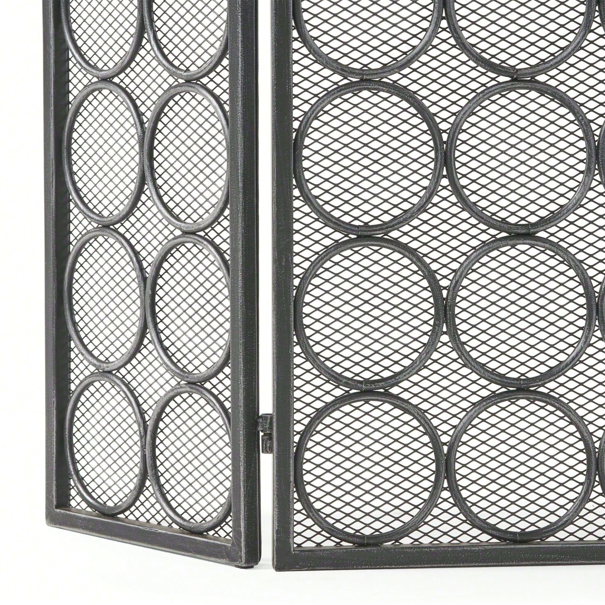 Cozy up next to your fireplace in the company of a loved one with this delightful fireplace screen. Offering a sleek accent to your living room or bedroom, it provides protection from hot embers or flying sparks with its fine mesh screen. The three-panel design is foldable for convenience and features an upbeat circular pattern across all panels, highlighting both functionality and style.