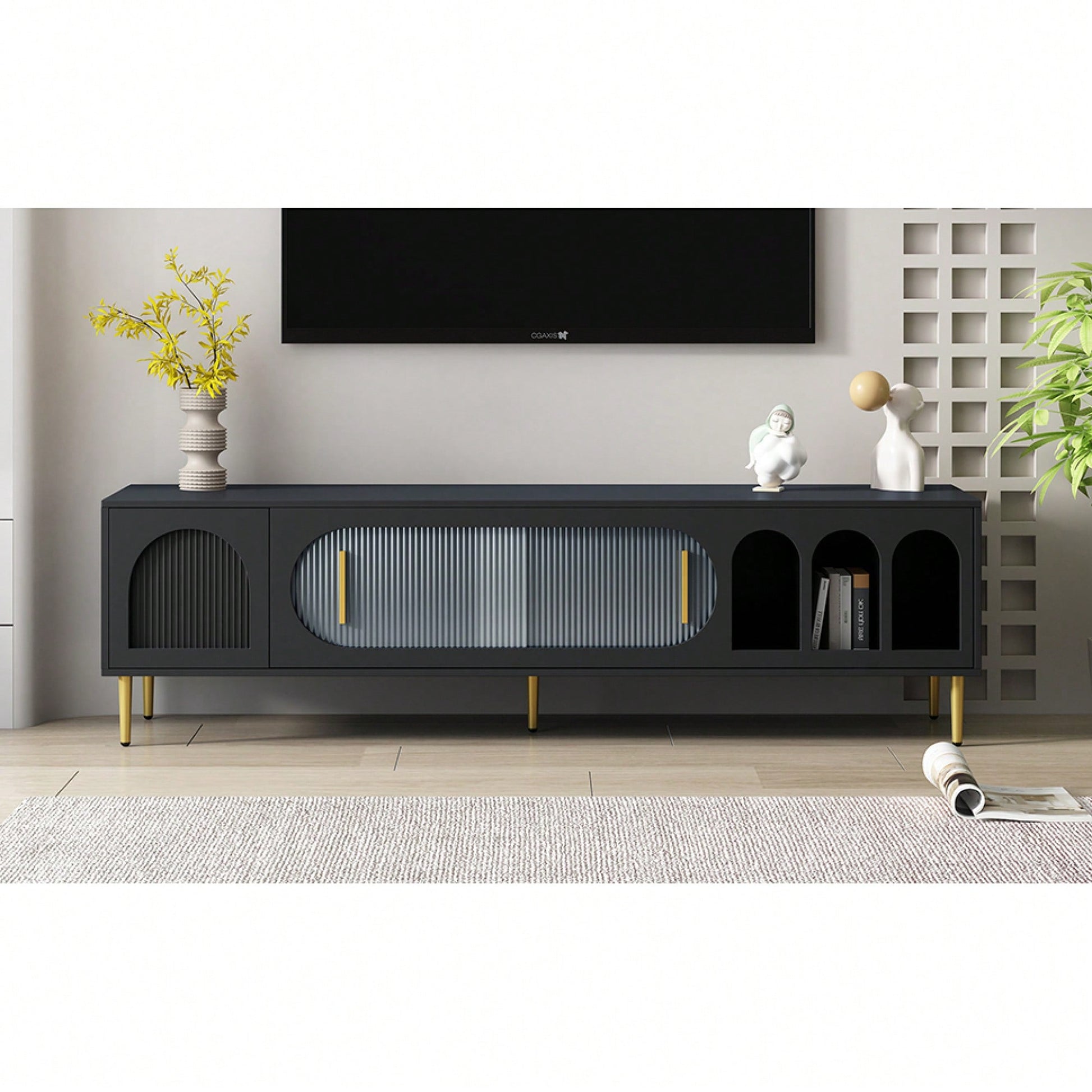 Modern TV Stand For Up To 70 Inch Television With 3 Shelves And 2 Cabinets, Stylish Entertainment Center Console Table For Living Room