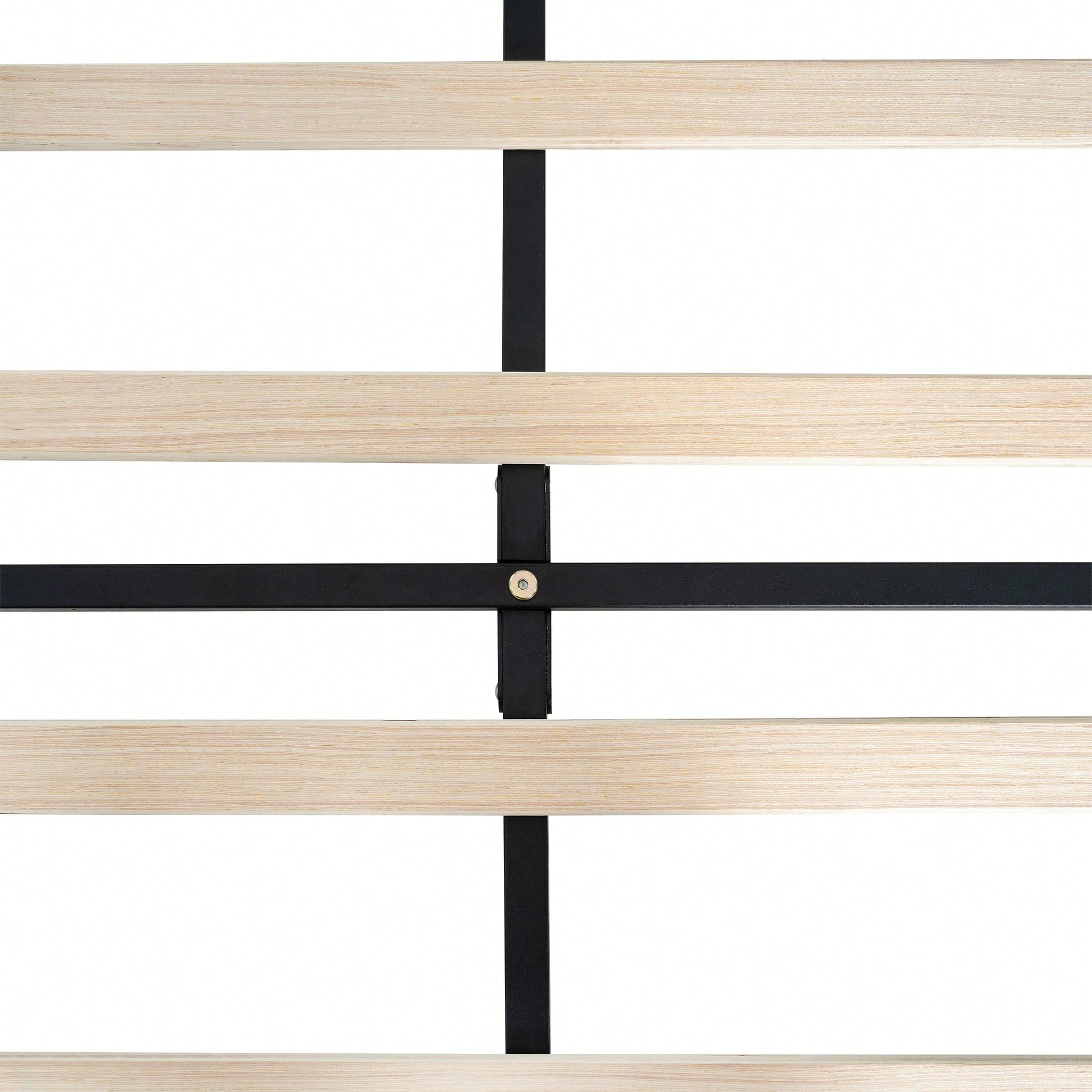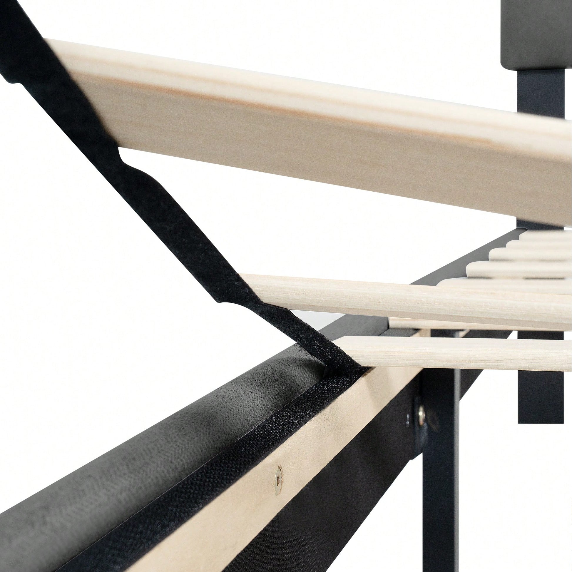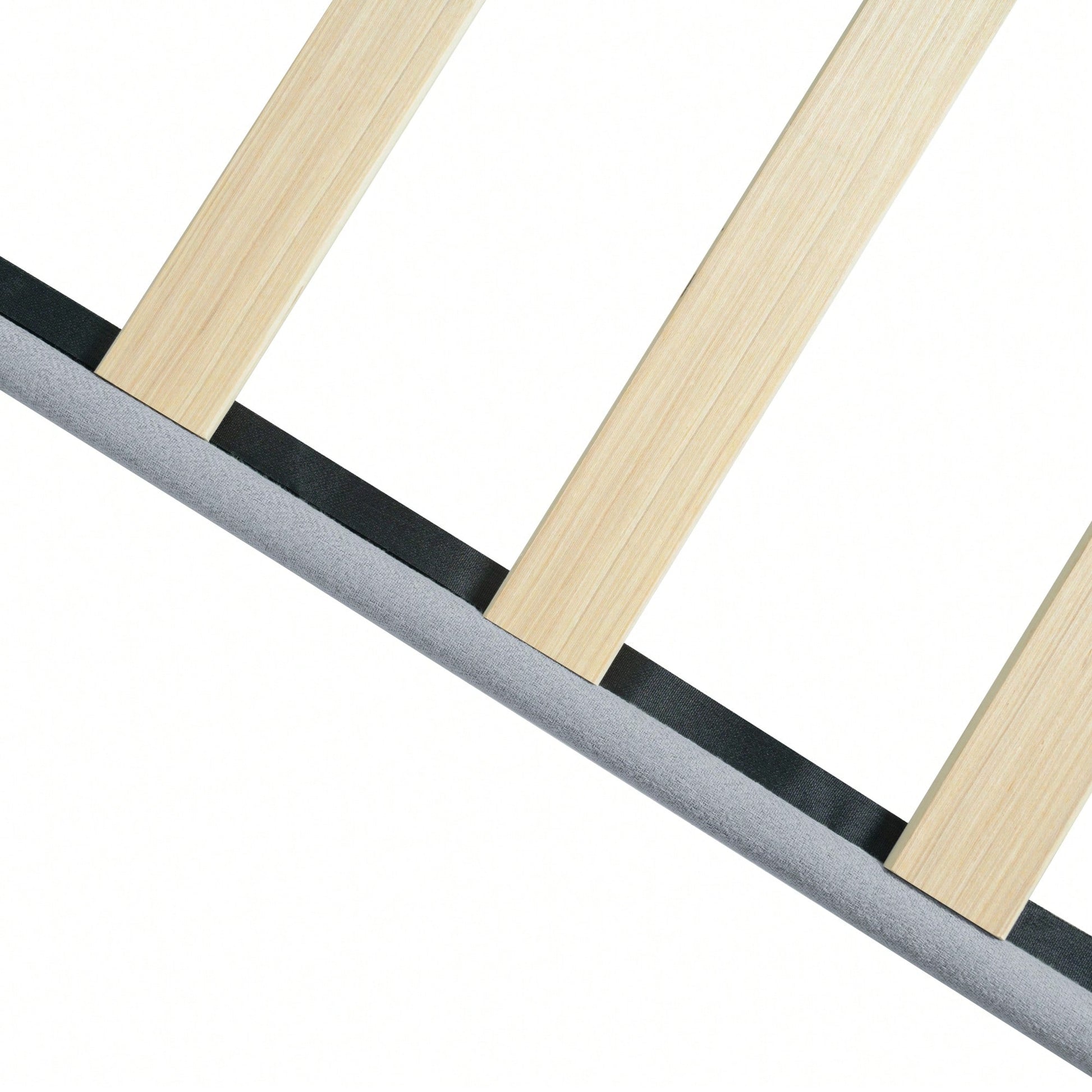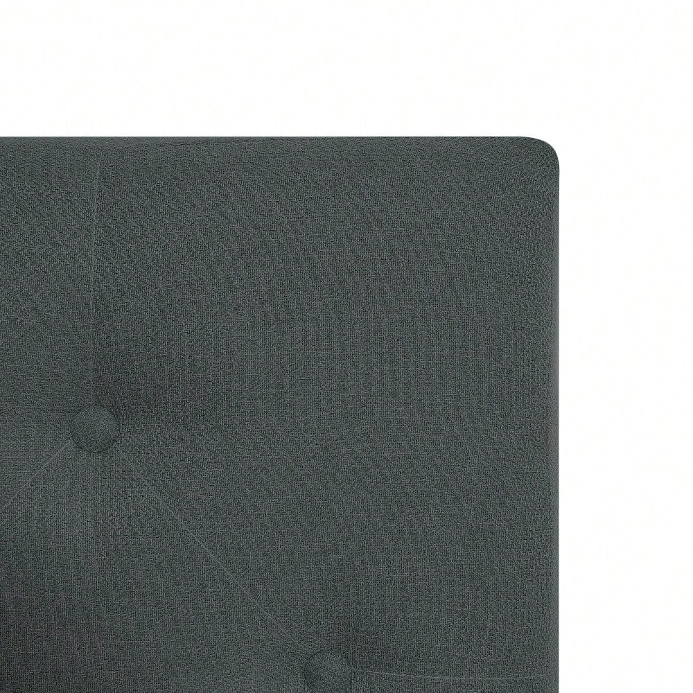 Enhance your bedroom's aesthetic with this modern upholstered platform bed frame. Featuring a chic button-tufted linen fabric headboard, it offers both style and comfort. The frame eliminates the need for a box spring, making it versatile for all mattress types. Its sturdy wood slat support structure ensures durability and stability, accommodating mattresses of 8 inches in thickness or greater. Assembly is straightforward, thanks to the included instructions, parts, and tools.