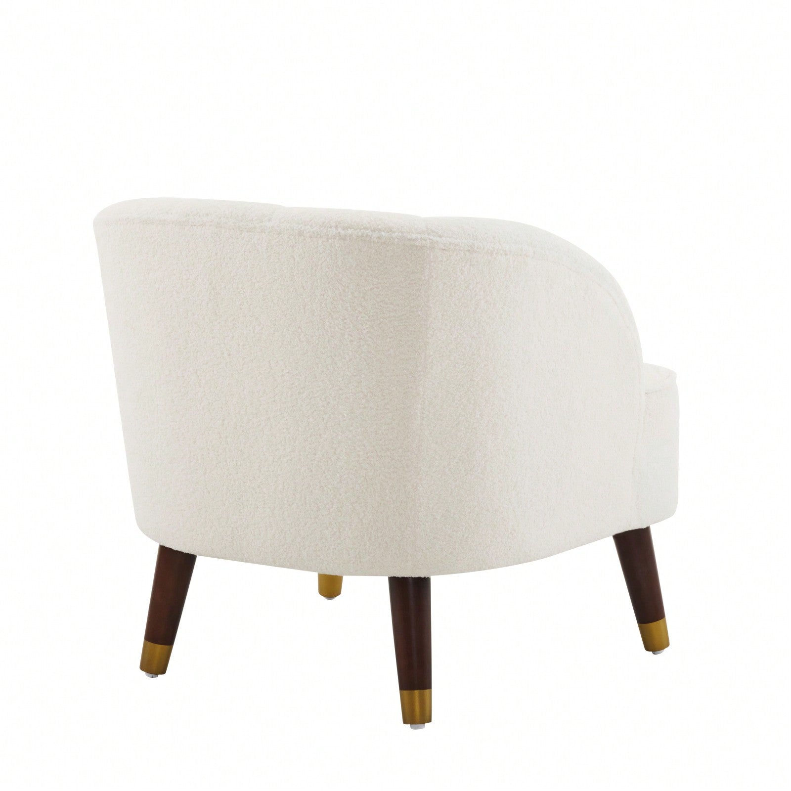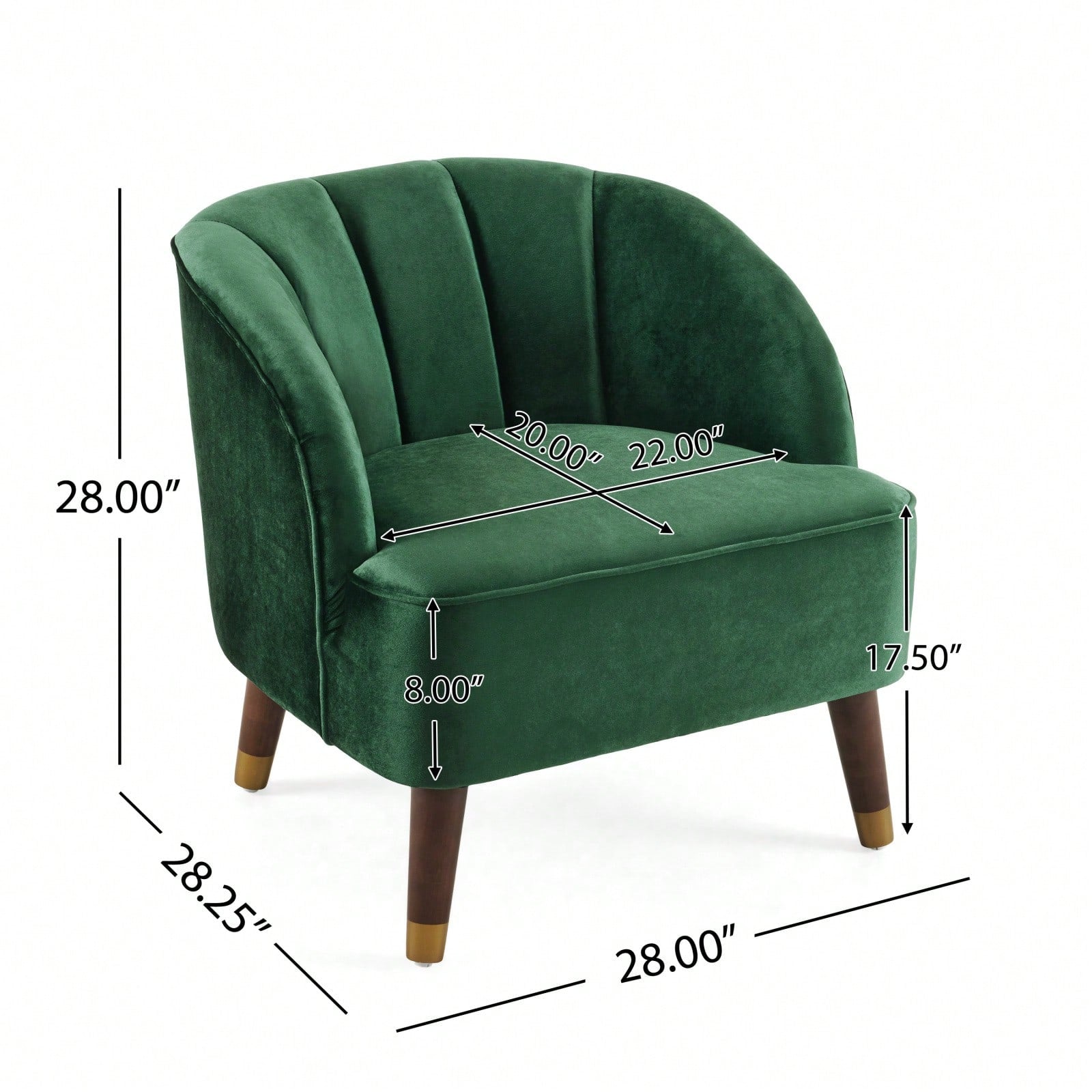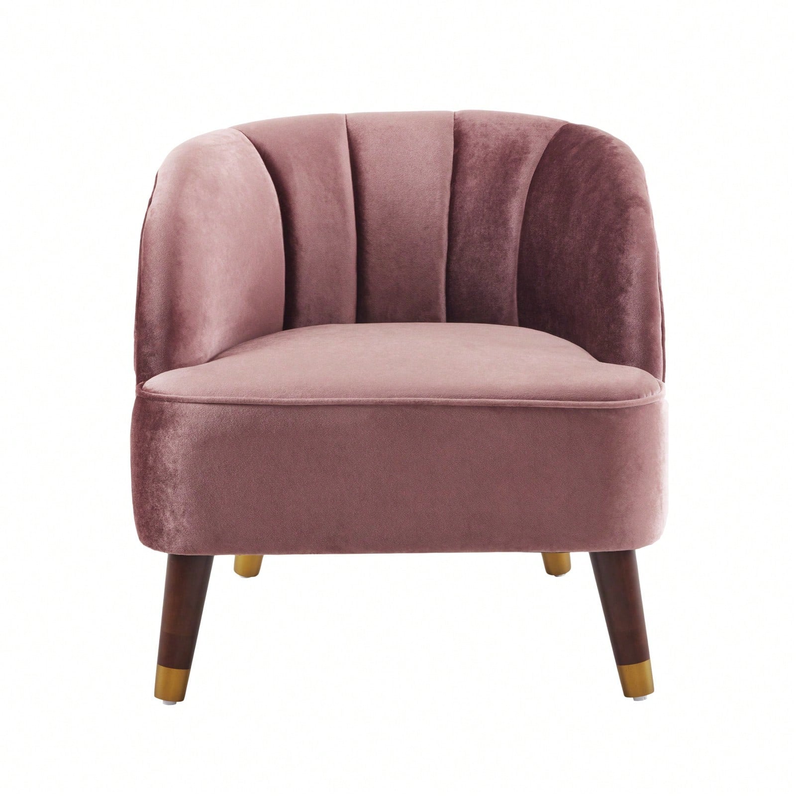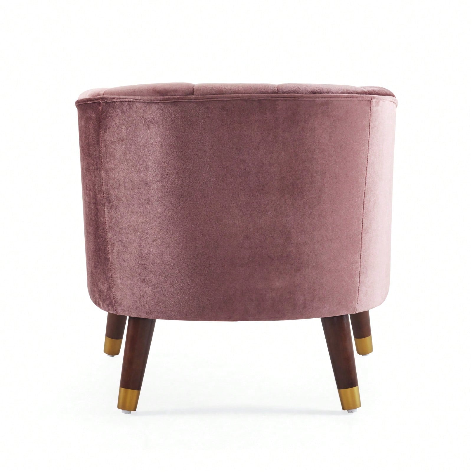 Modern Upholstered Accent Chair, Velvet Armchair With Sturdy Wooden Legs, Comfortable Tufted Barrel Chair For Living Room, Bedroom, Office