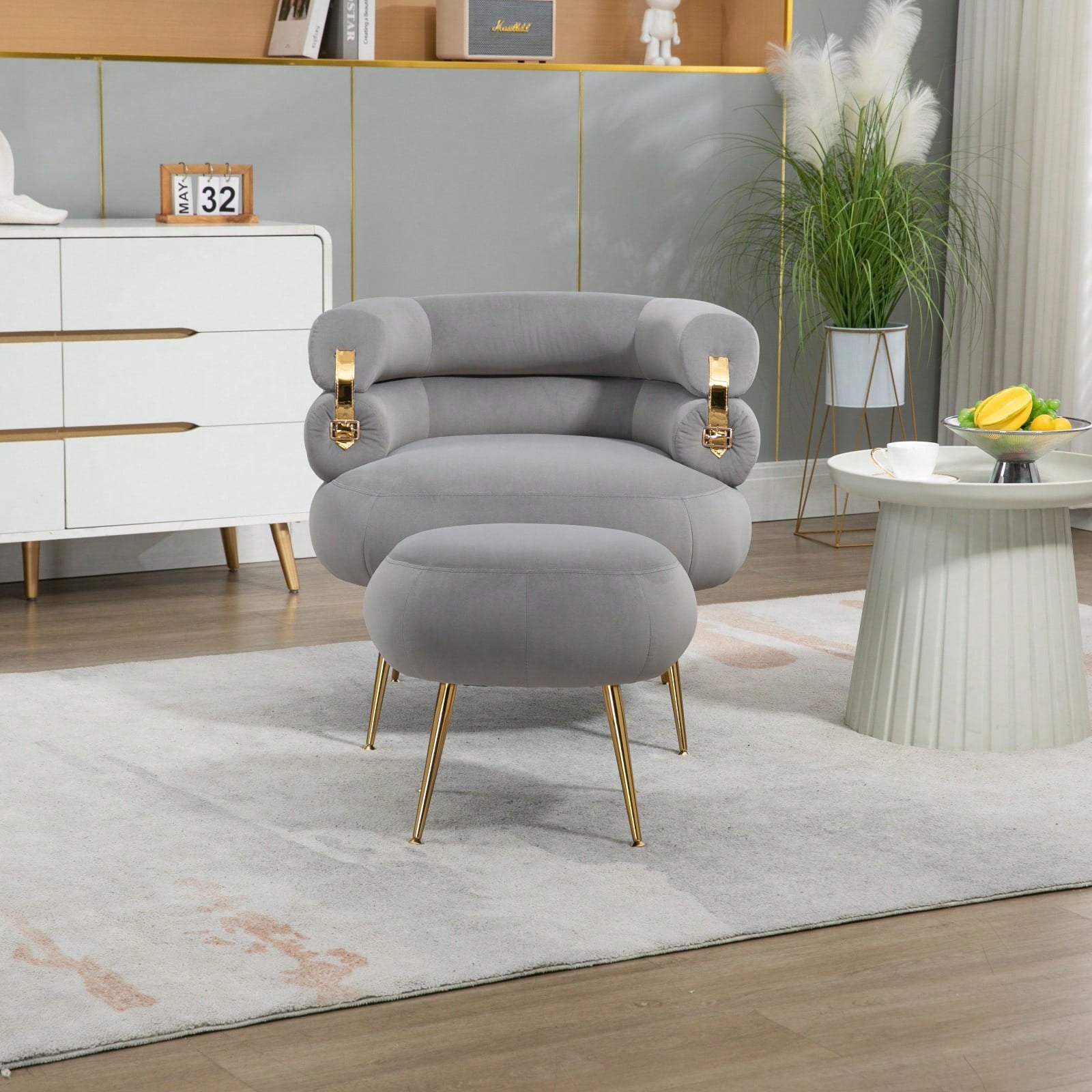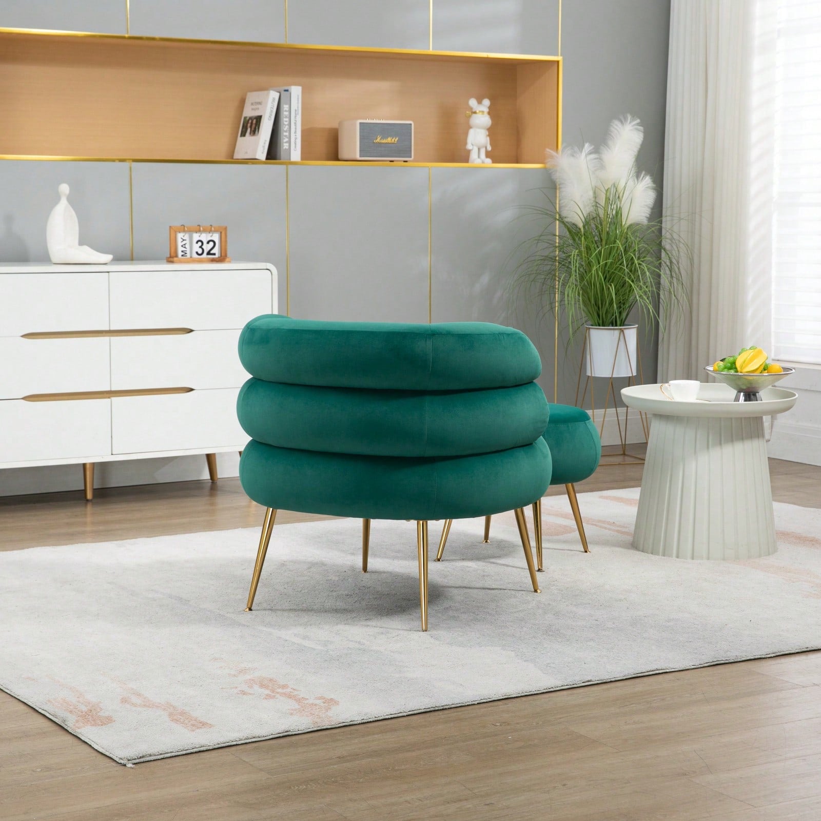 2.Modern Elegance: Elevate your home decor with this stylish accent chair featuring a tufted velvet design, sleek metal frame, and chic golden feet.