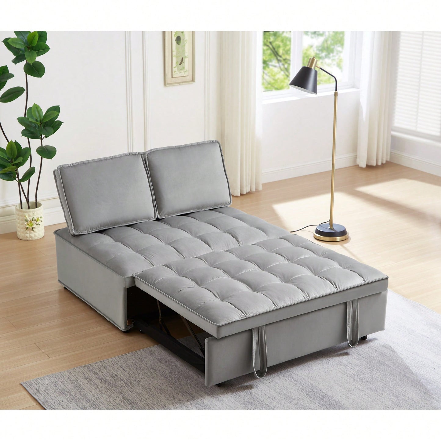 Modern Velvet Convertible Sofa Bed With Detachable Backrests For Living Room And Bedroom, Grey Double Seat Design