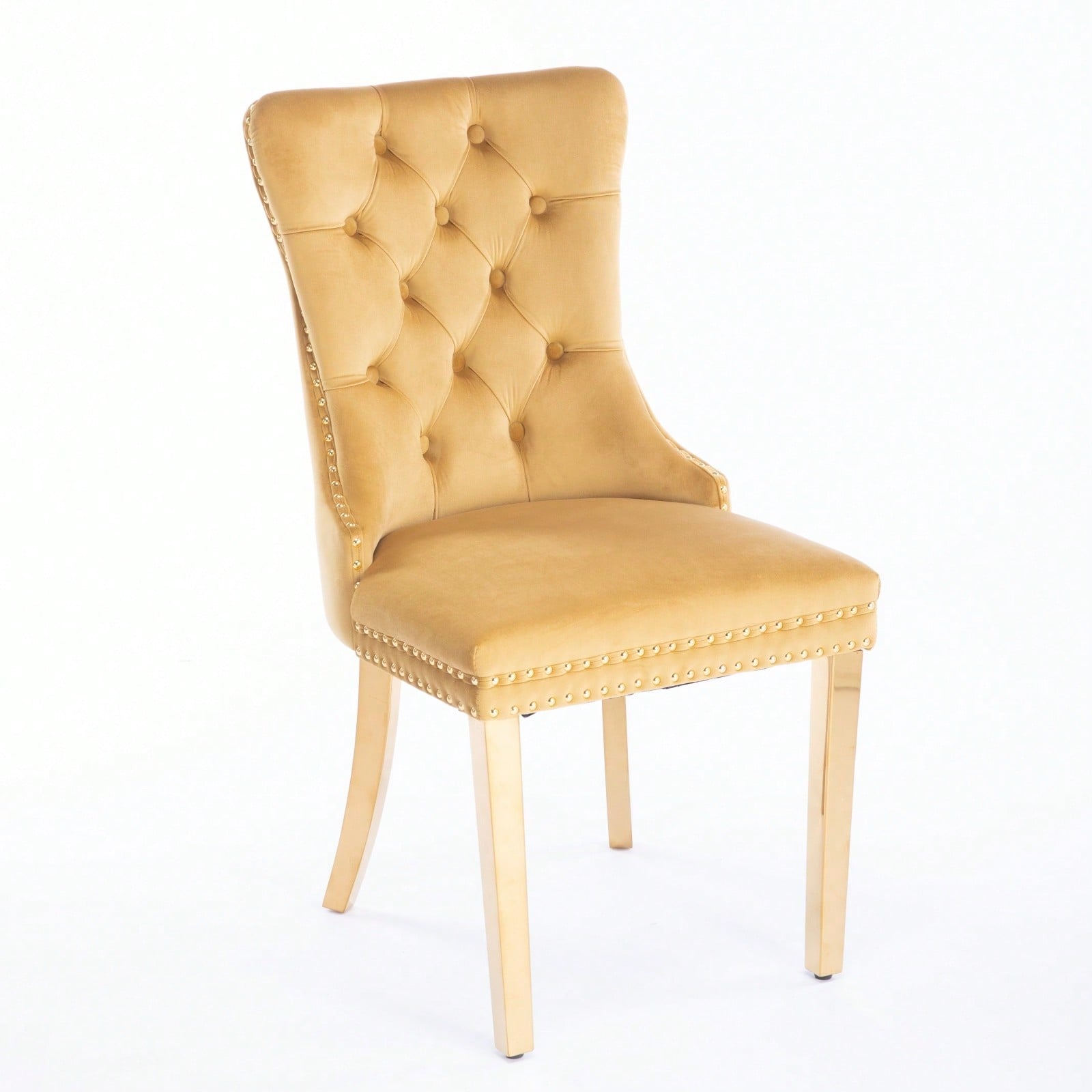 Luxury Velvet Dining Chairs Set of 2 Tufted Back Solid Wood Frame Gold Legs Nailhead Trim High Density Foam