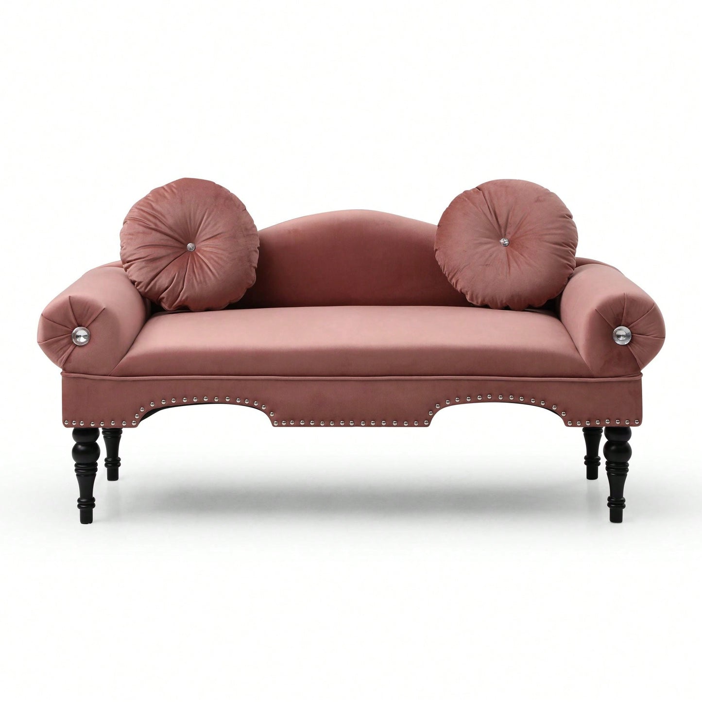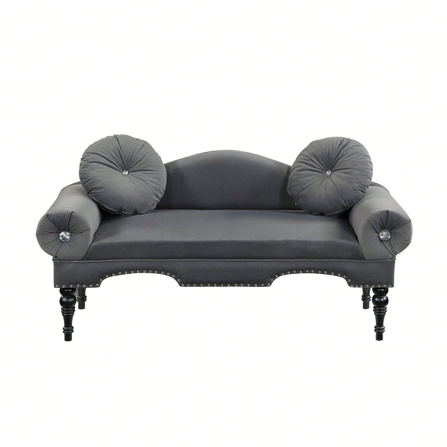 Velvet Upholstered Loveseat Sofa with Nail Head Trim and Wood Legs 2 Seater Couch for Living Room Bedroom with 2 Pillows