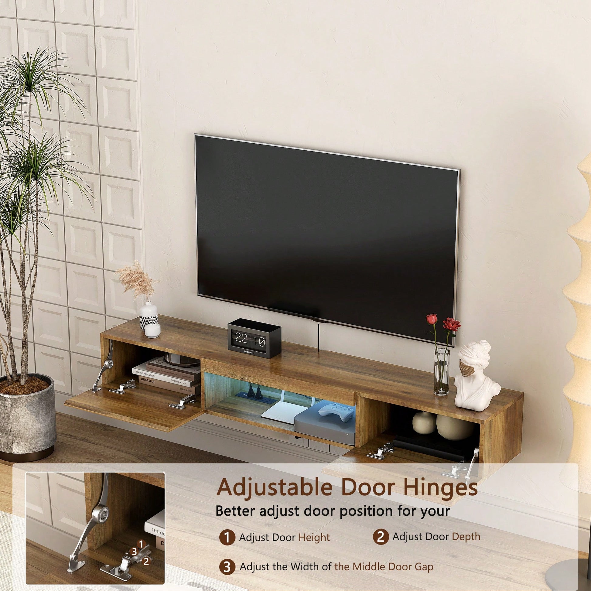 Modern Wall Mounted Floating TV Stand With LED Lights And Power Outlet For 65 Inch TVs - Brown