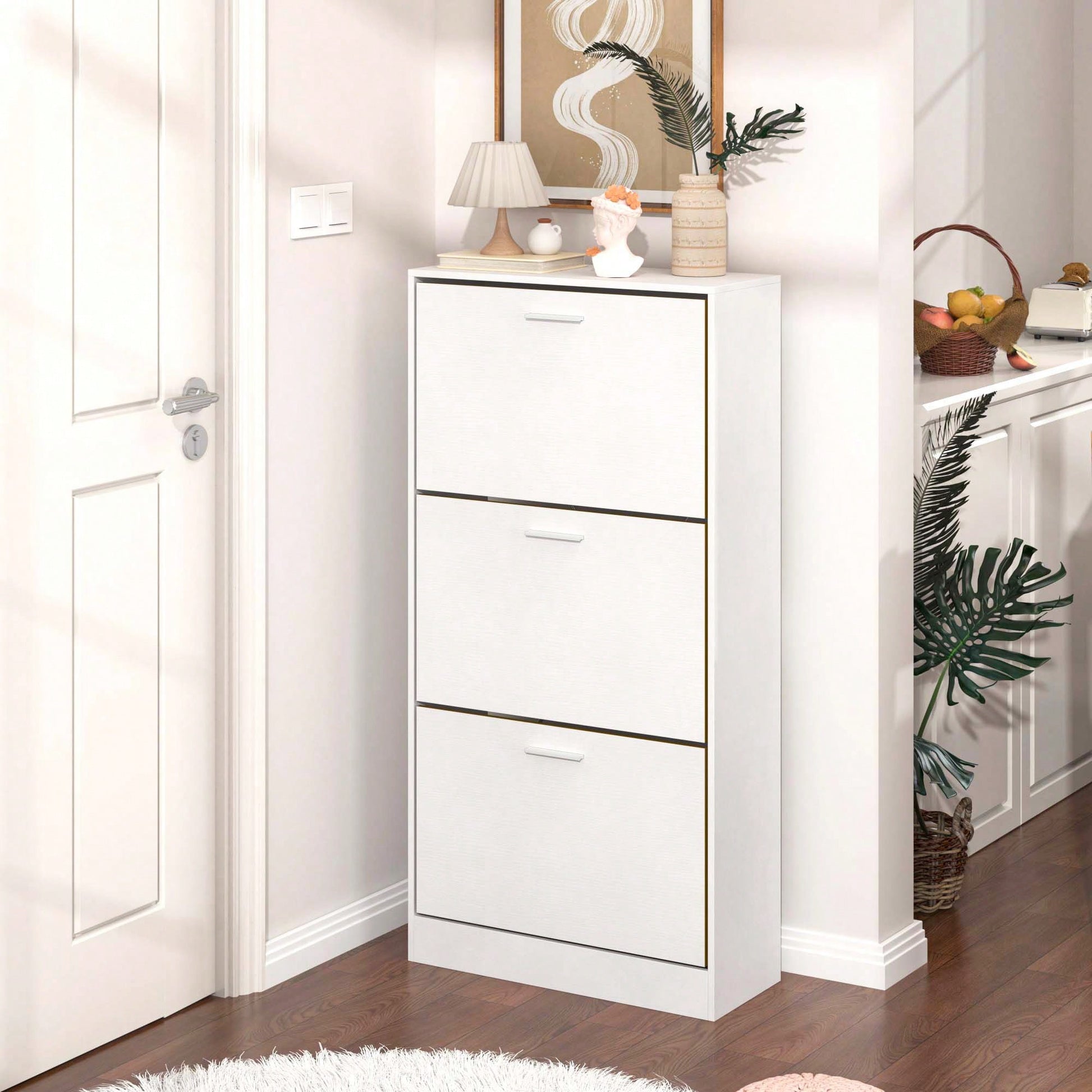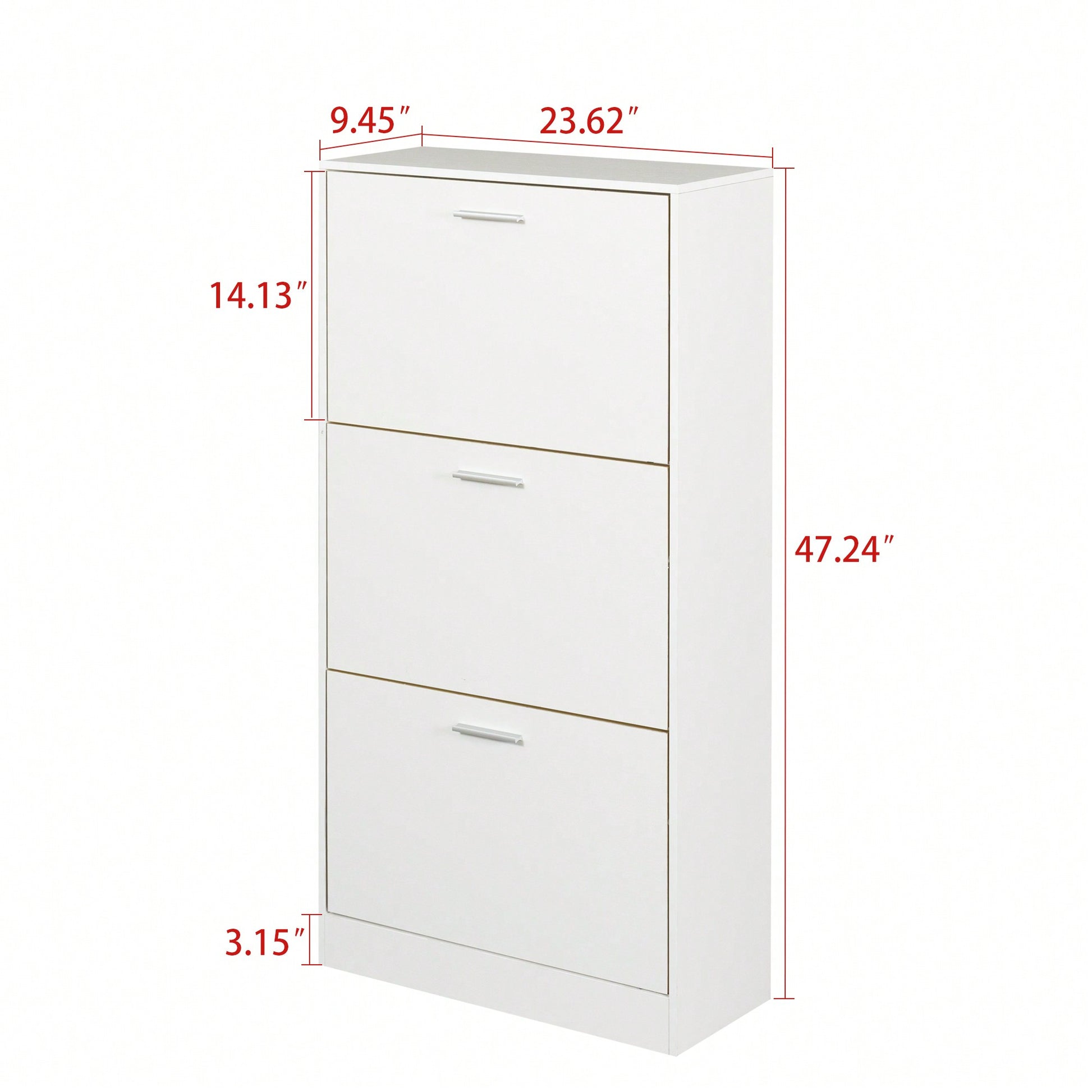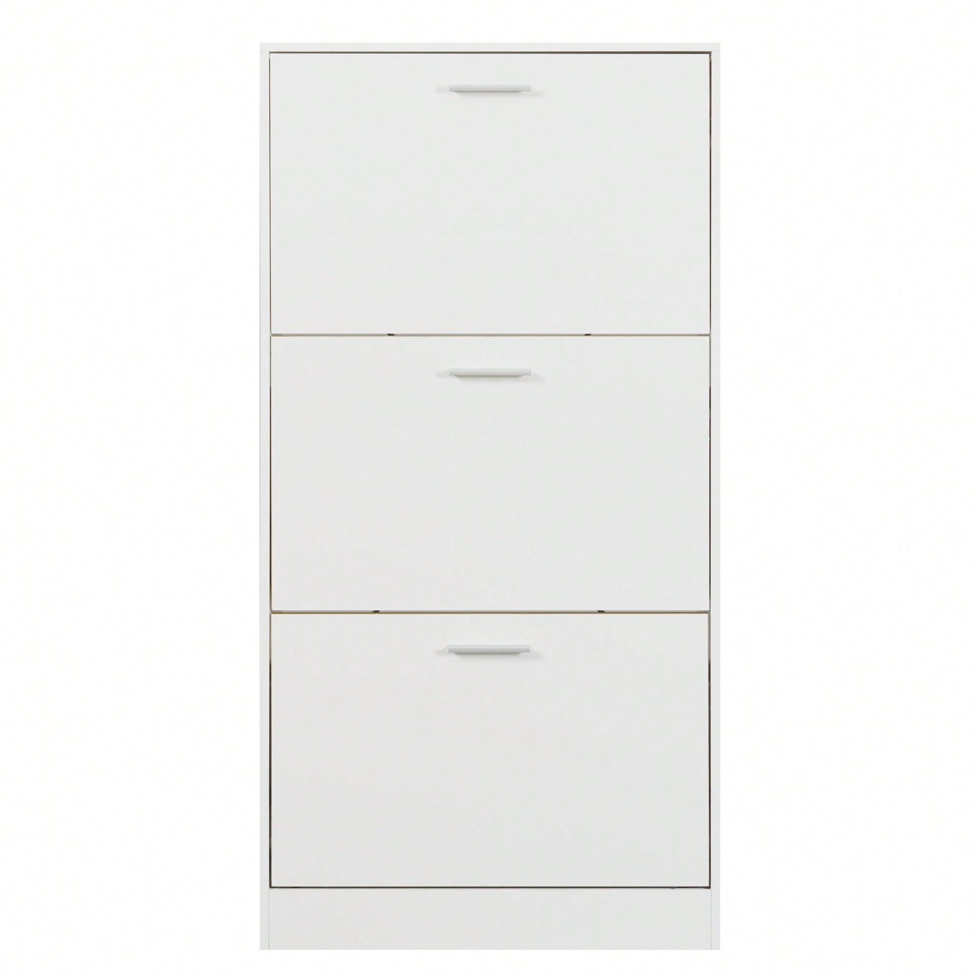 This shoe cabinet features a modern and minimalist design, perfect for any home style. With three upside-down drawers, it provides hidden storage for shoes, helping to keep your entryway, hallway, or living room tidy and organized. The cabinet fits seamlessly into small spaces, ensuring your shoes remain dust-free and protected from pets and bugs. Made from durable materials, this freestanding shoe cabinet is designed for longevity and ease of use, making it an ideal addition to your home.