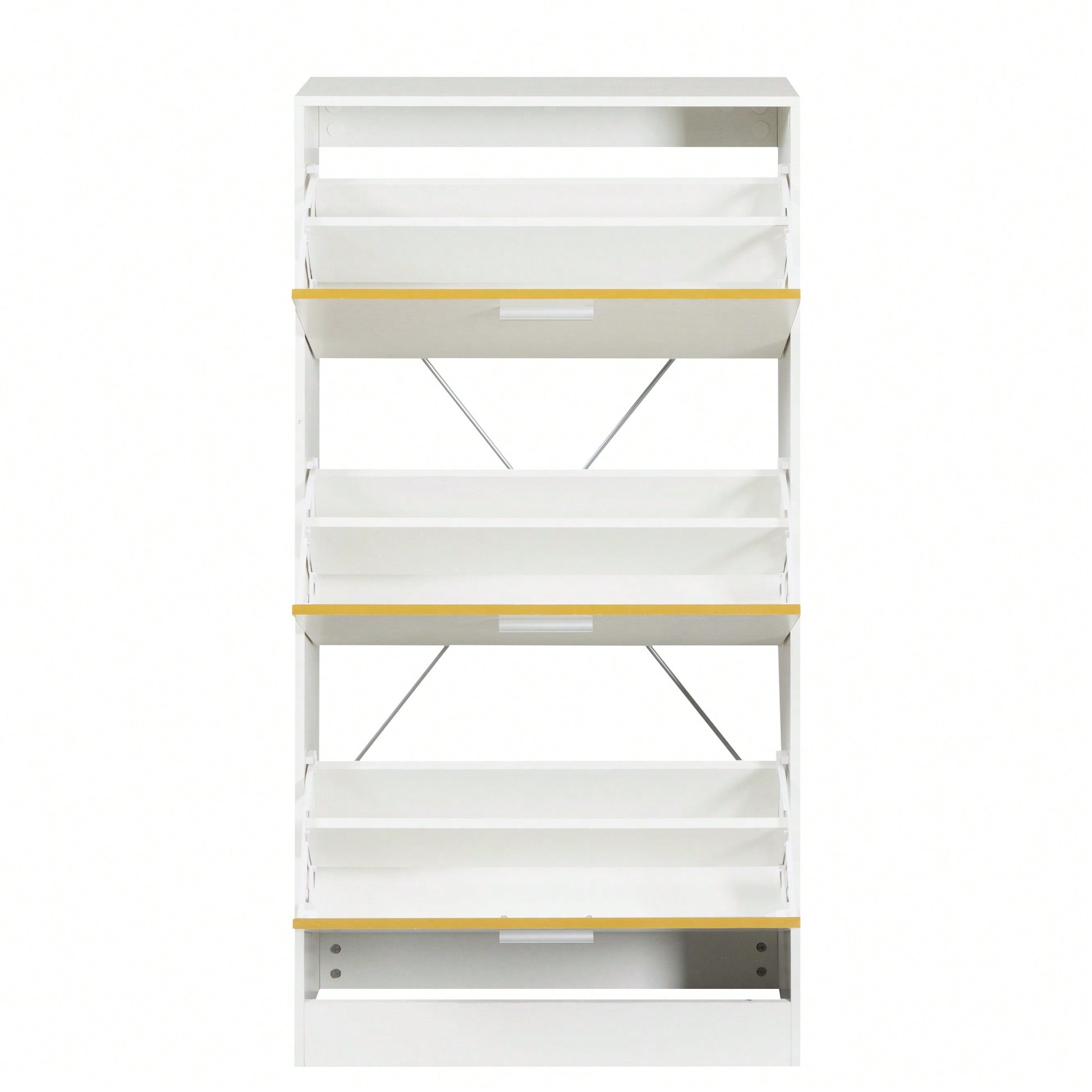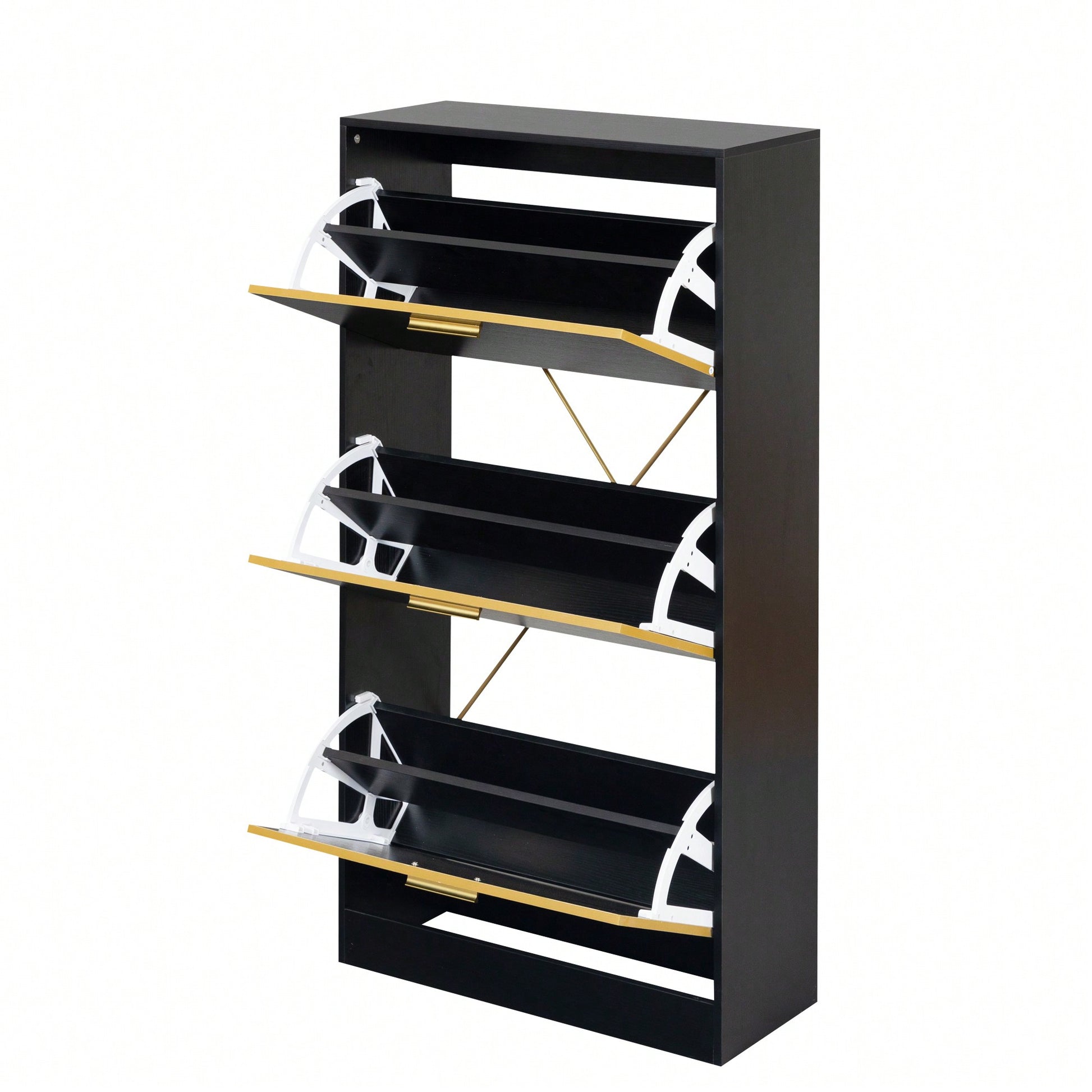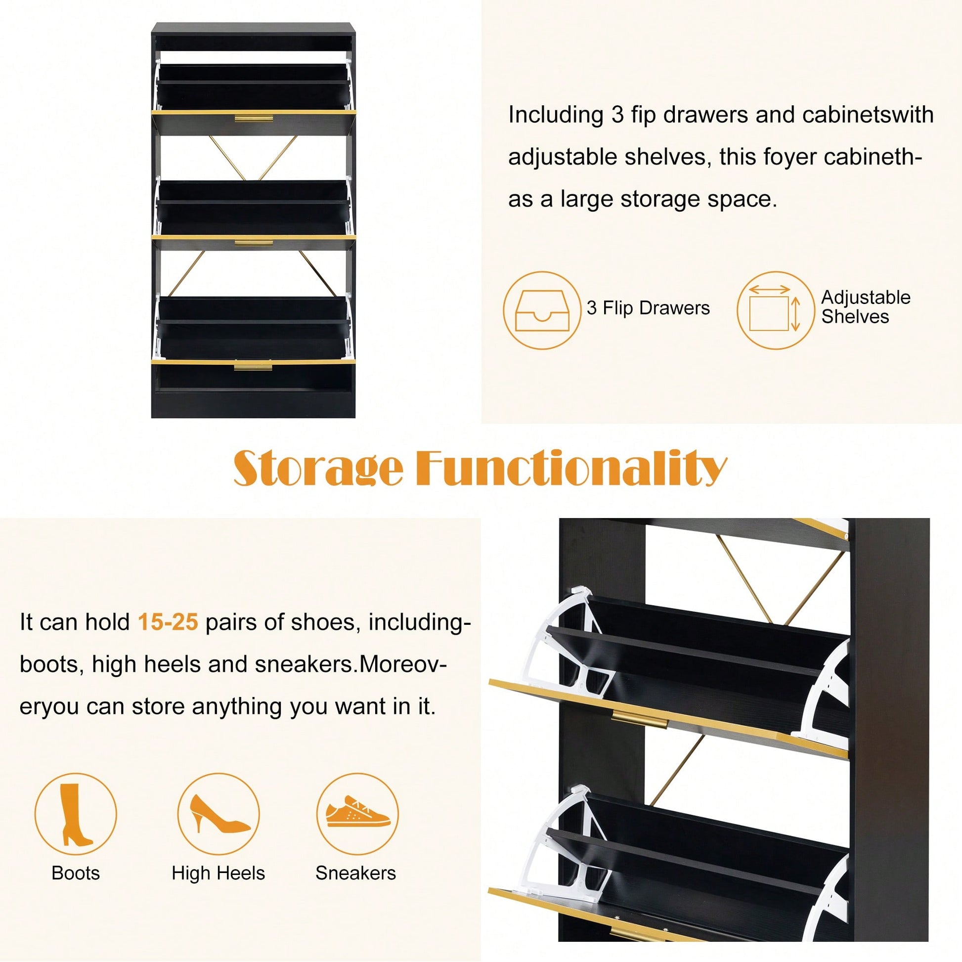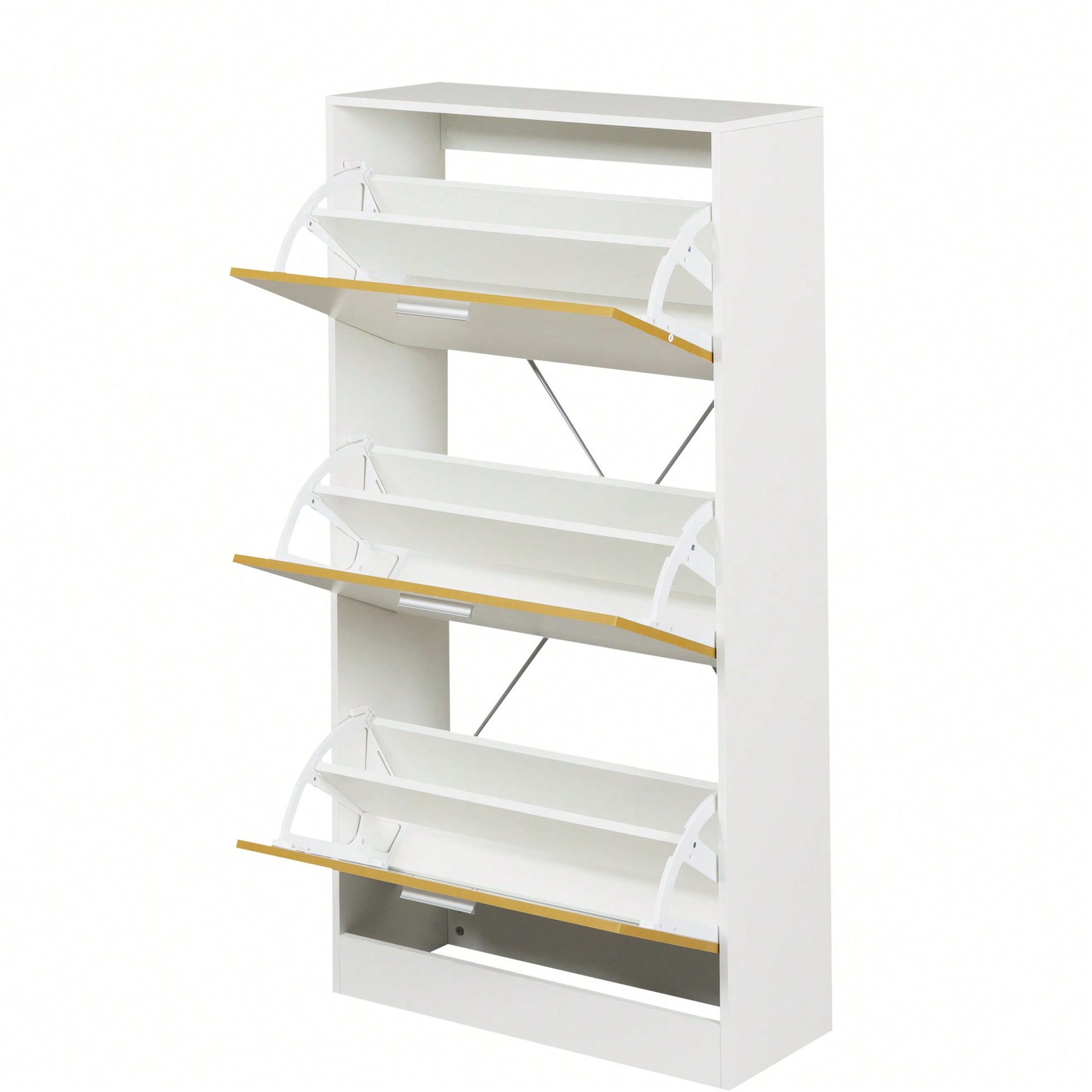 This shoe cabinet features a modern and minimalist design, perfect for any home style. With three upside-down drawers, it provides hidden storage for shoes, helping to keep your entryway, hallway, or living room tidy and organized. The cabinet fits seamlessly into small spaces, ensuring your shoes remain dust-free and protected from pets and bugs. Made from durable materials, this freestanding shoe cabinet is designed for longevity and ease of use, making it an ideal addition to your home.