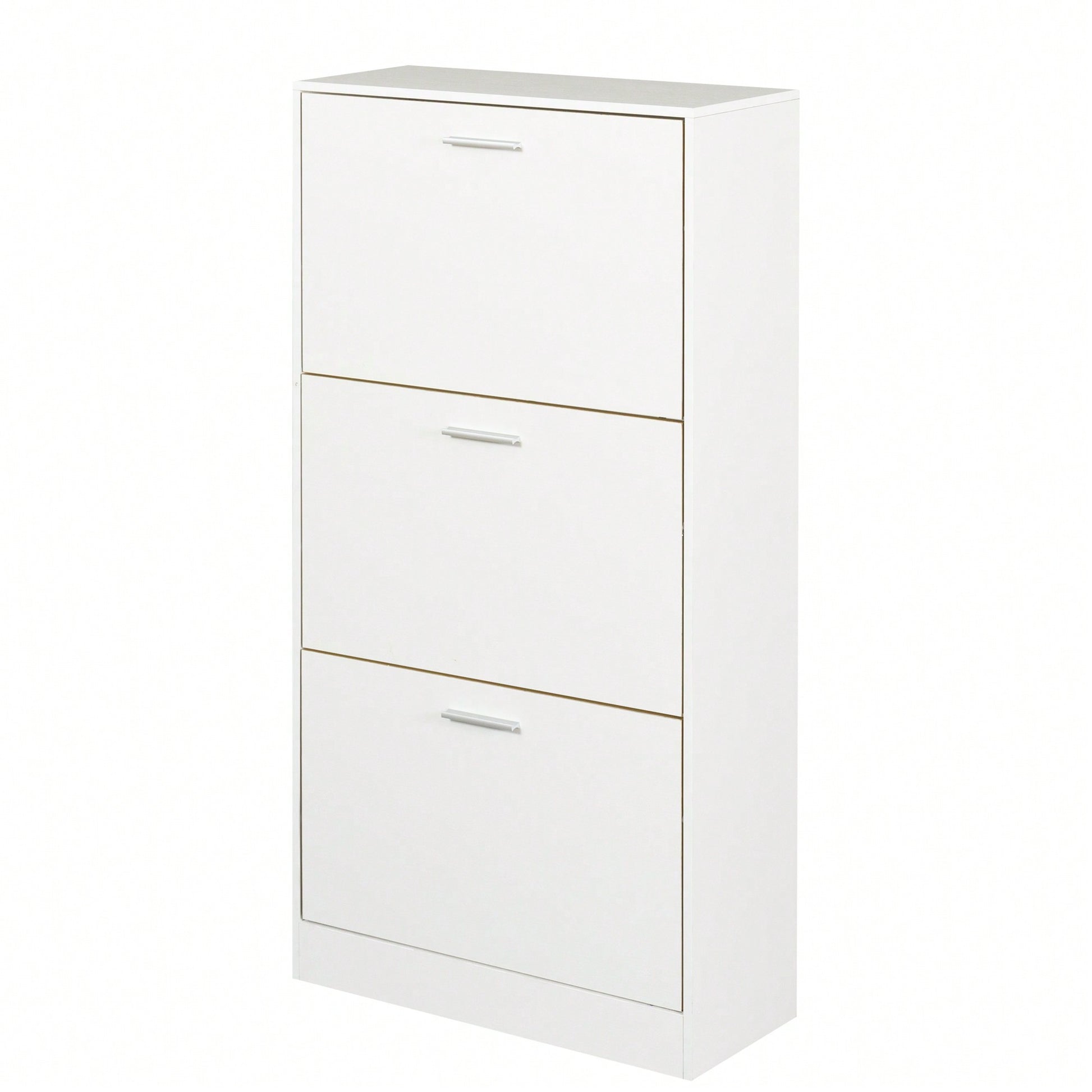Modern White Slender Shoe Cabinet With 3 Upside Down Drawers For Corridor Bedroom Or Living Room Entrance