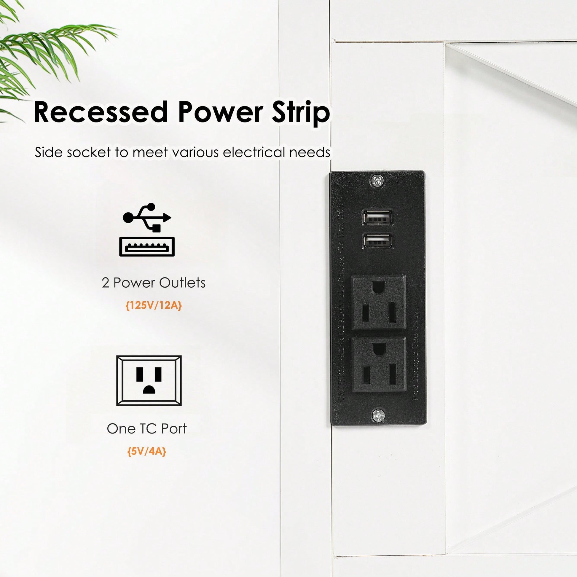 This multi-functional lifting coffee table combines style and utility, featuring a classic barn door design complemented by metal corner accents for a retro touch. Its square shape, original wood grain, and vintage white finish allow it to blend seamlessly with various interior styles, making it a versatile addition to any living space. The innovative lift-top mechanism enables smooth and quiet operation, transforming the table into a workstation, dining area, or gaming space while you remain comfortably seated. Designed with safety in mind, it is child-friendly to prevent finger injuries. Additionally, the table is equipped with 2 USB ports and 2 power outlets, providing convenient charging options for your devices. Crafted from sturdy materials, this coffee table ensures long-lasting stability and durability.