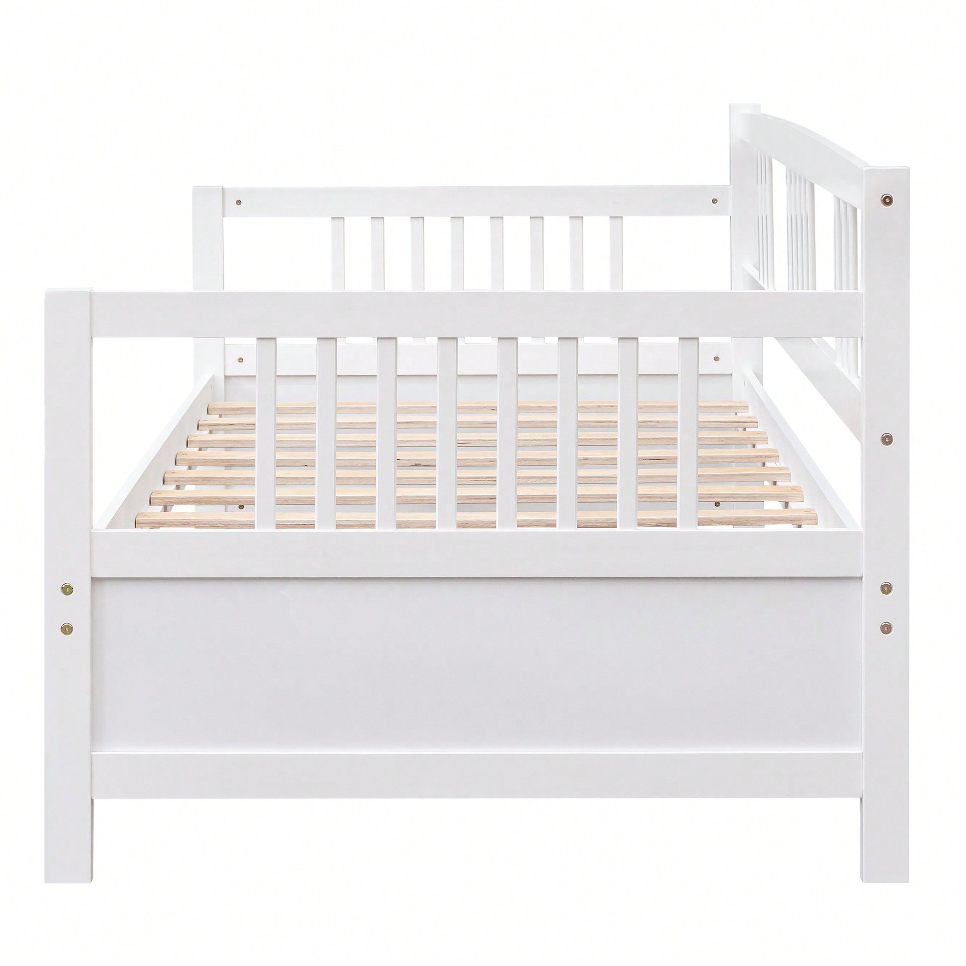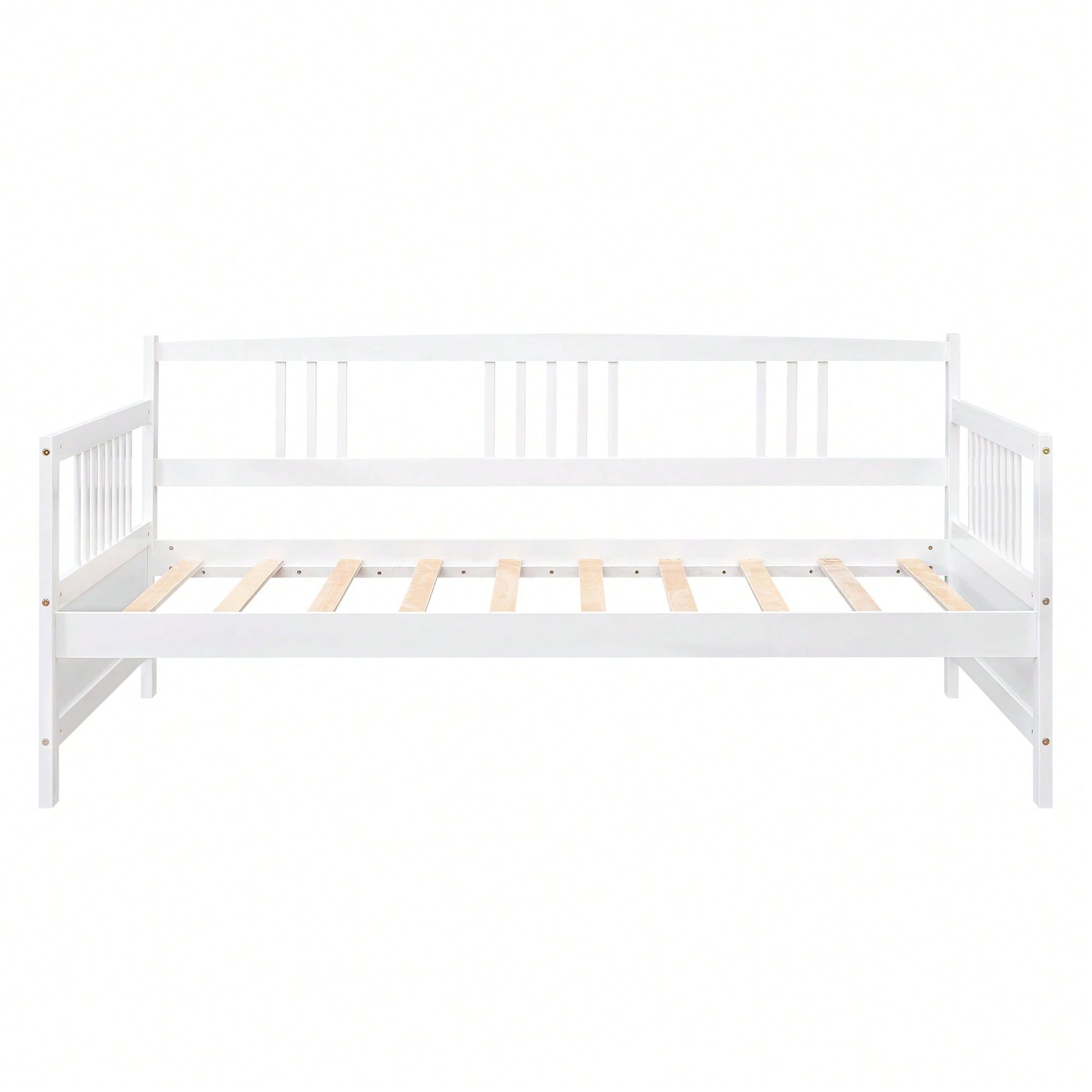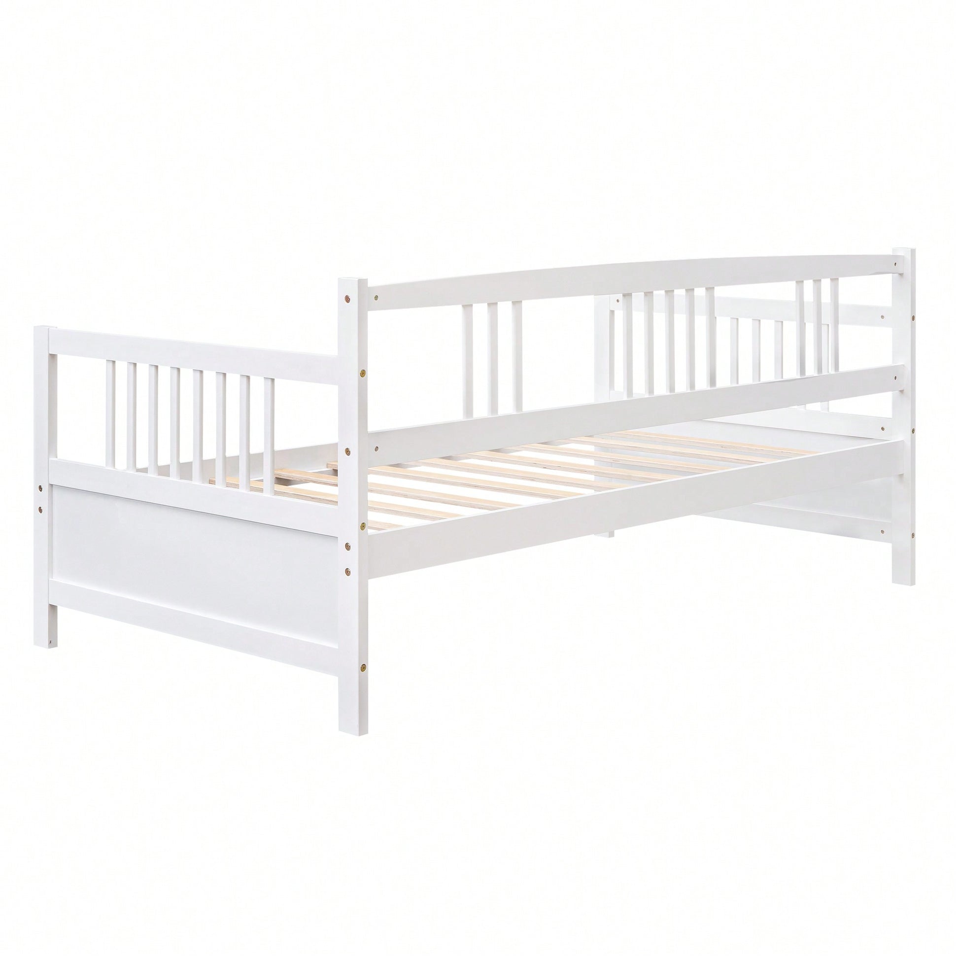 **Key Features:** - Elegant design with wood slats and a classic vintage look - Sturdy construction with 100% friendly wood slats - Space-saving design with ample room underneath for storage - Multifunctional use as a bed or stylish sofa - Suitable for kids and adults, supporting up to 300 lbs **Product Description:** This modern solid wood daybed combines elegance and functionality, making it a perfect addition to any living space. With its classic and vintage design, it features a three-side rail for added safety and style. The daybed is constructed from solid wood with 10 friendly slats, ensuring durability and strength. It provides a comfortable sleeping area for both kids and adults, accommodating up to 300 lbs. The space underneath the frame allows for convenient storage solutions, helping you maintain an organized lifestyle. Whether you need a cozy bed for sleeping or a chic sofa for lounging, this versatile daybed meets all your needs. **Specifications:** - Overall Product Dimensions: 78.2'' x 42.3'' x 35.4'' (L x W x H) - Mattress: Not included - Assembly: Some assembly required; clear instructions and tools provided