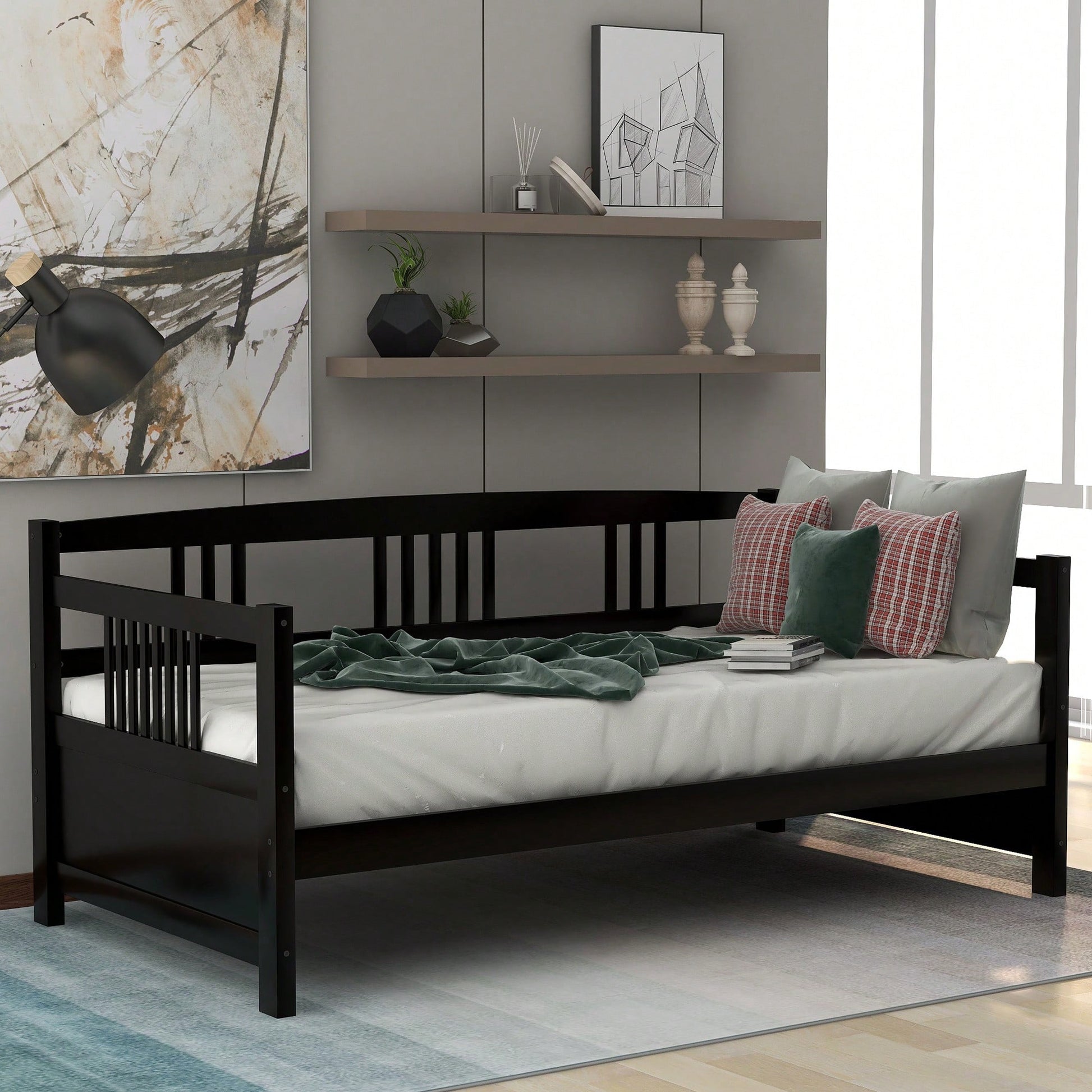 Multifunctional Twin Size Espresso Solid Wood Daybed For Stylish Space Saving Solutions