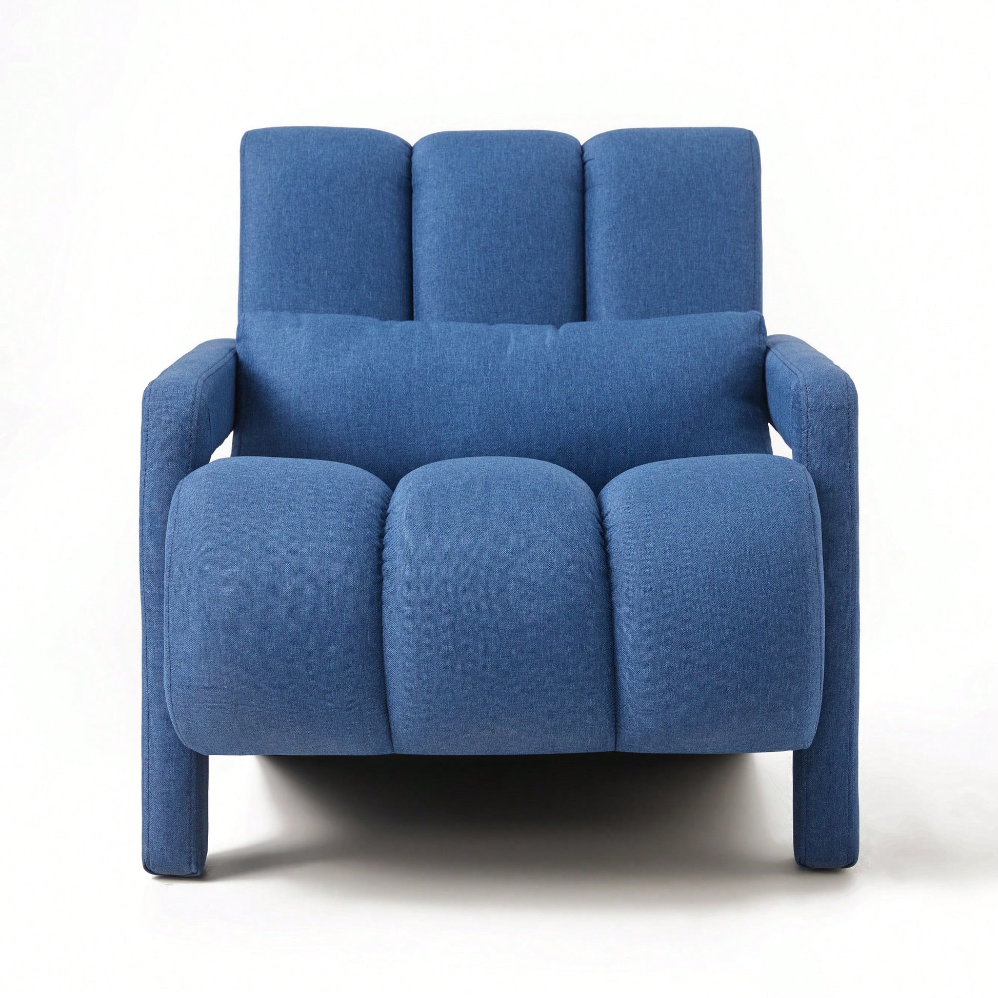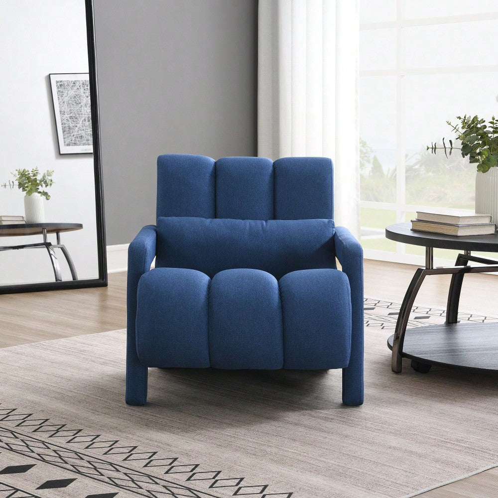 Navy Blue Modern Upholstered Accent Chair With Pillow - Comfortable Linen Furniture For Living Room And Bedroom