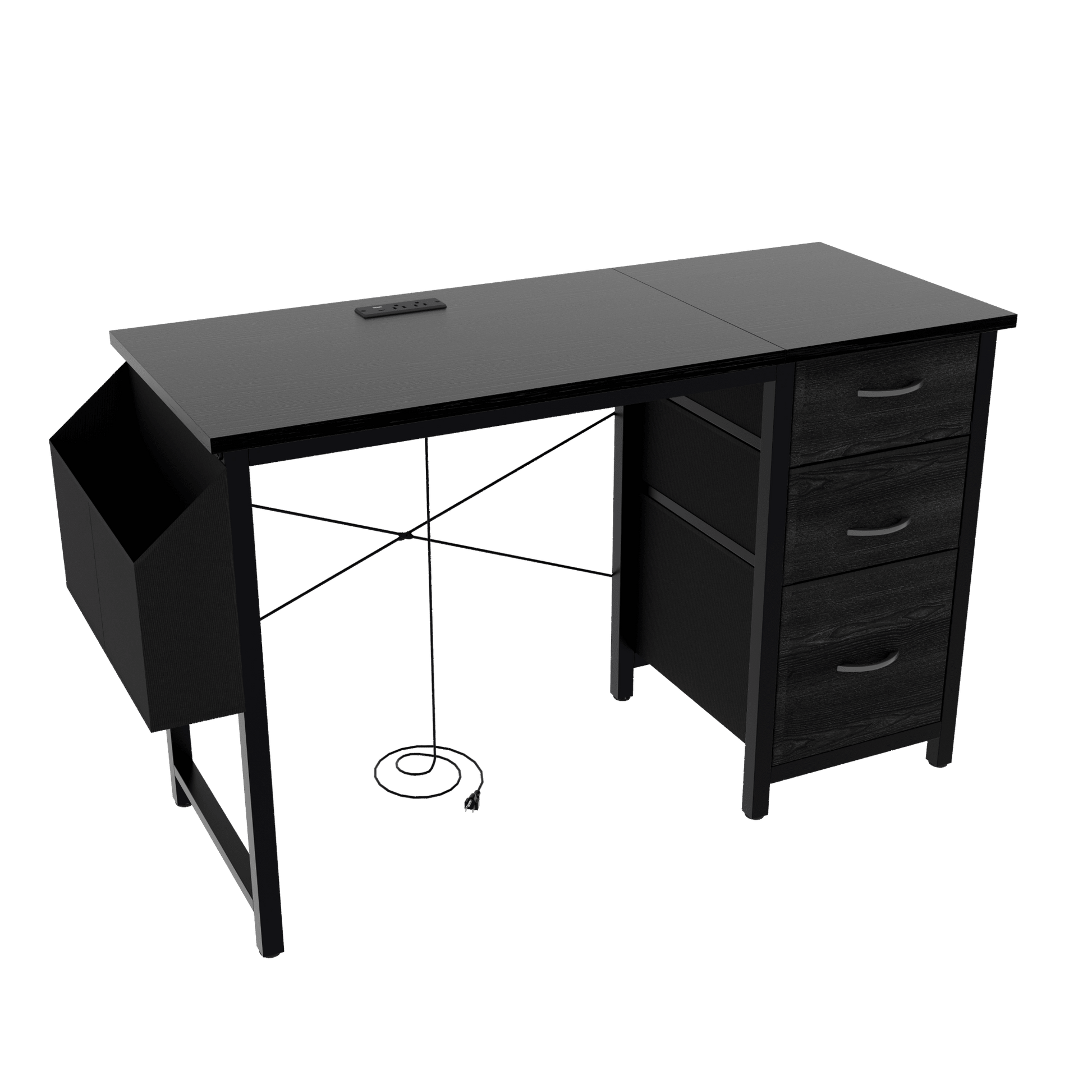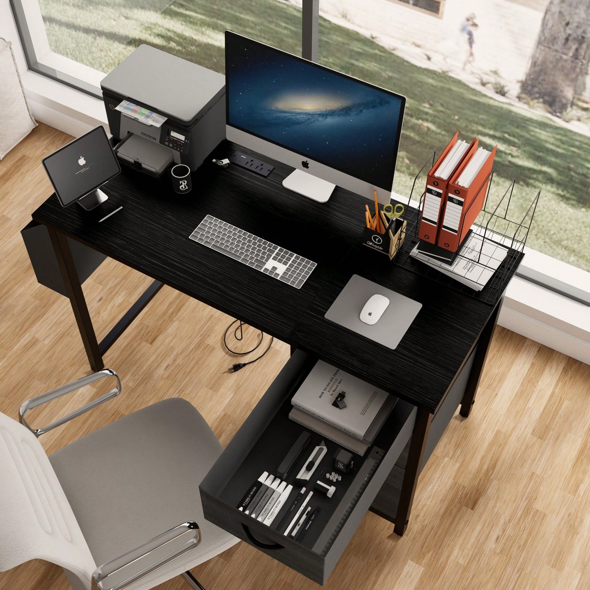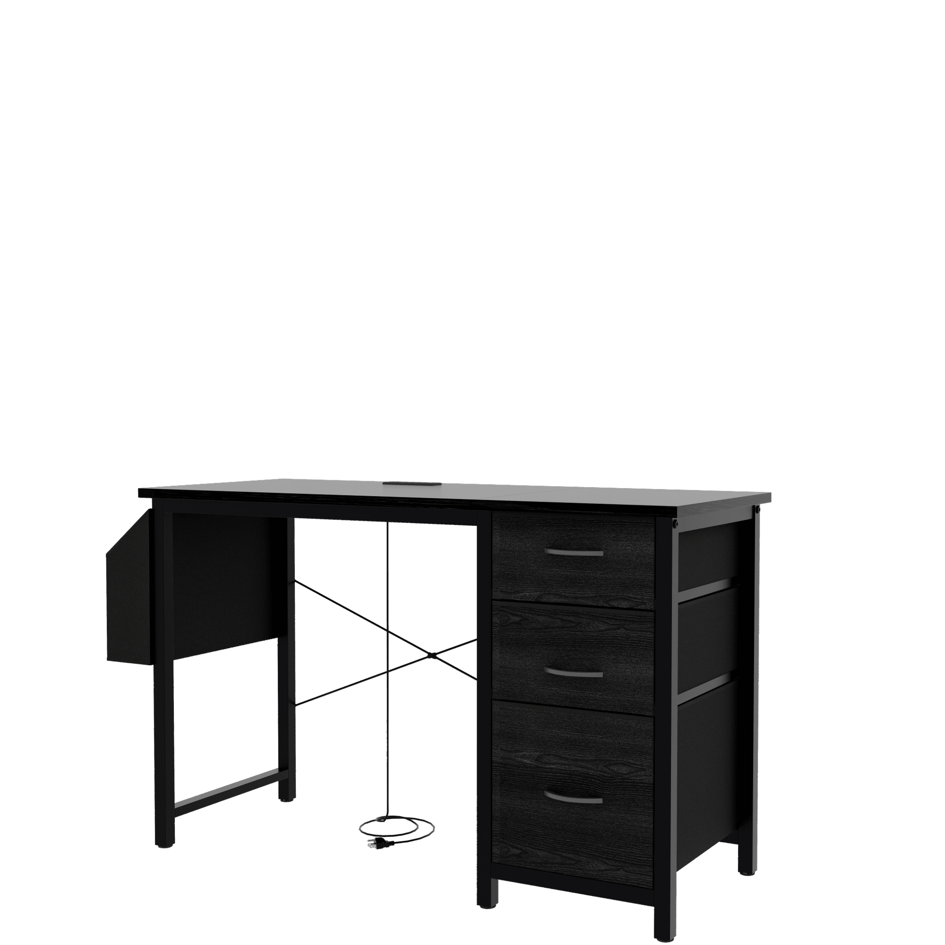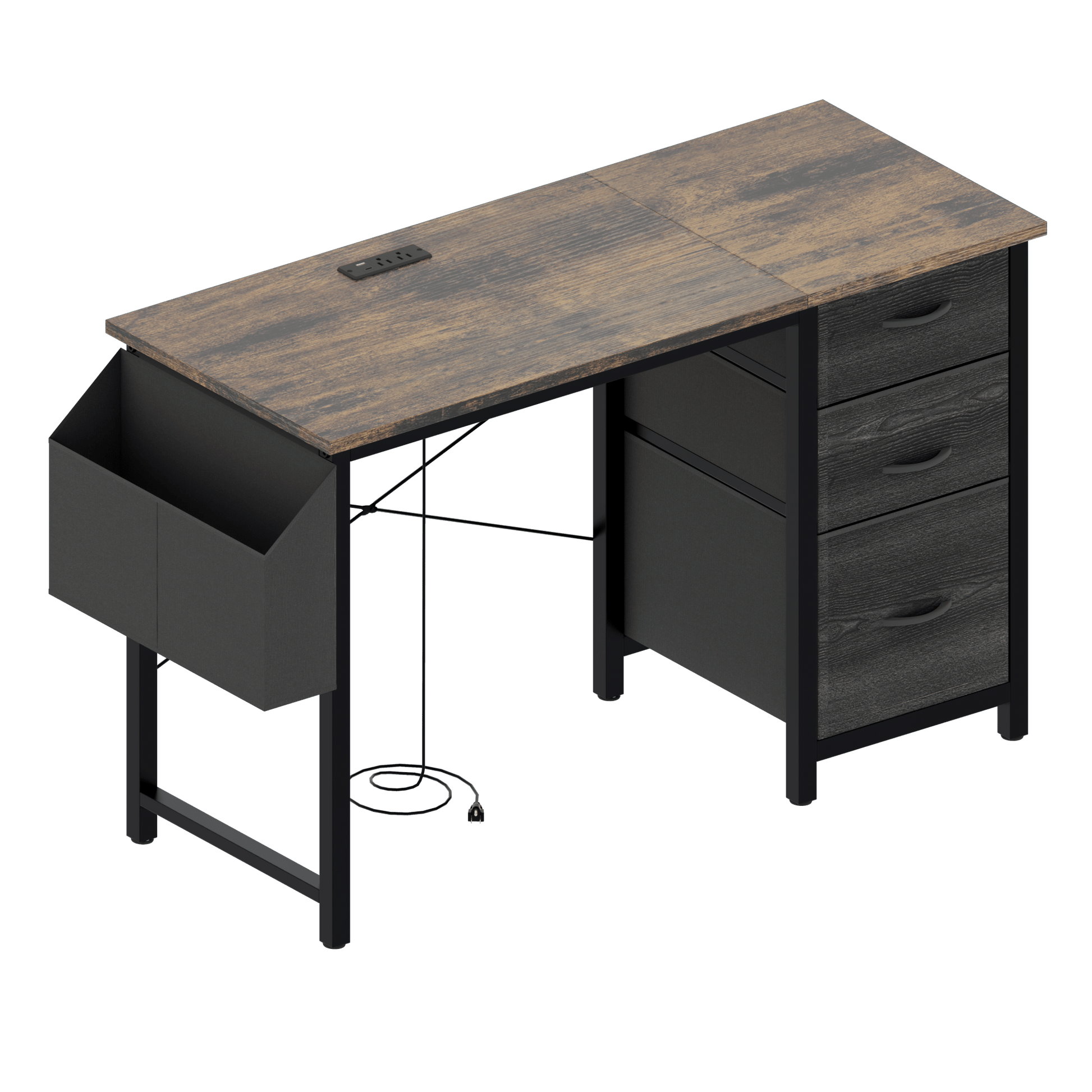 Office Desk With Power Outlet, 3 Drawers, Side Pocket, Easy Assembly, Reversible Frame For Home Office And Study Rustic Brown