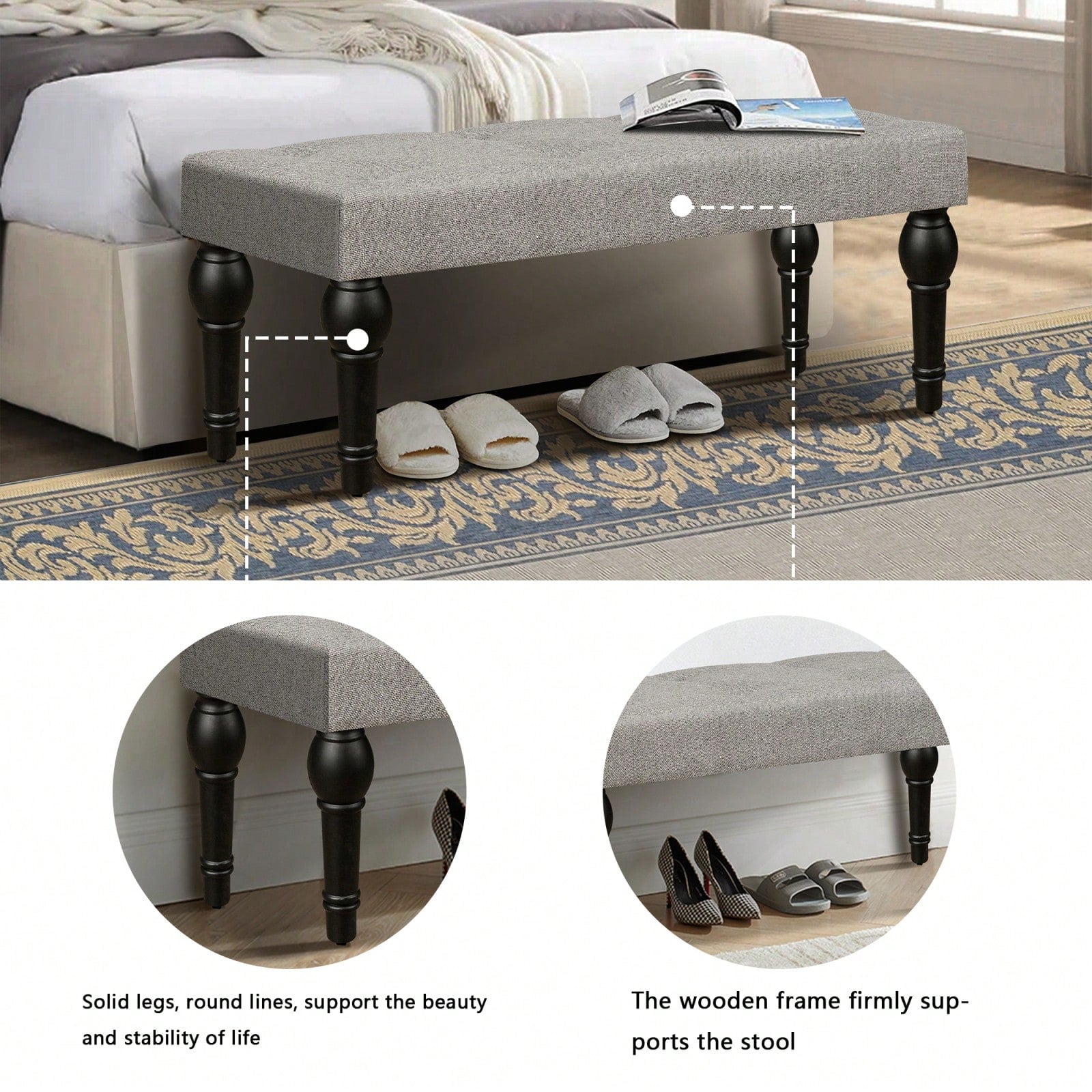 Ottoman Bench 4-Thickened Roman Column Feet French Upholstered Bedside Bench For Bedroom Living Room Entryway