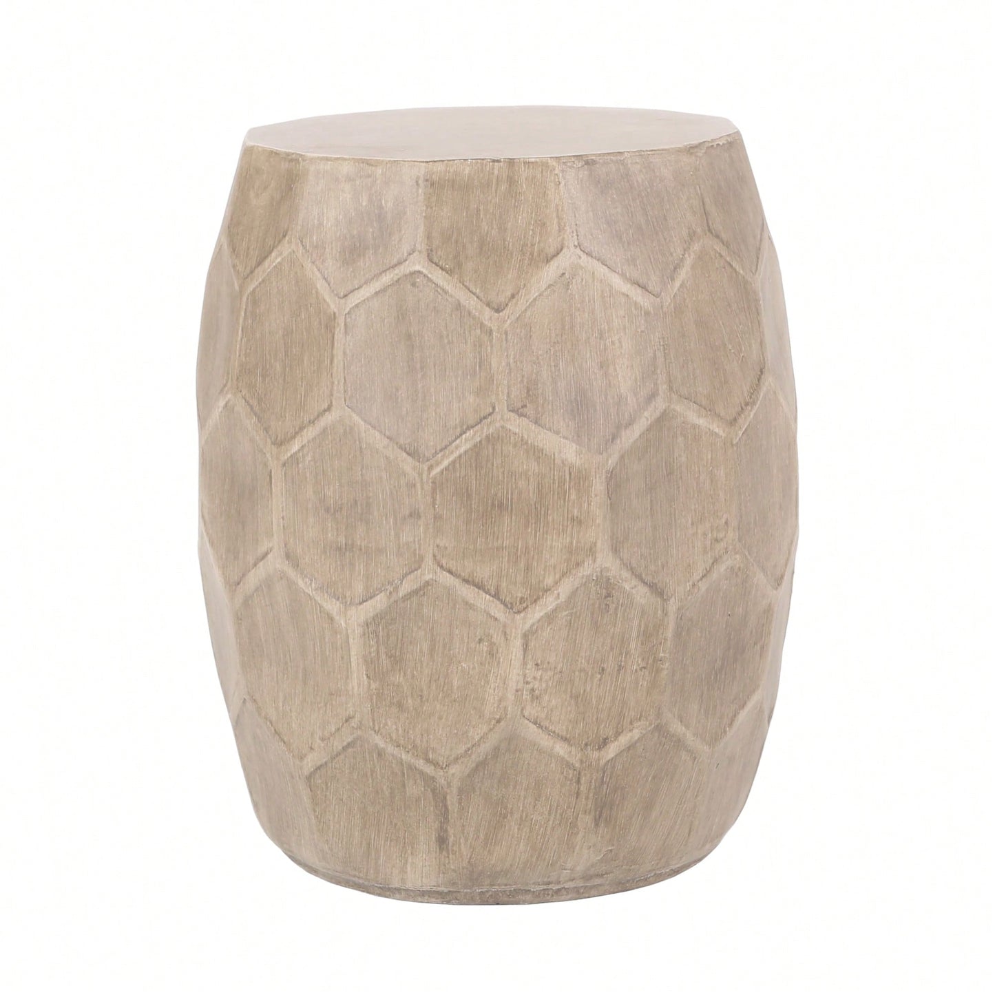 Bring your outdoor space to life with this stylish end table featuring a natural wood finish and a distinctive honeycomb pattern. Its boho design offers a carefree, unconventional look, adding a variety of textures to your patio. The minimalistic yet refined structure emphasizes functionality while providing an earthy touch to your decor. Made from lightweight concrete, this side table is both durable and capable of holding substantial weight. With dimensions of 15.25" w x 15.25" d x 18.25" h, it is the perfect accessory to transform your space effortlessly.