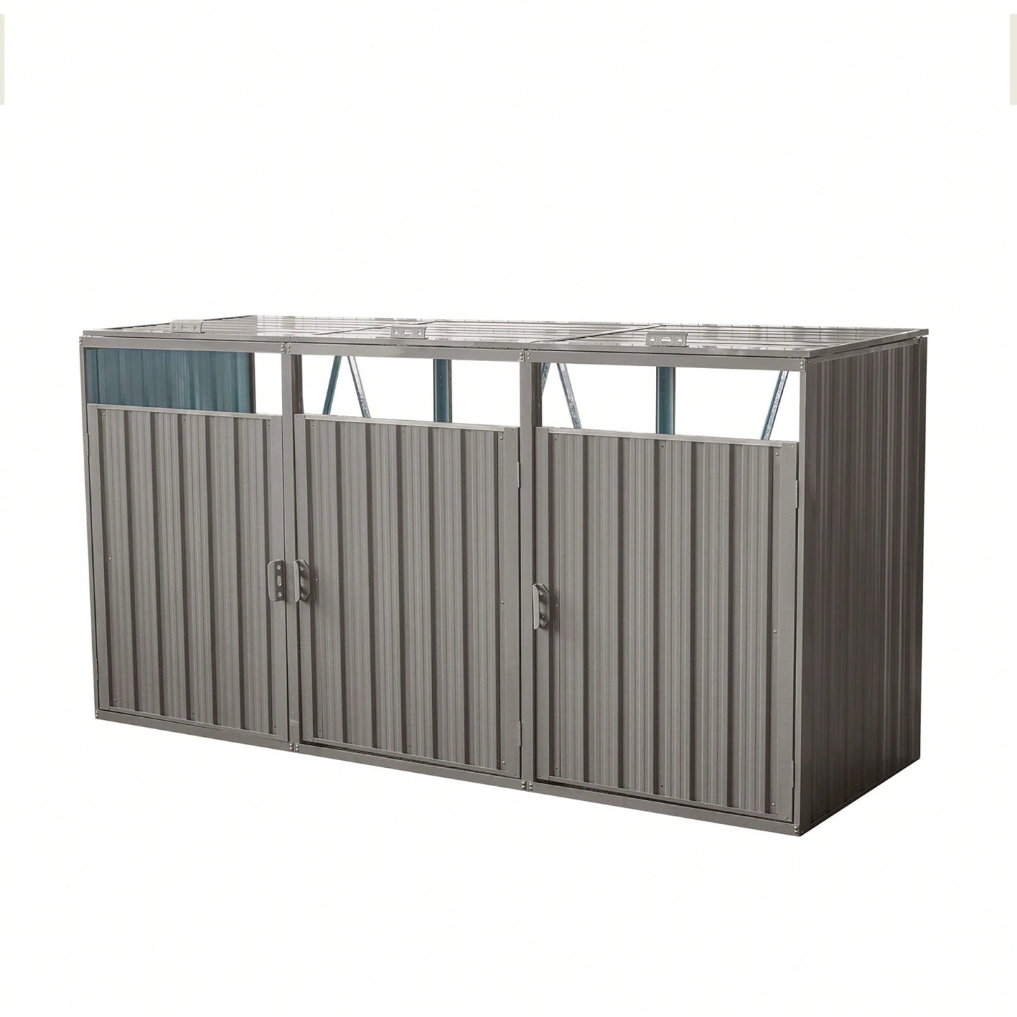 Outdoor Metal Garbage Bin Shed For 3 Trash Cans - Galvanized Steel Storage Solution For Garden And Lawn - Grey