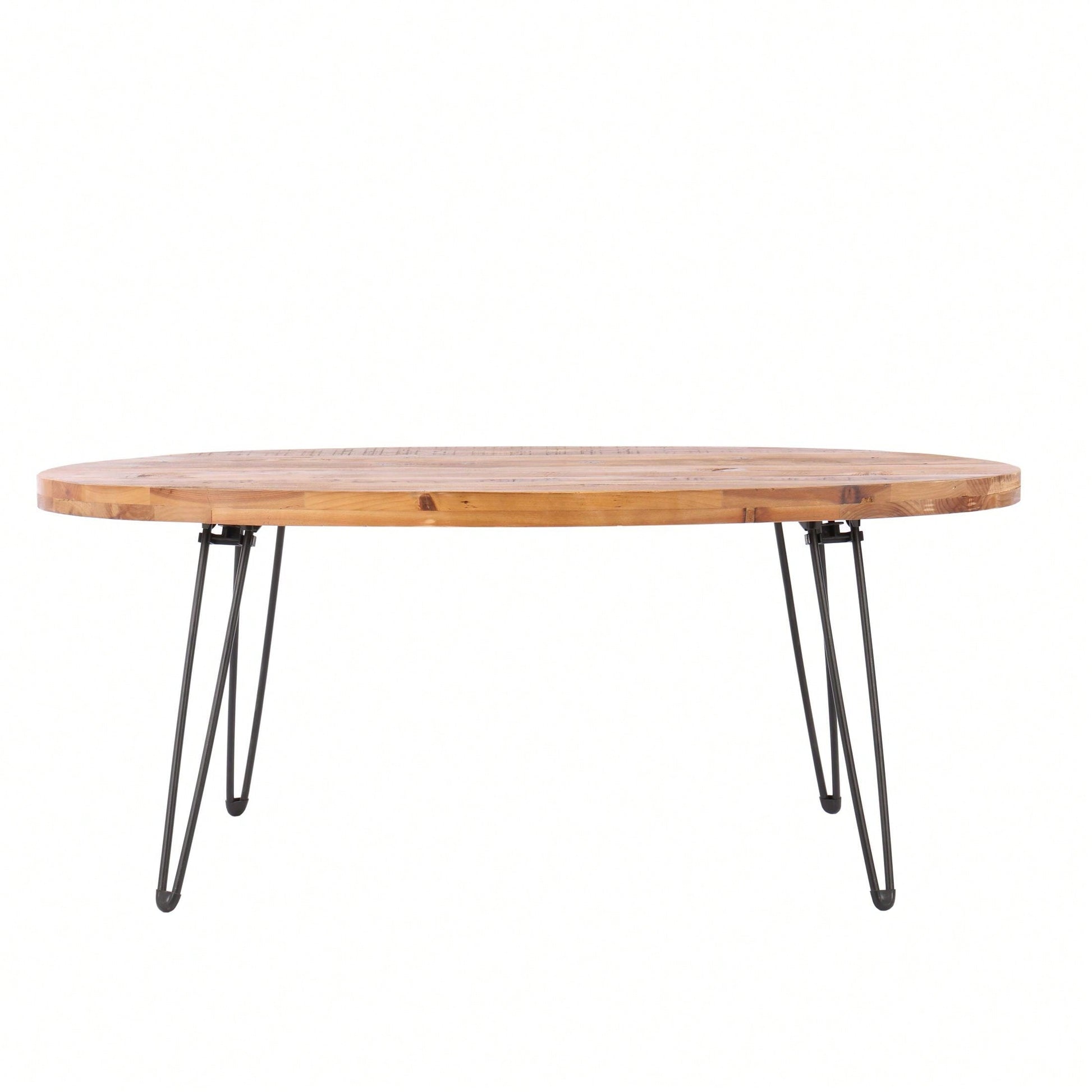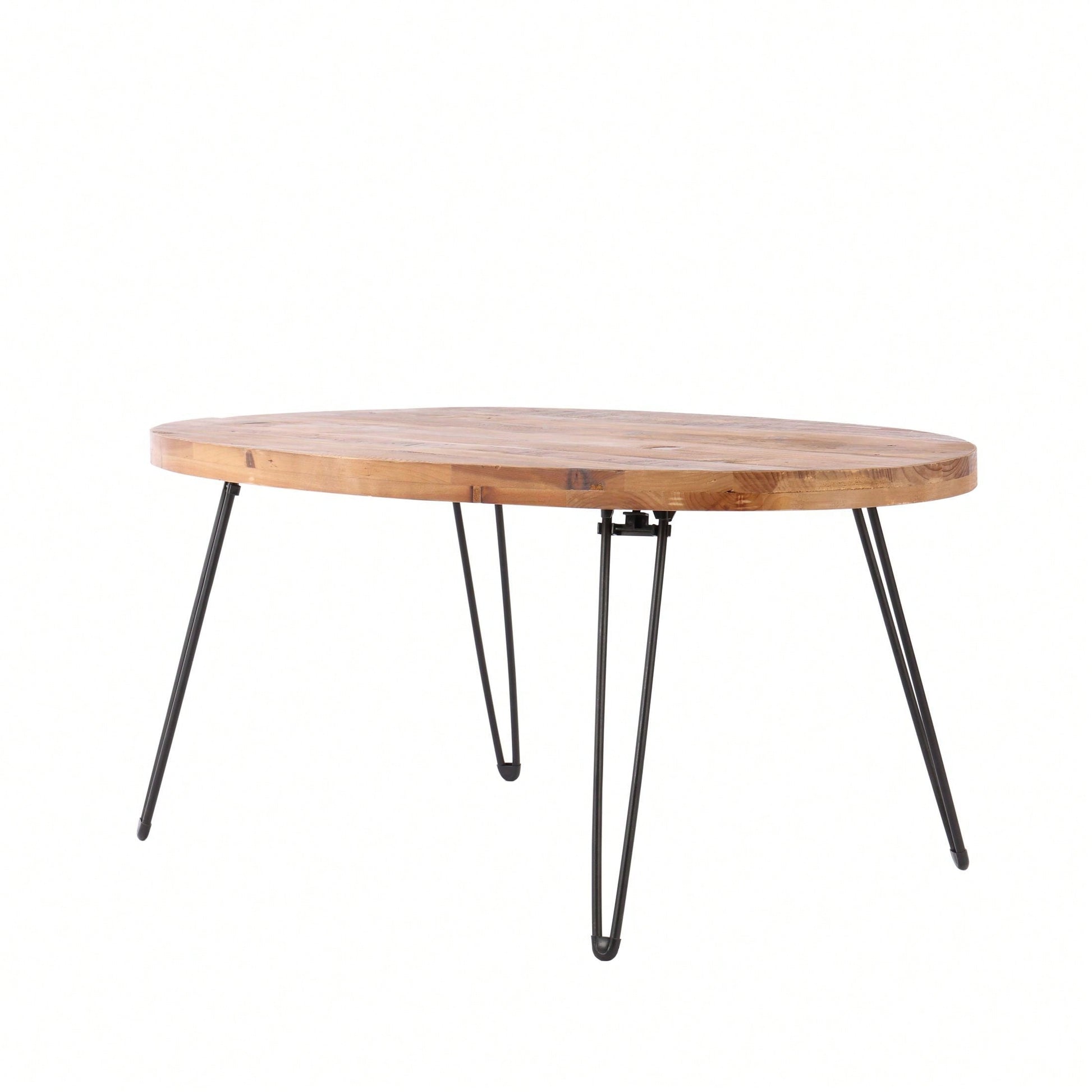 Oval Natural Reclaimed Wood Foldable Cocktail Table For Your Living Room