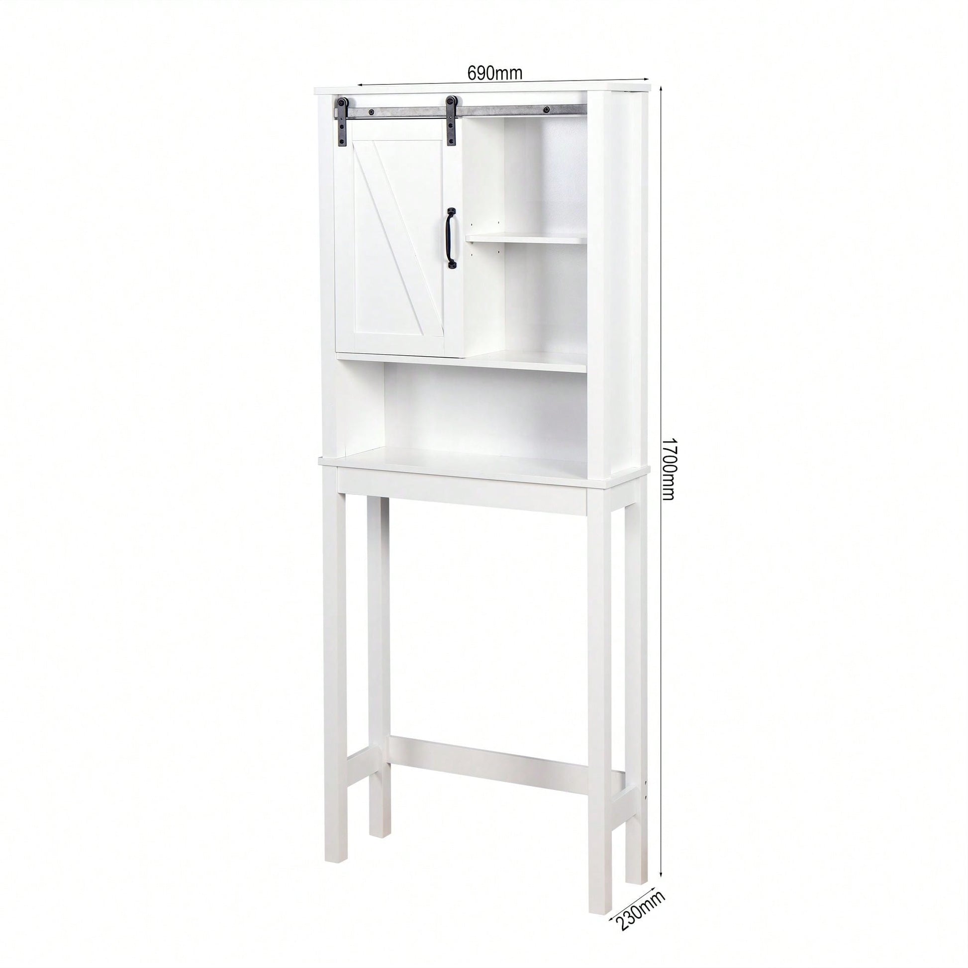 Over-The-Toilet Storage Cabinet, Space-Saving Bathroom Cabinet, With Adjustable Shelves And A Barn Door